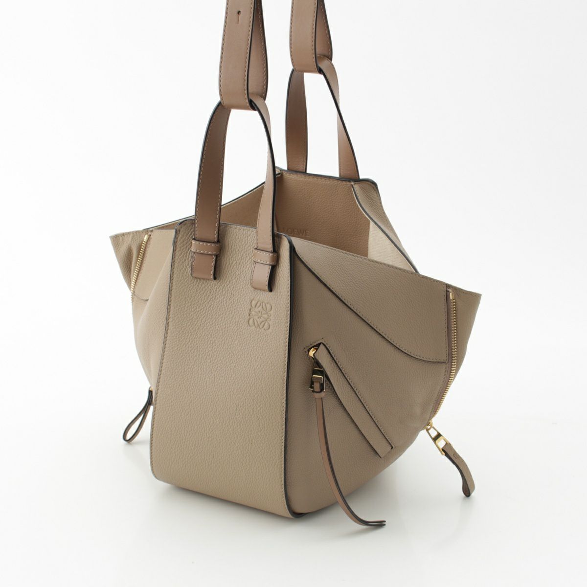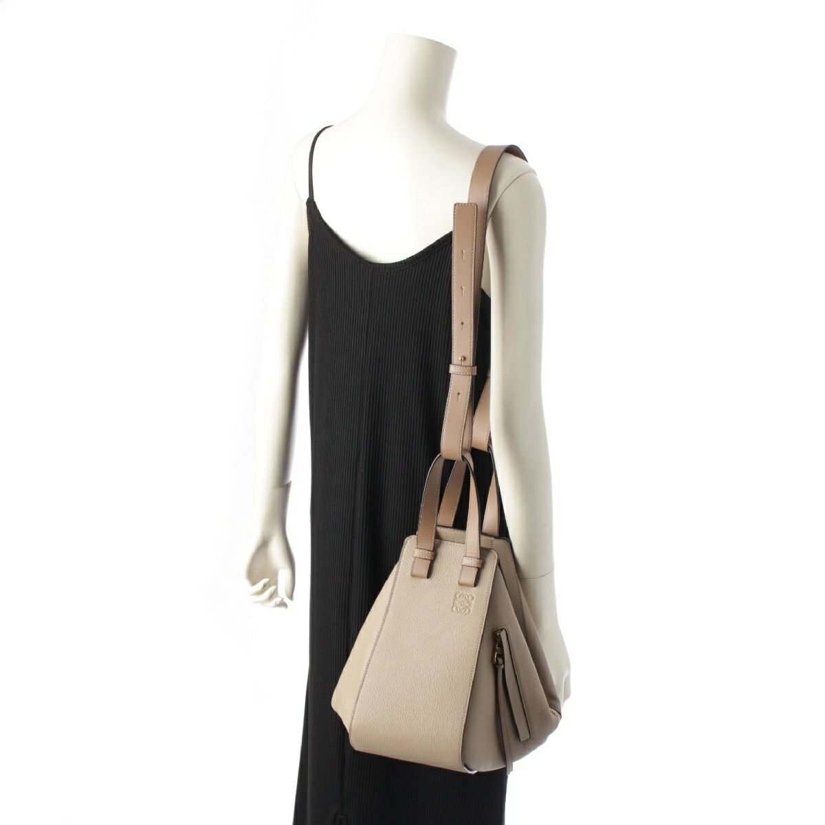 ロエベ ハンモック コンパクト ソフトグレインカーフ 2way ハンドバッグ スモール ショルダー クロスボディ サンド ベージュ