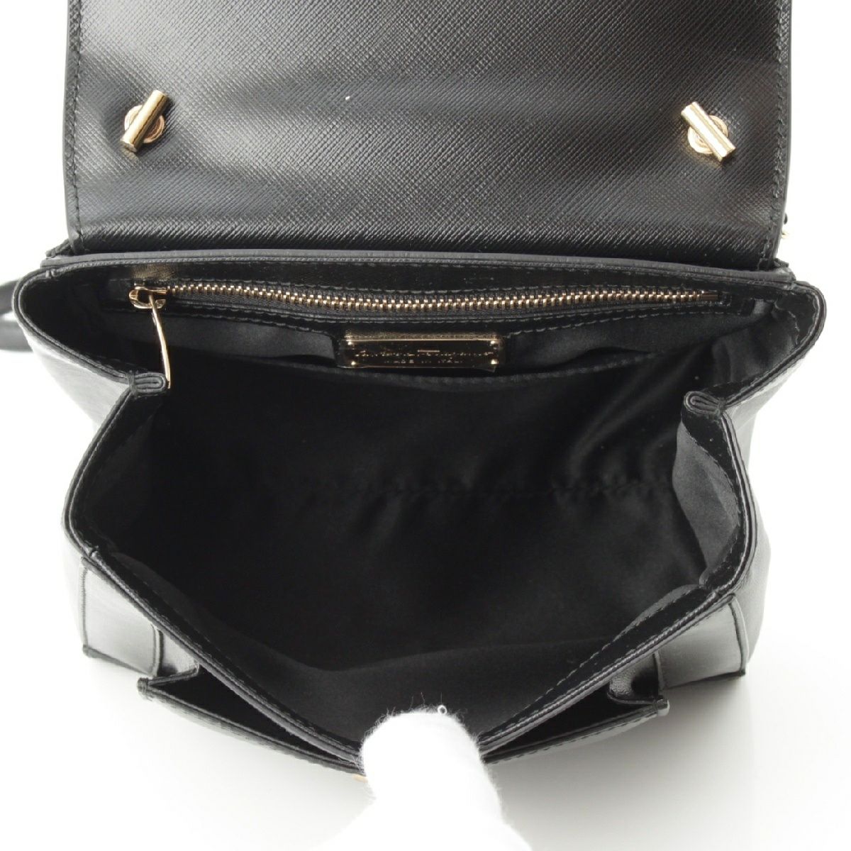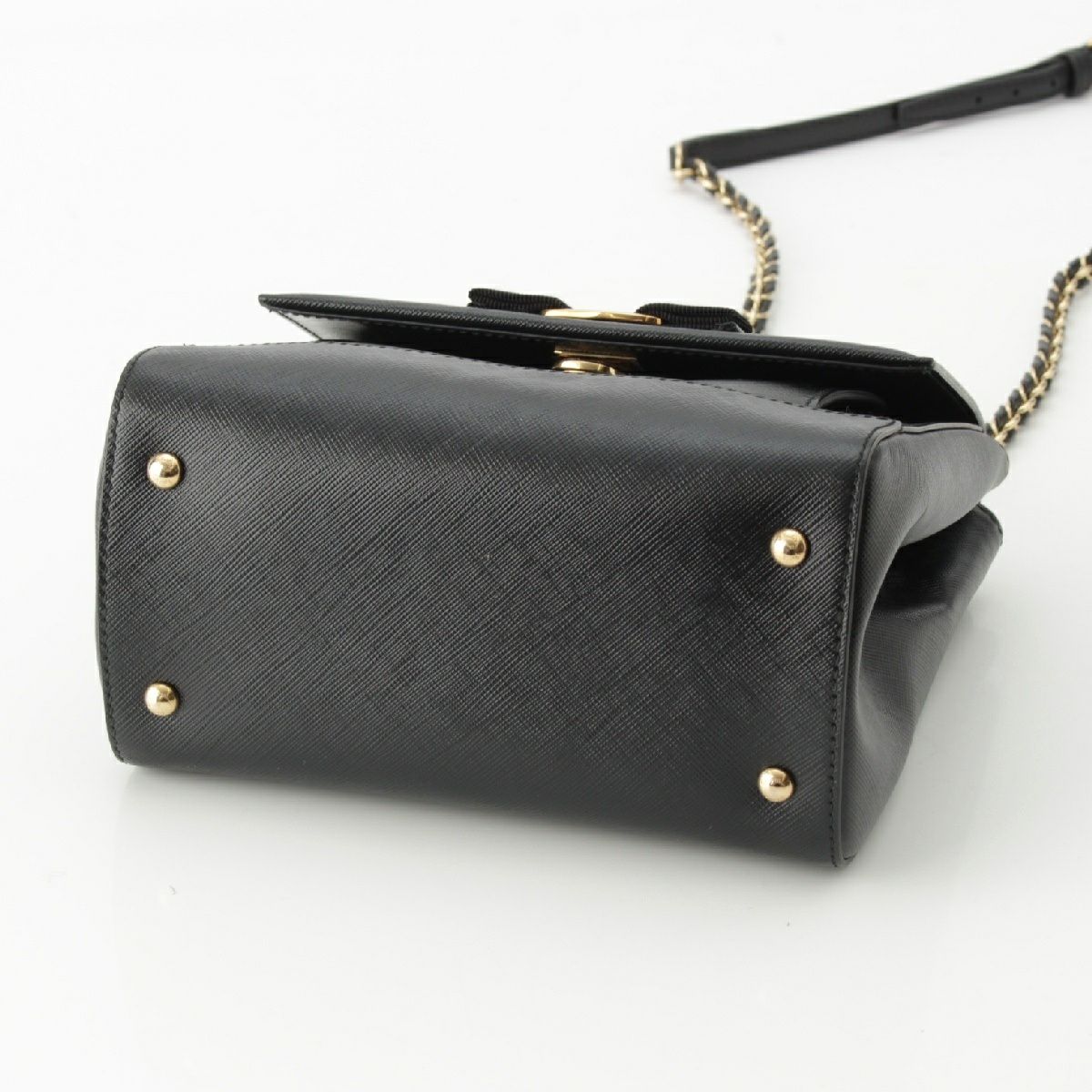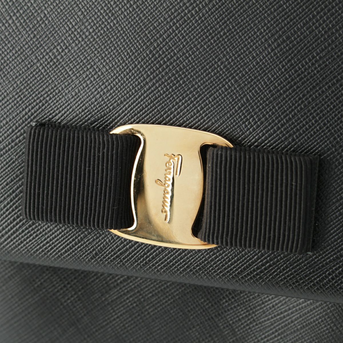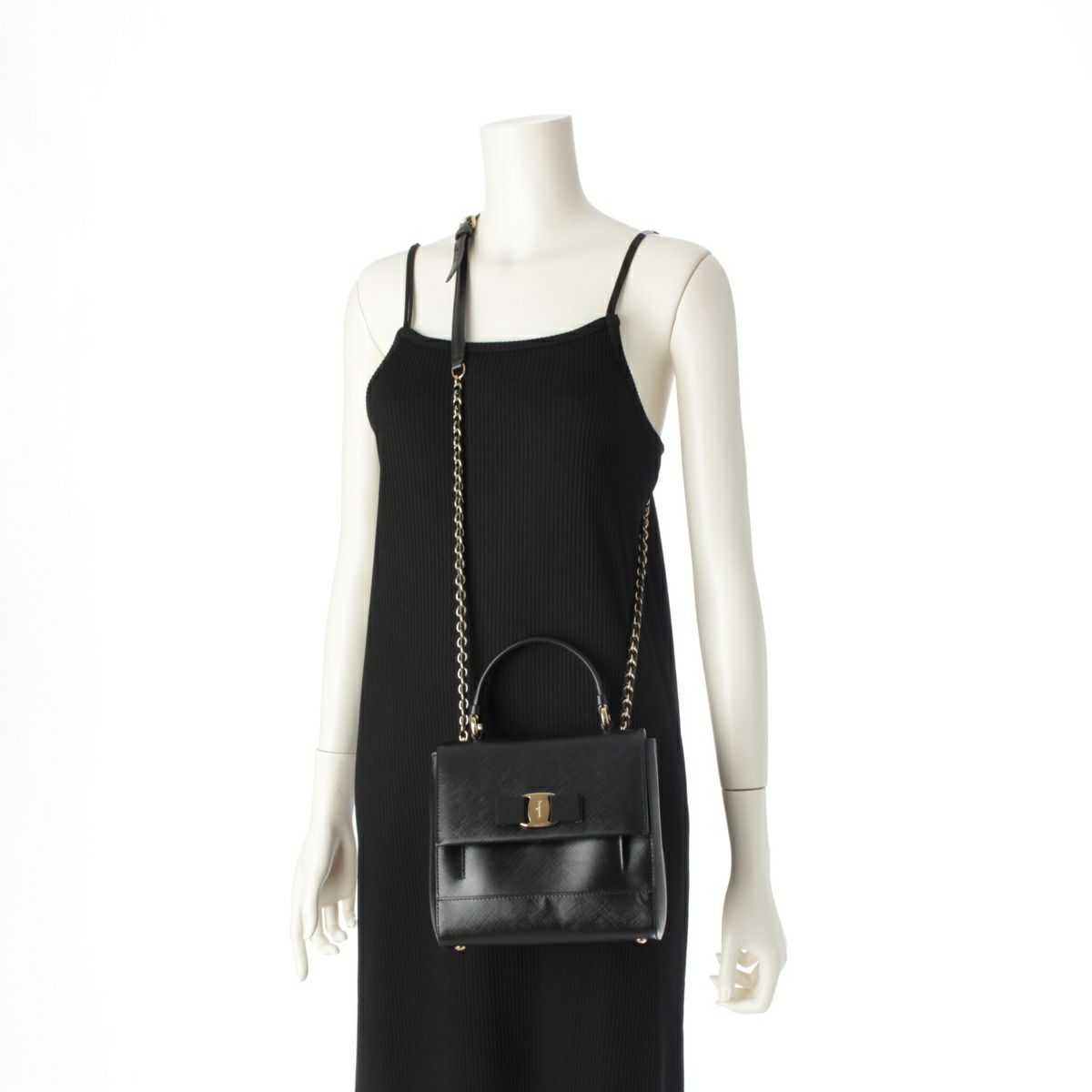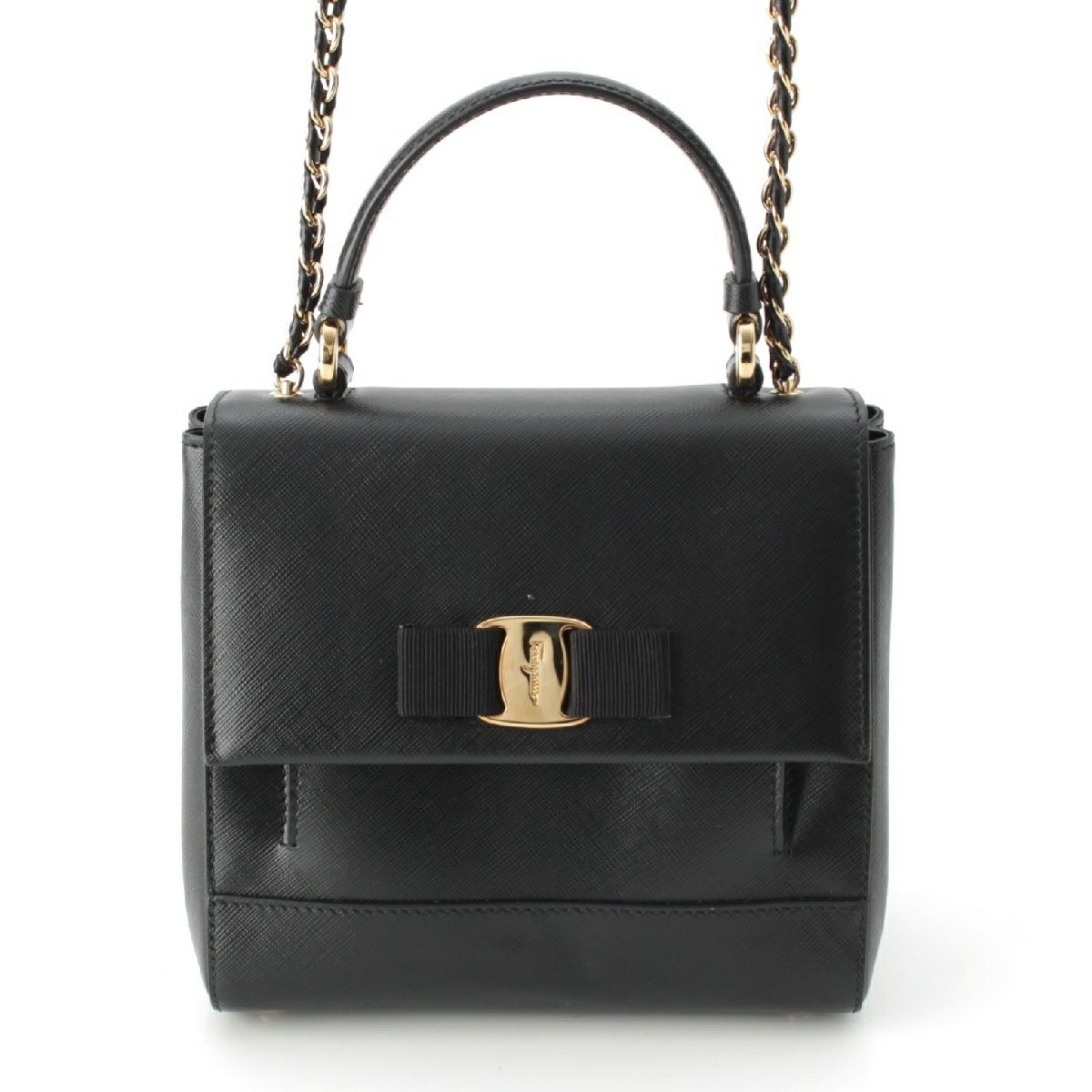 サルヴァトーレフェラガモ ヴァラリボン トップハンドル 2WAY チェーンショルダー ハンドバッグ ブラック