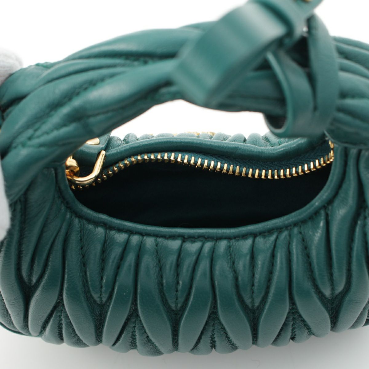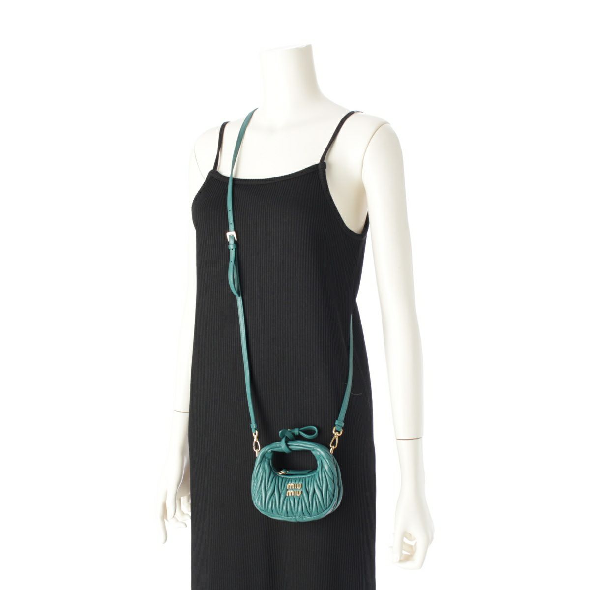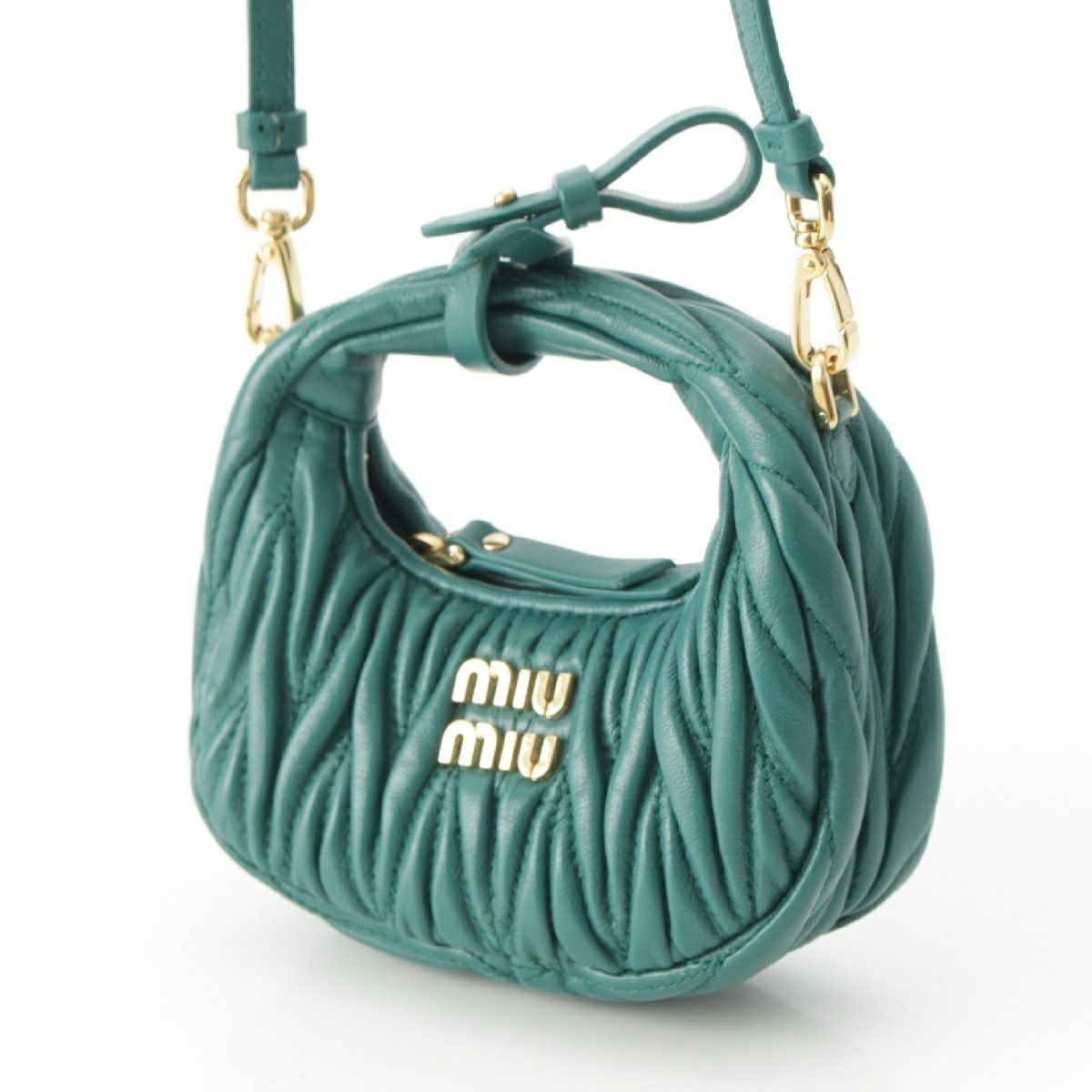 ミュウミュウ マテラッセ ワンダー ホーボー レザー ロゴ 2way ショルダー ハンドバッグ 5NR019 グリーン