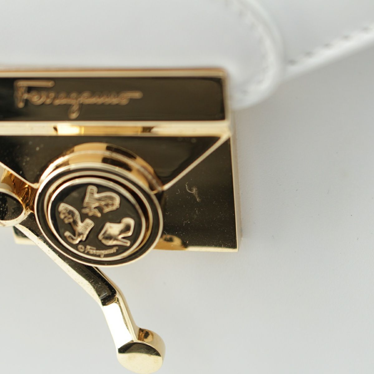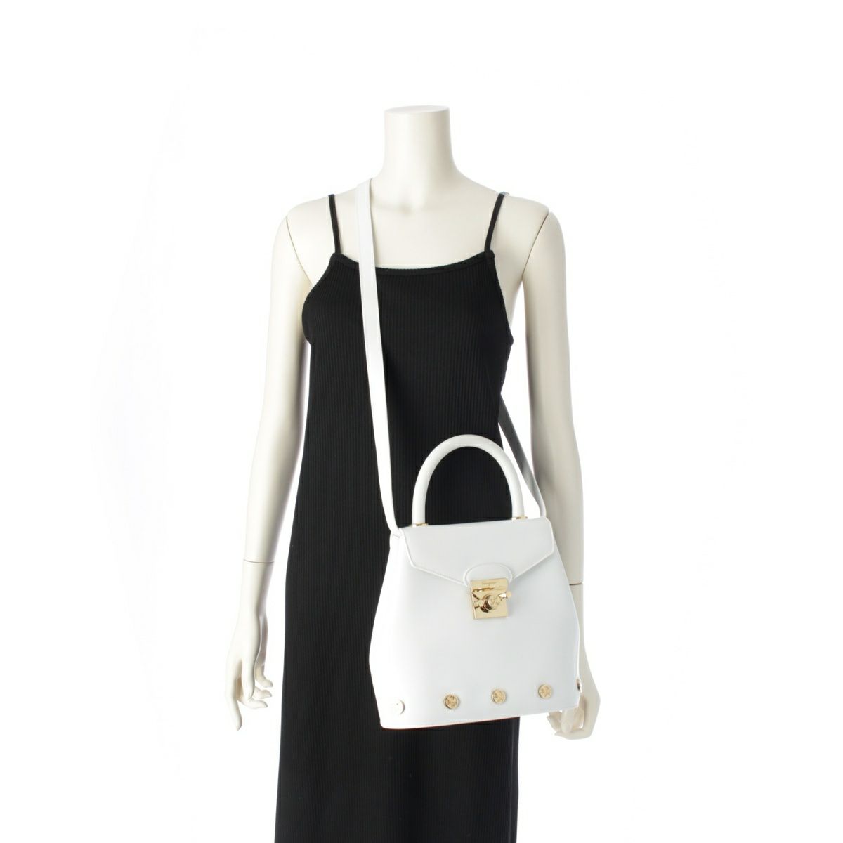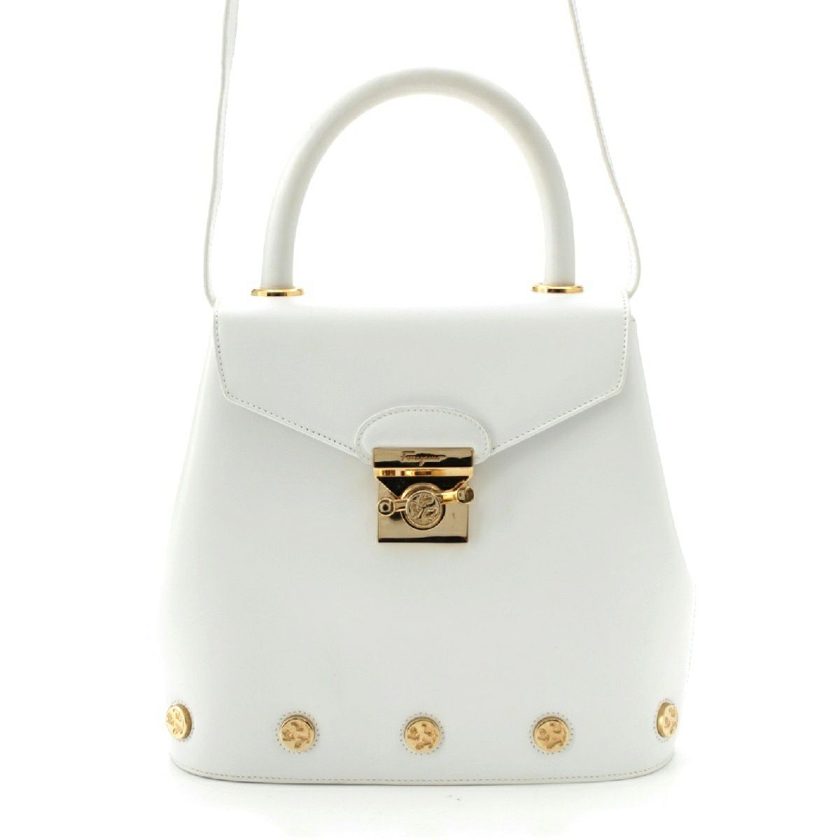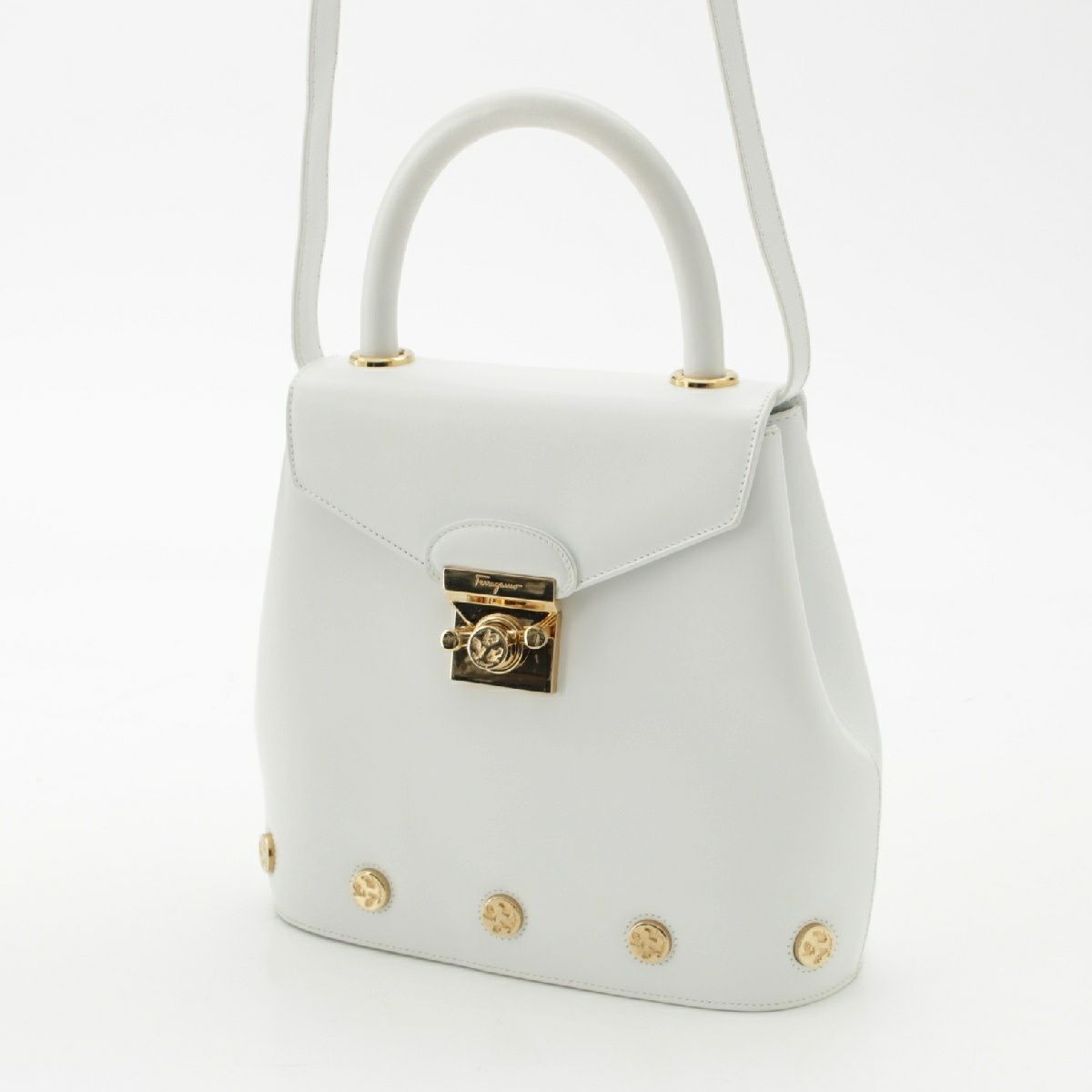 サルヴァトーレフェラガモ ヒールパンプスモチーフ 2WAY ショルダー ハンドバッグ DQ-21 7188 ホワイト