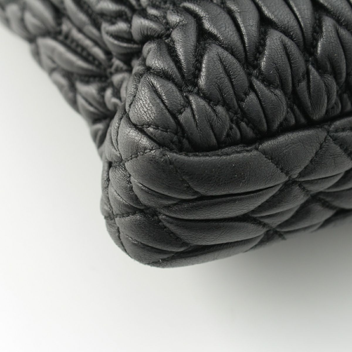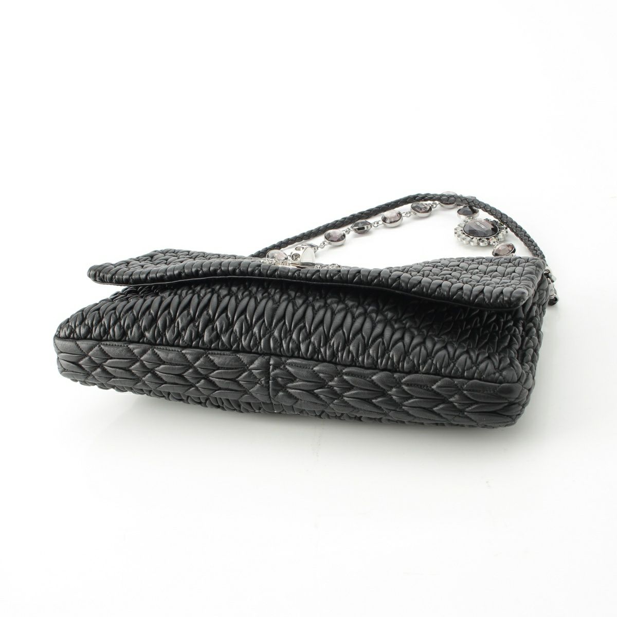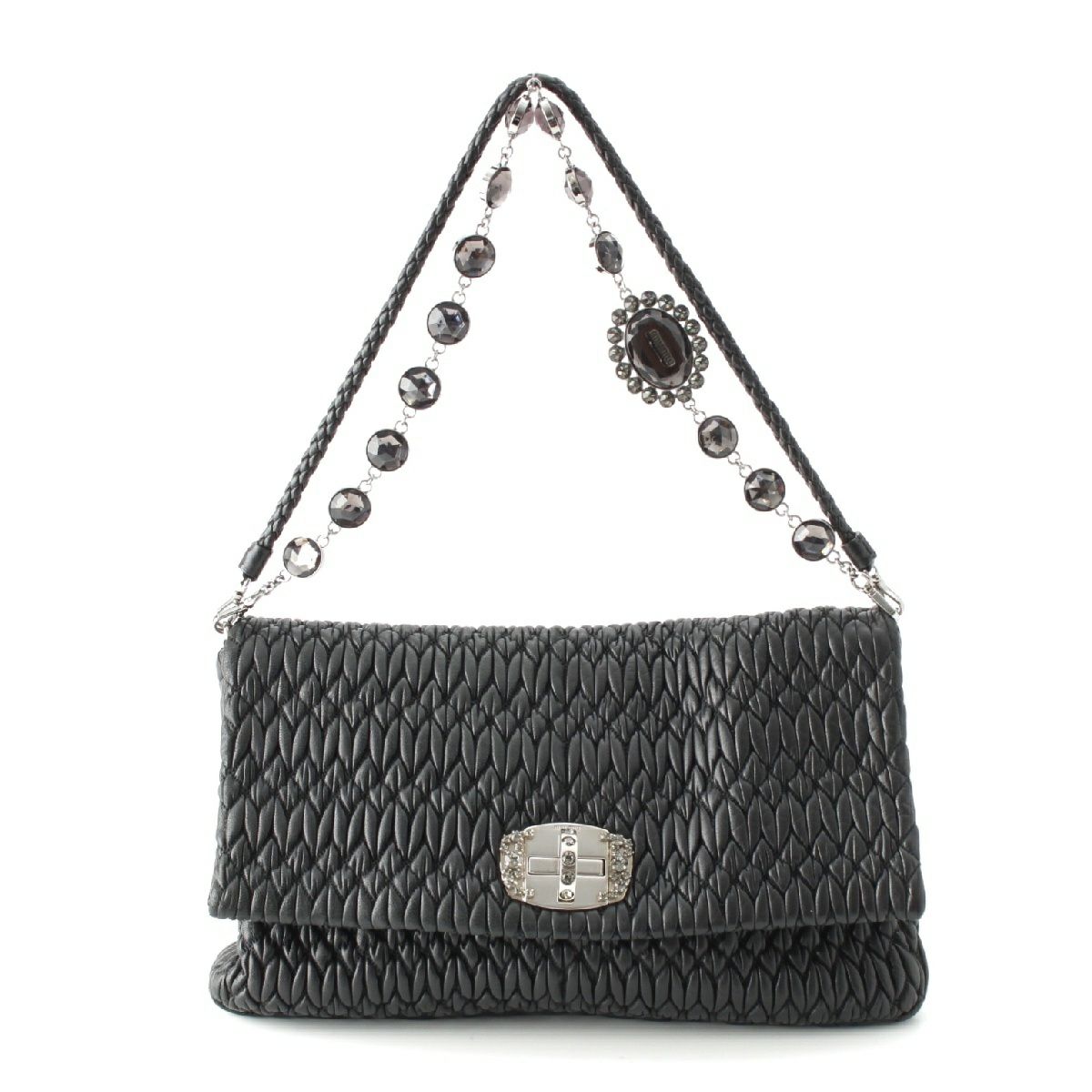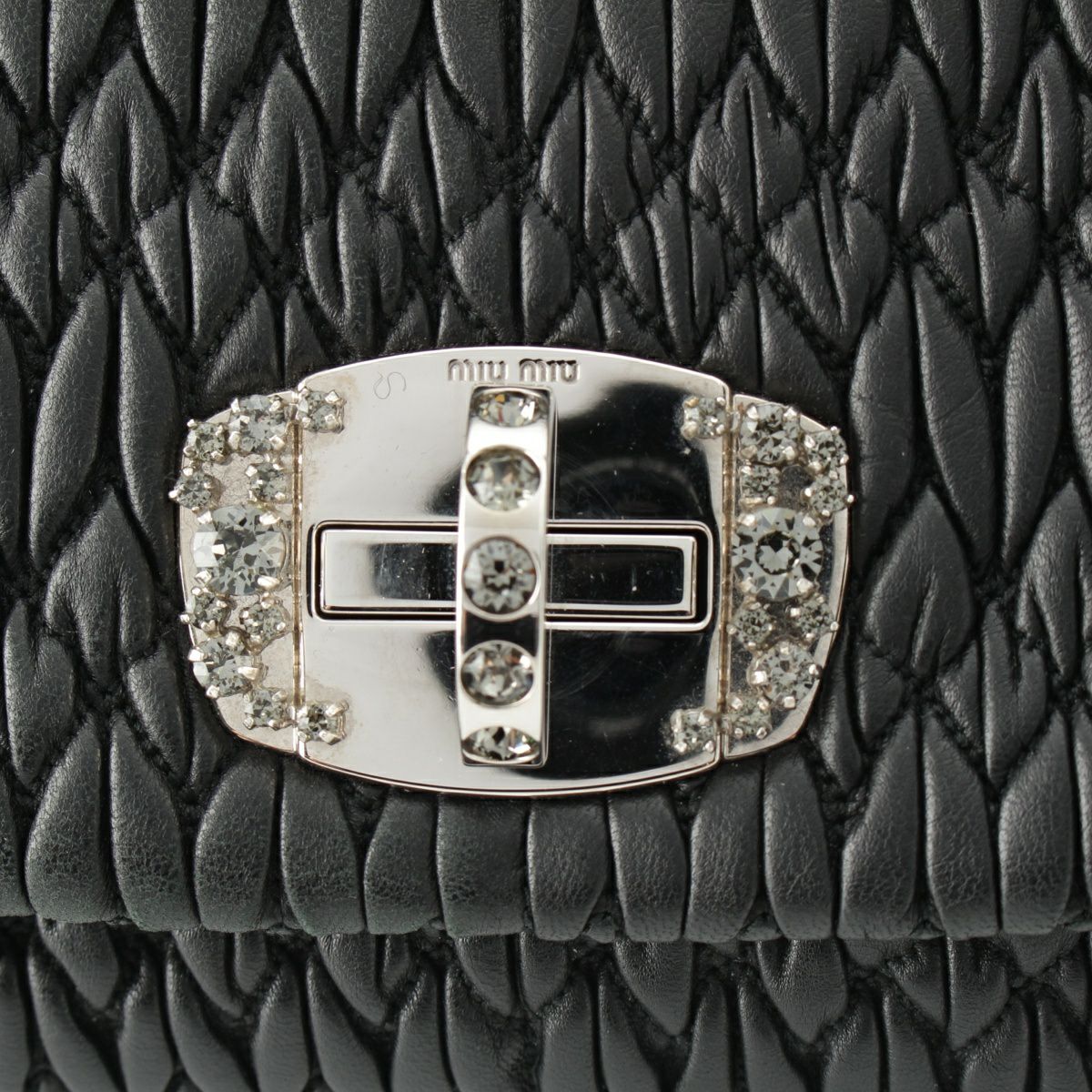 ミュウミュウ マテラッセ レザー クリスタルチェーン ハンドバッグ ダブルストラップ ロゴ ブラック