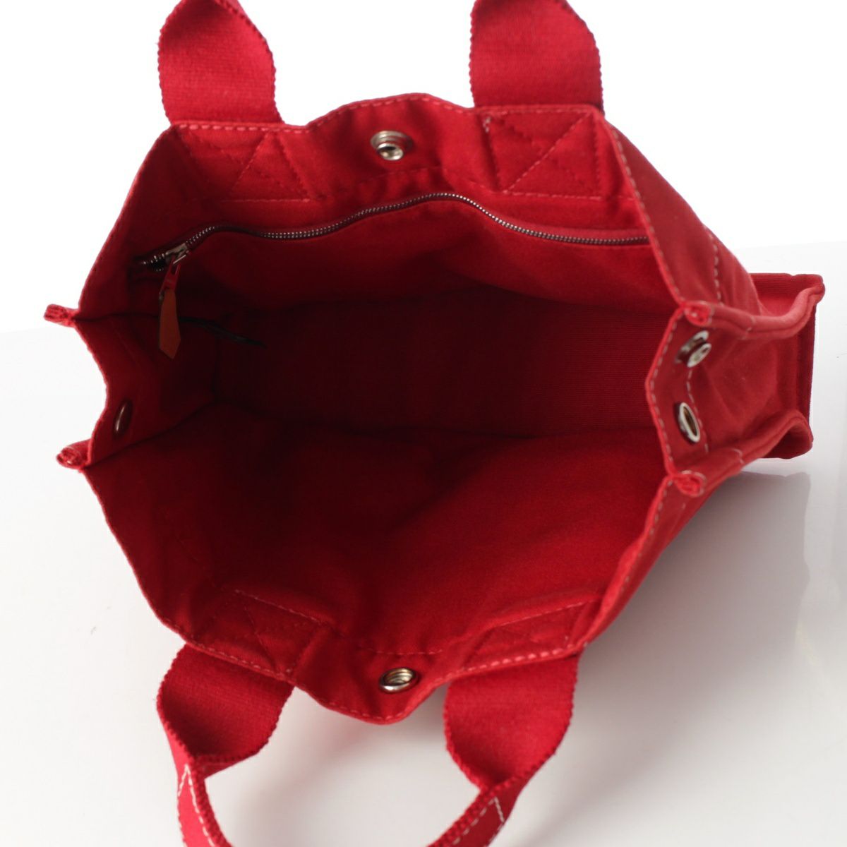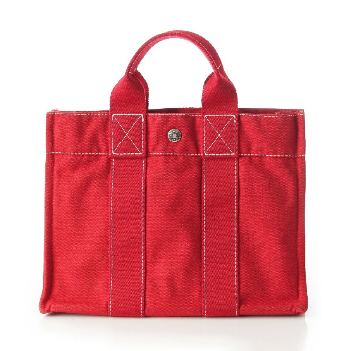 エルメス ドーヴィルPM コットンキャンバス ハンドバッグ レッド
