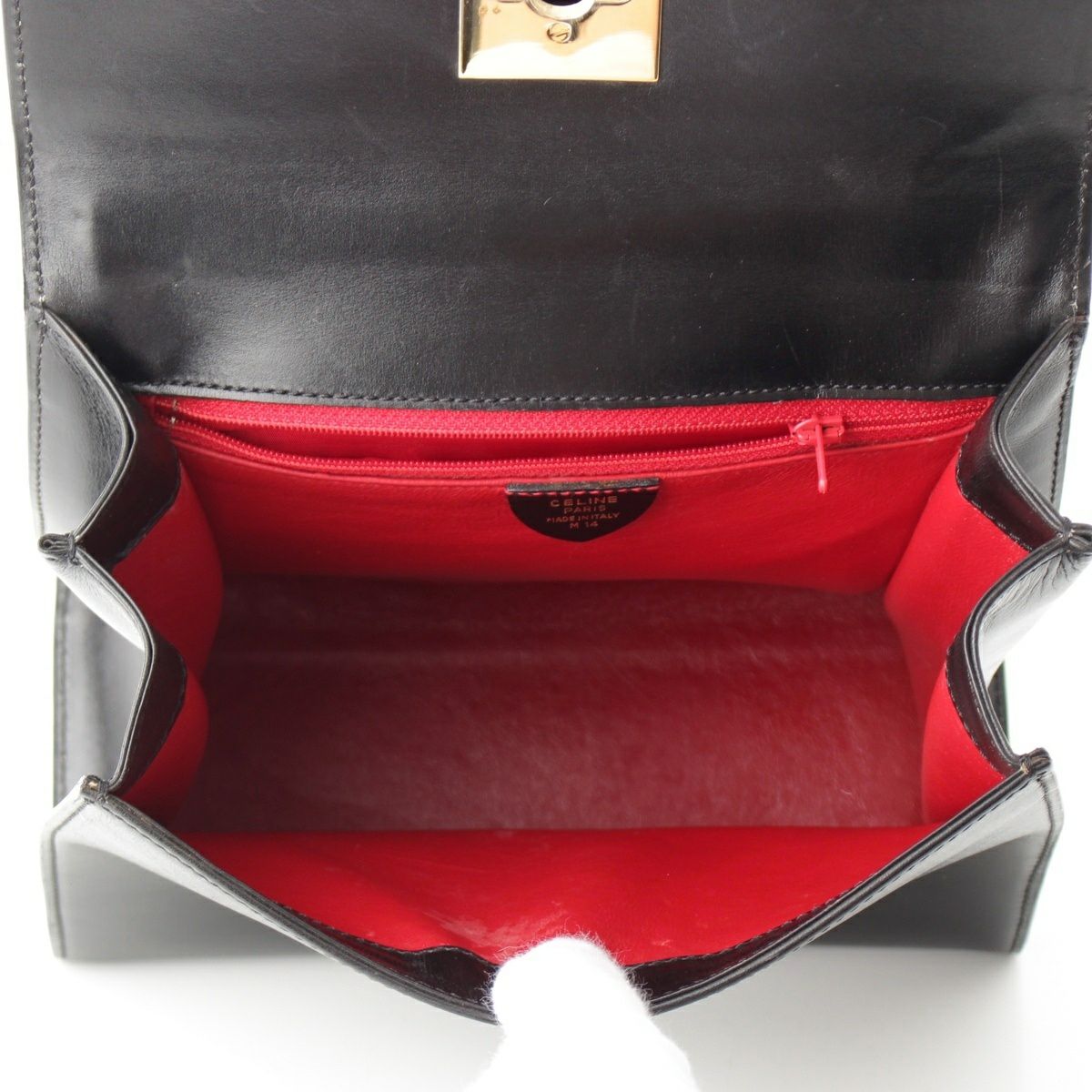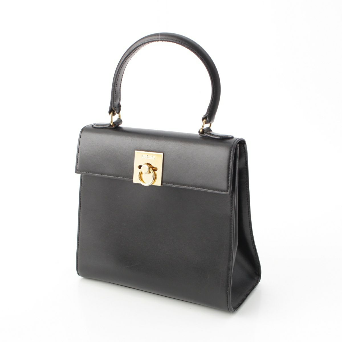 セリーヌ ヴィンテージ レザー 2way トップハンドル ロゴ金具 ハンドバッグ 鞄 ブラック
