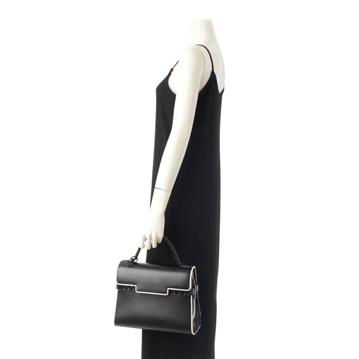 デルヴォー タンペートMM サプルカーフ ハンドバッグ ブラック ホワイト