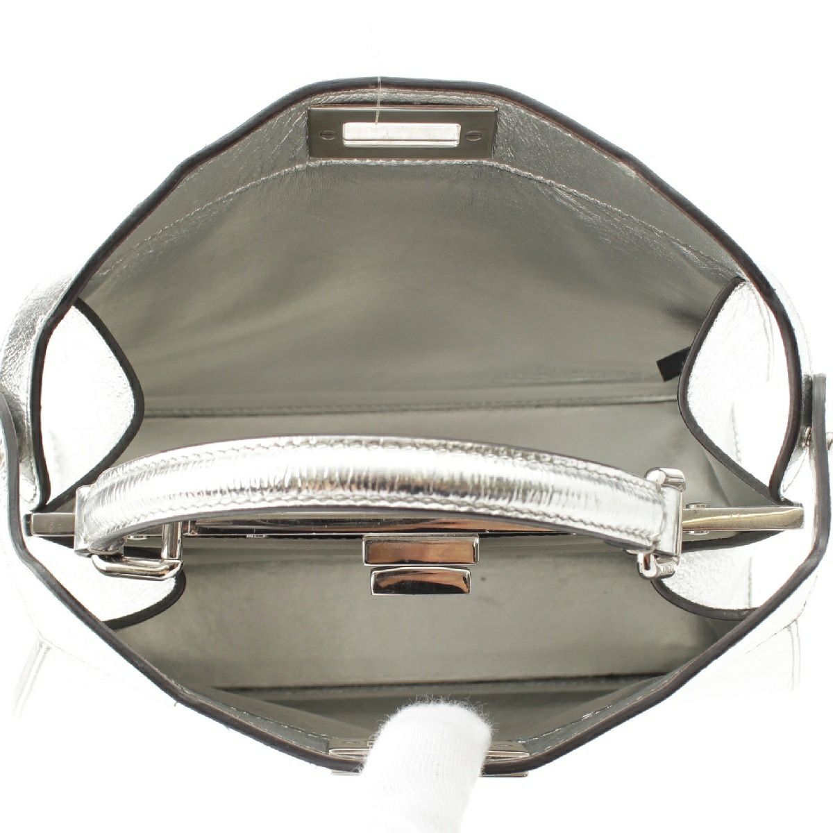 フェンディ ピーカブー アイシーユー スモール 2WAY ショルダー ハンドバッグ 8BN327 シルバー