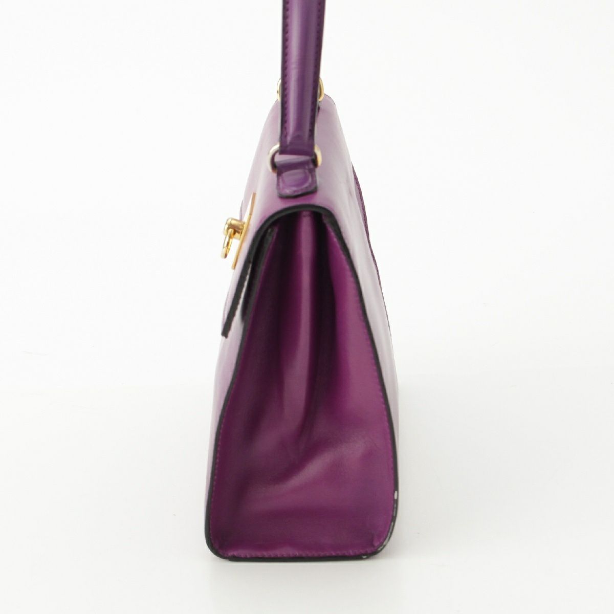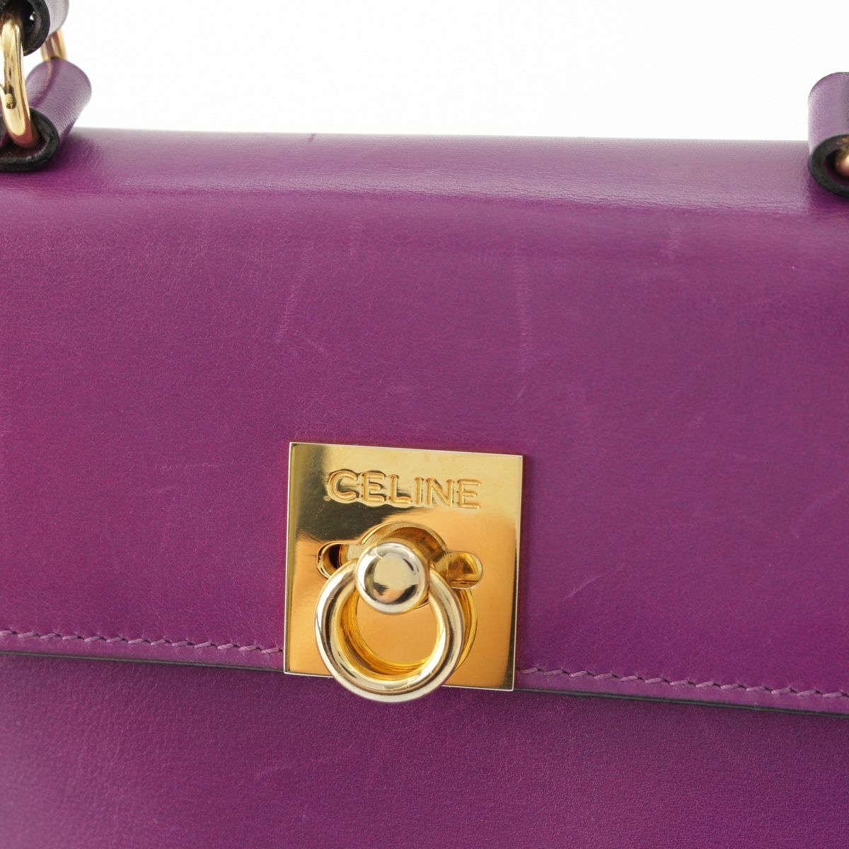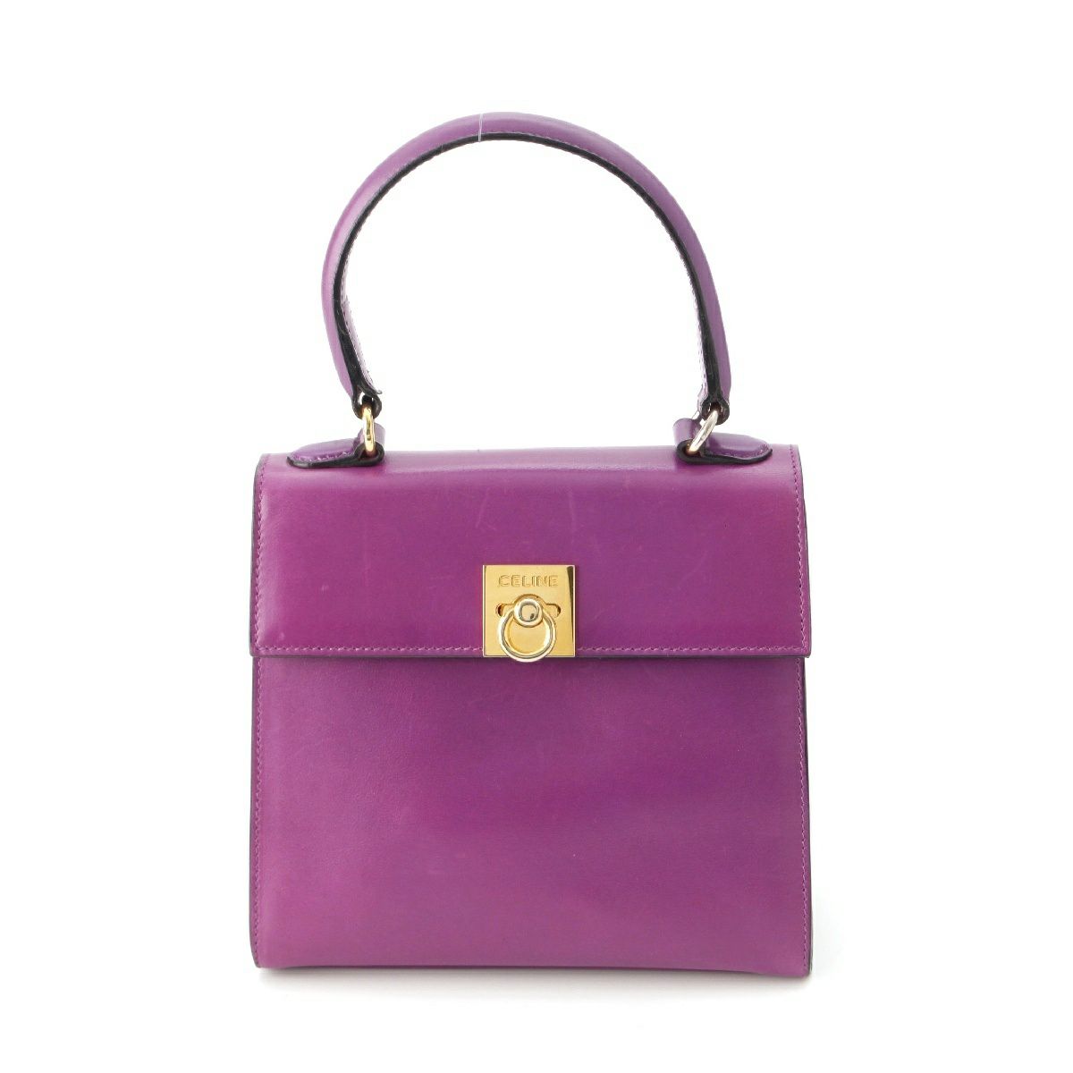 セリーヌ ヴィンテージ トップハンドル ロゴ金具 ハンドバッグ パープル