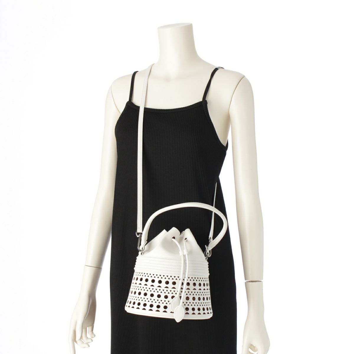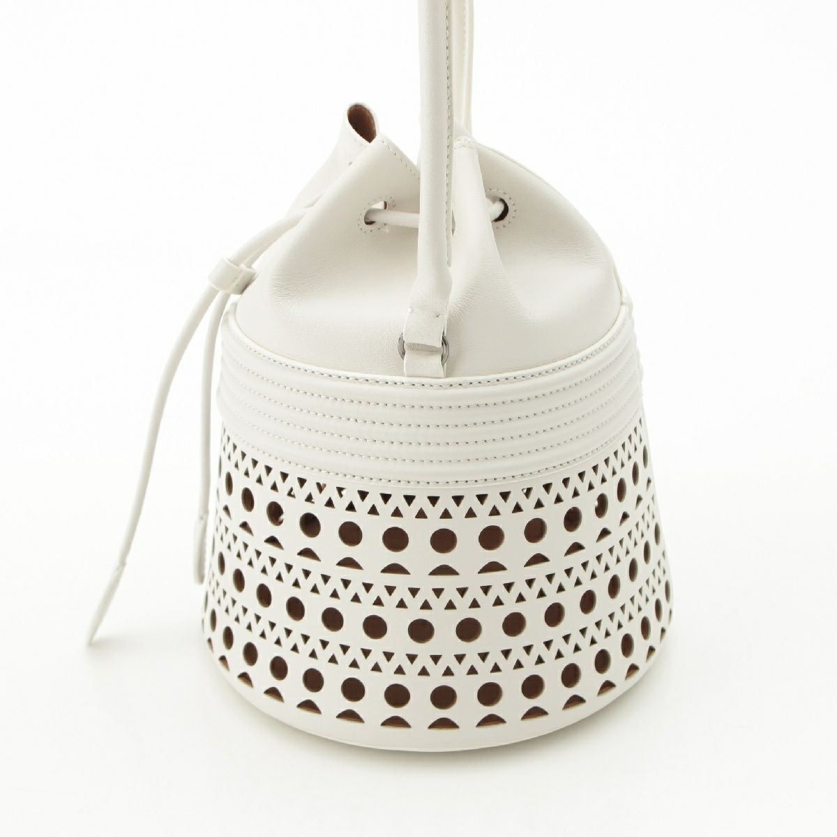 アライア レザー バケット コルセット 2WAY ショルダー ハンドバッグ AA1S29221CA091 ホワイト