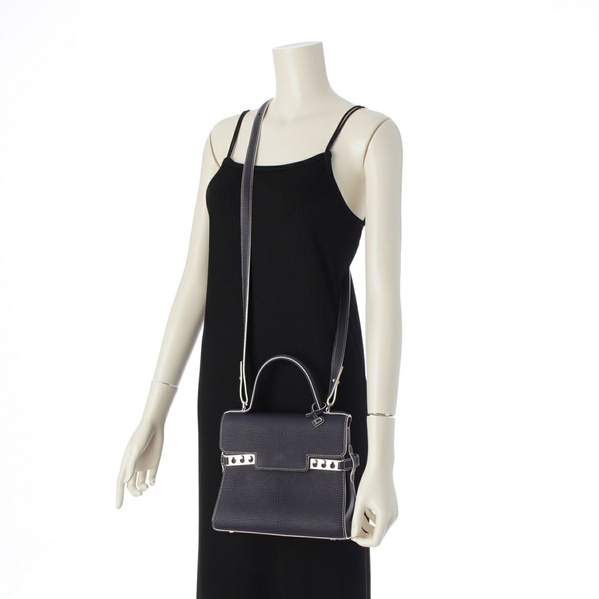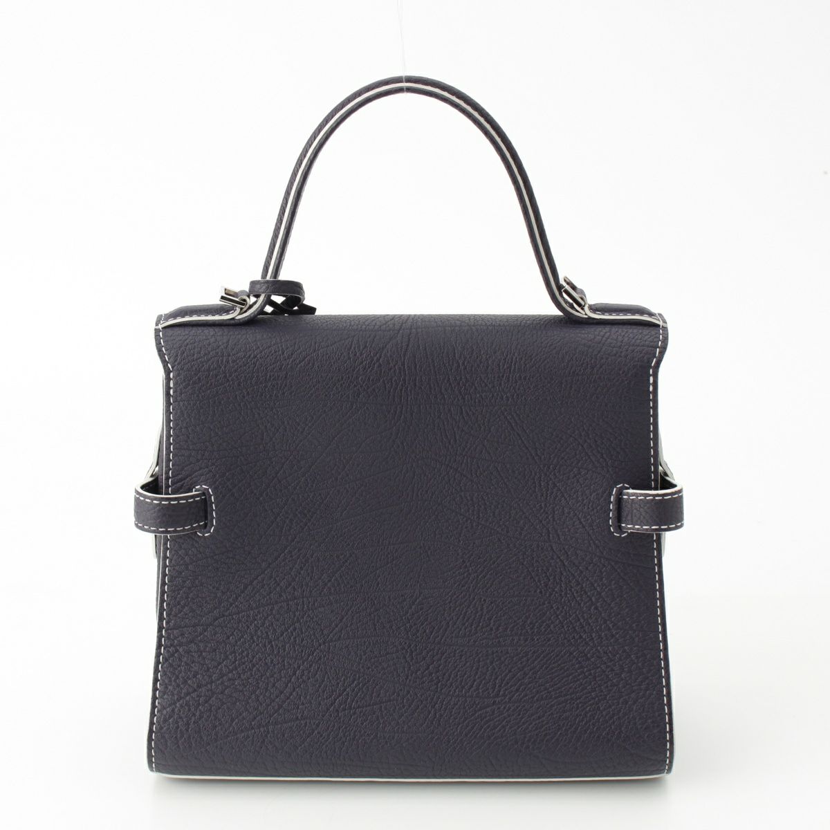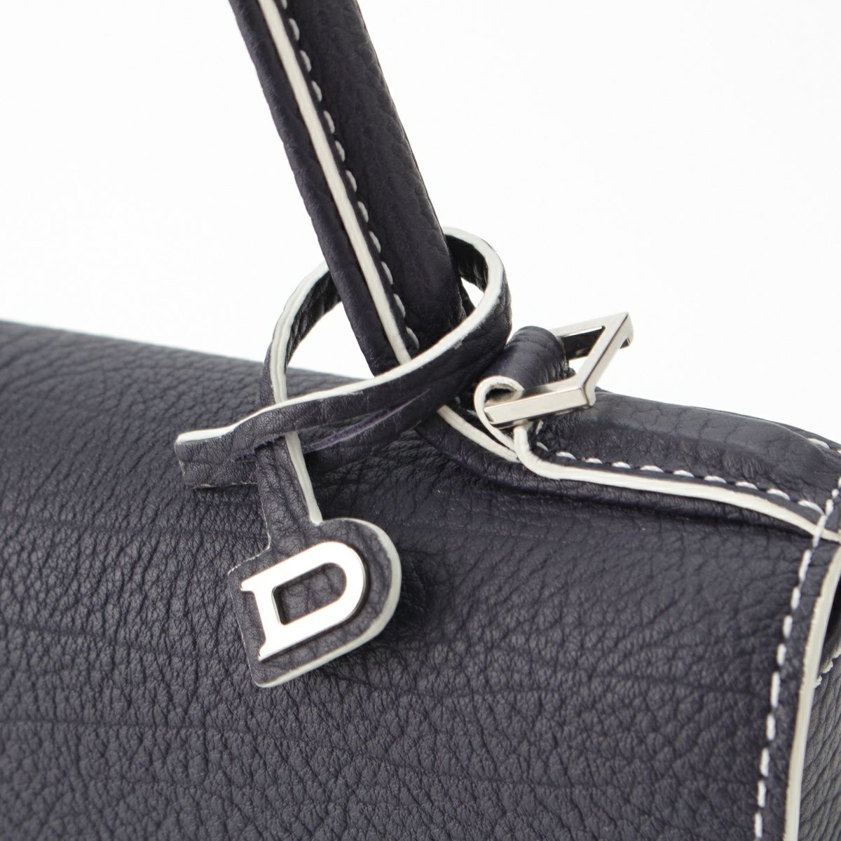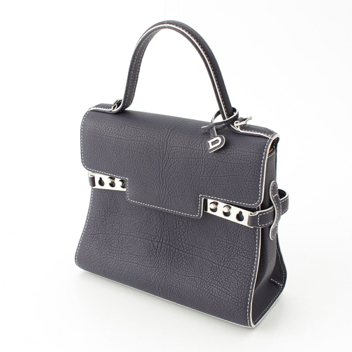 デルヴォー タンペートPM クリスピーカーフ 2WAY ショルダー ハンドバッグ ネイビー ホワイト