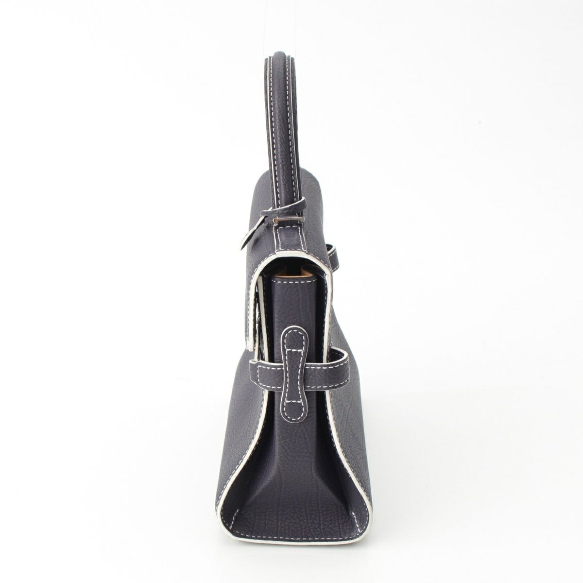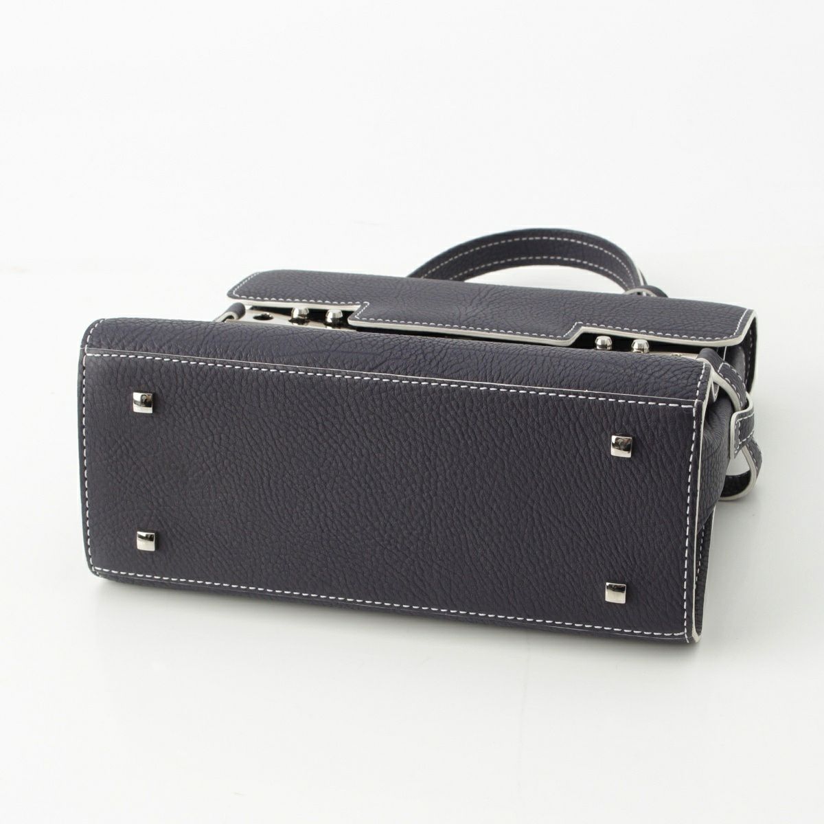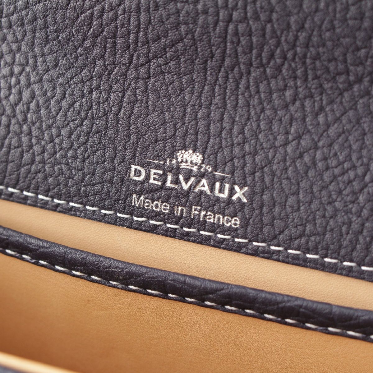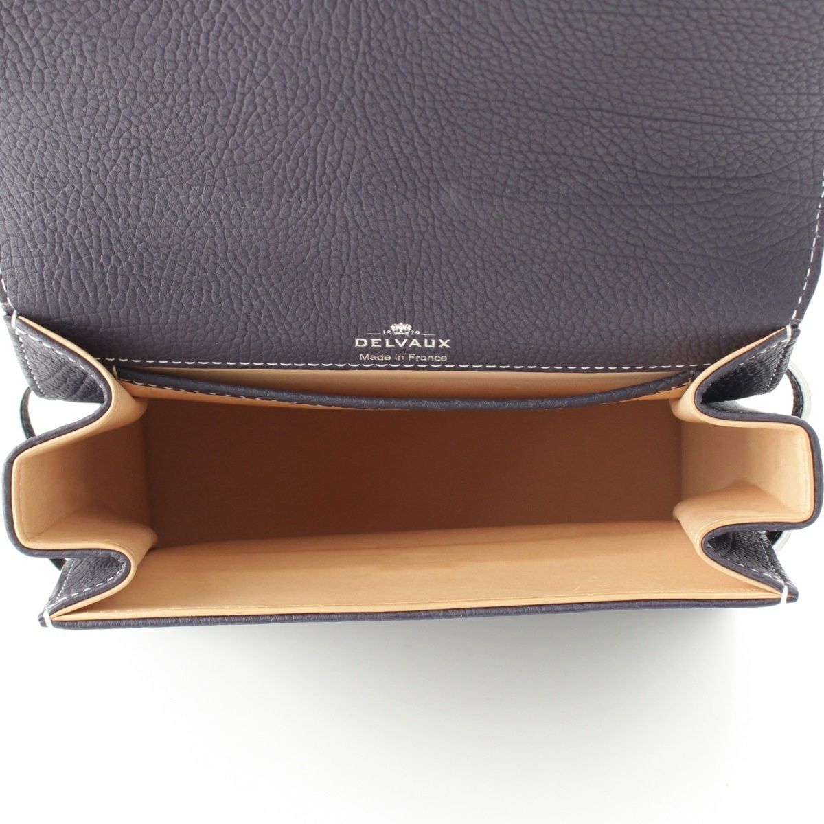 デルヴォー タンペートPM クリスピーカーフ 2WAY ショルダー ハンドバッグ ネイビー ホワイト