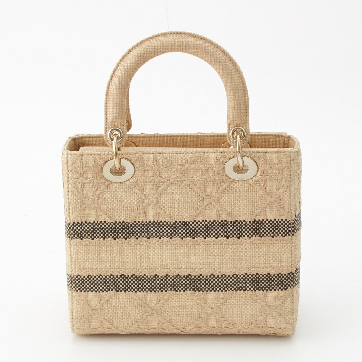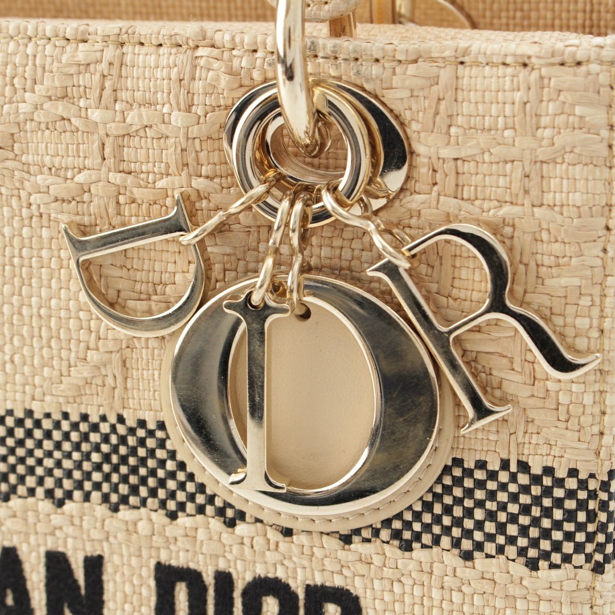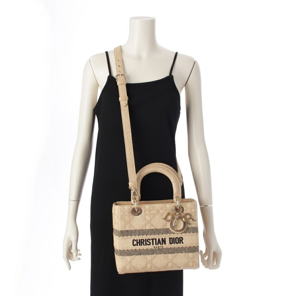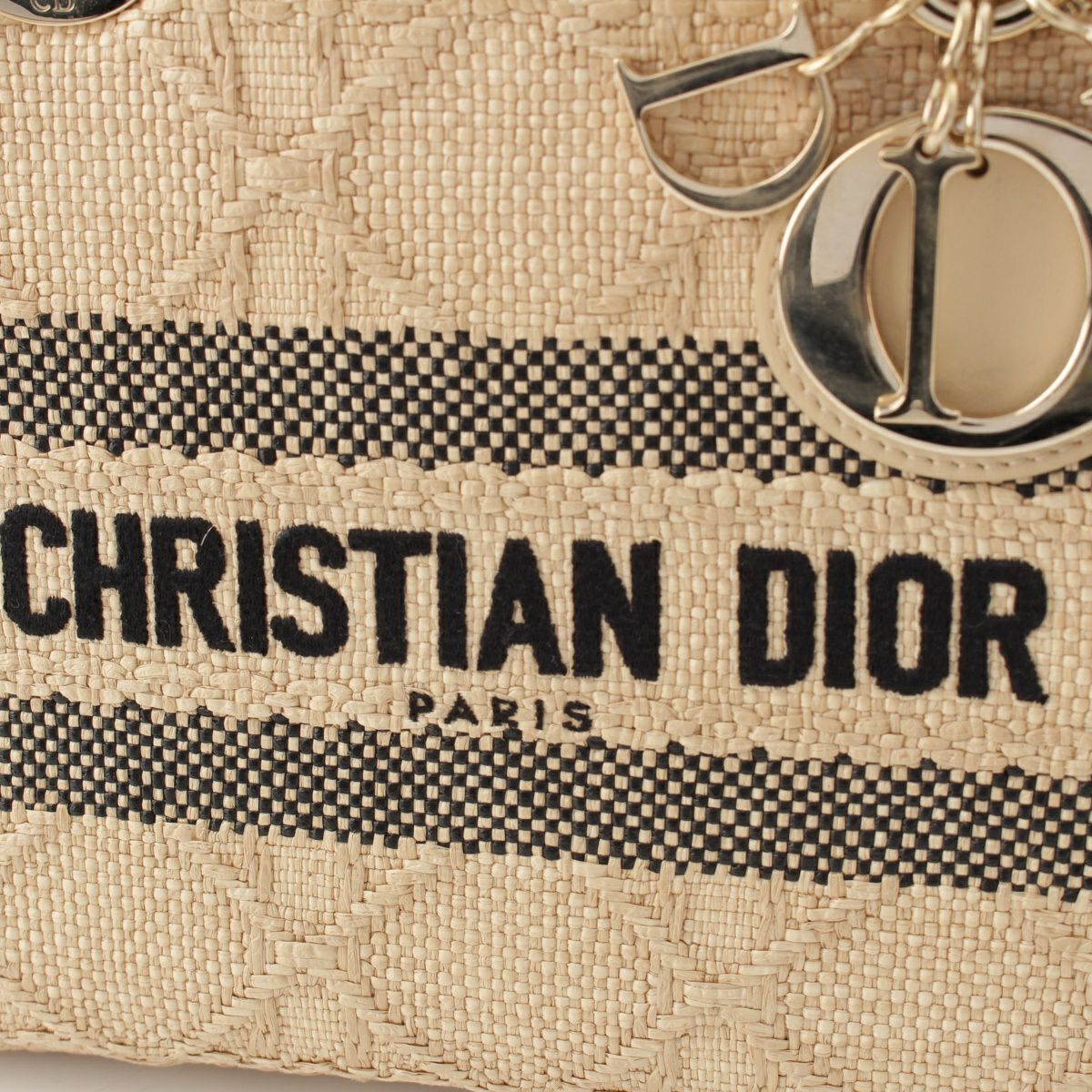 クリスチャンディオール レディディオール カナージュ ミディアム ラフィア ロゴ 2way ショルダー ハンドバッグ M0565OSQD ナチュラル