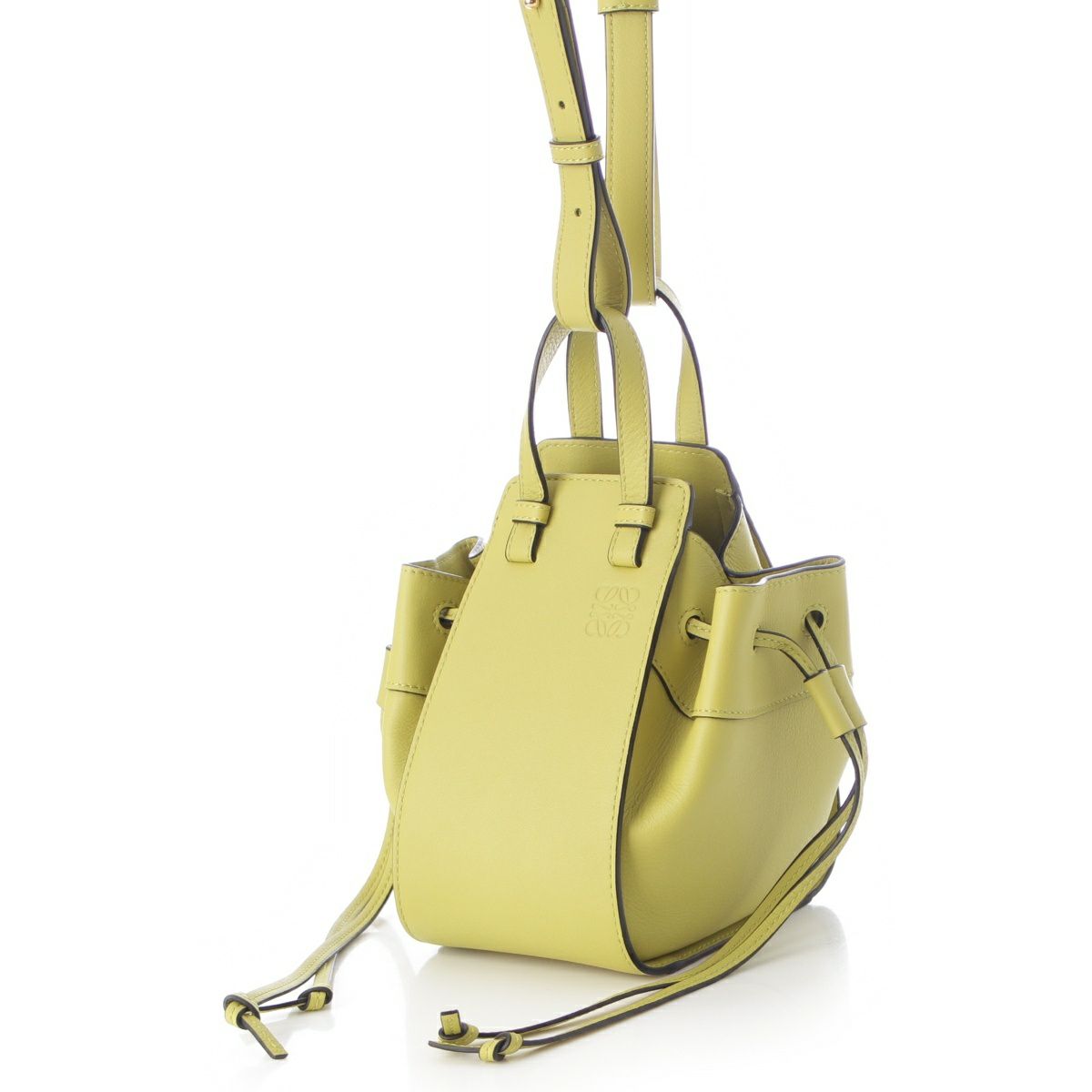 ロエベ ハンモック ミニ カーフレザー コットン ドローストリング ゴールド金具 2WAY ショルダー ハンドバッグ 314.30.V07 ライム ライトグリーン