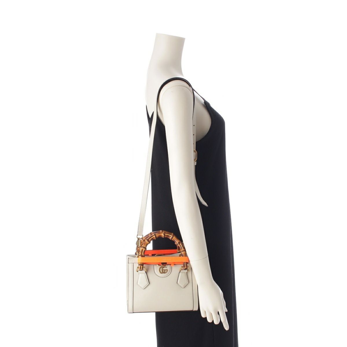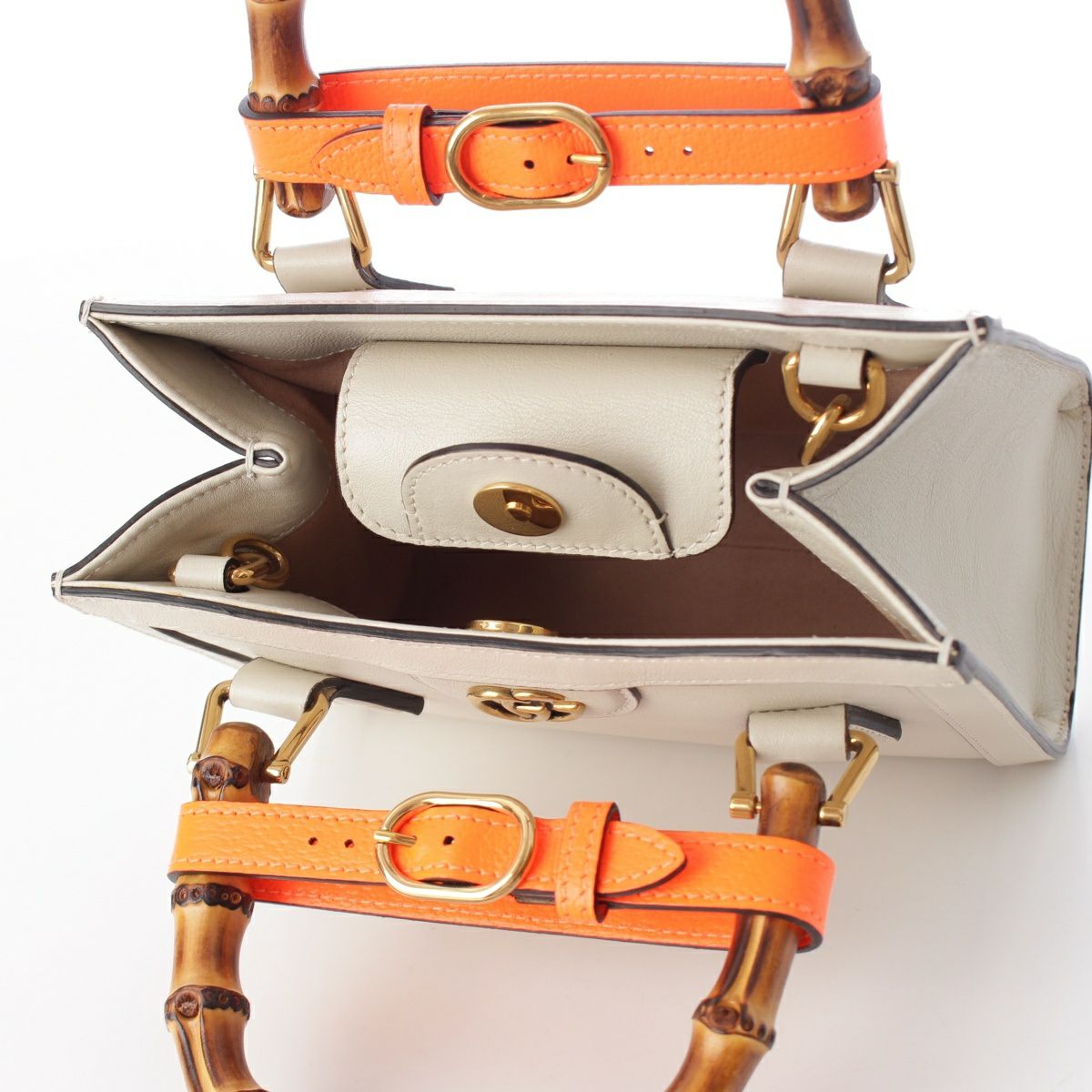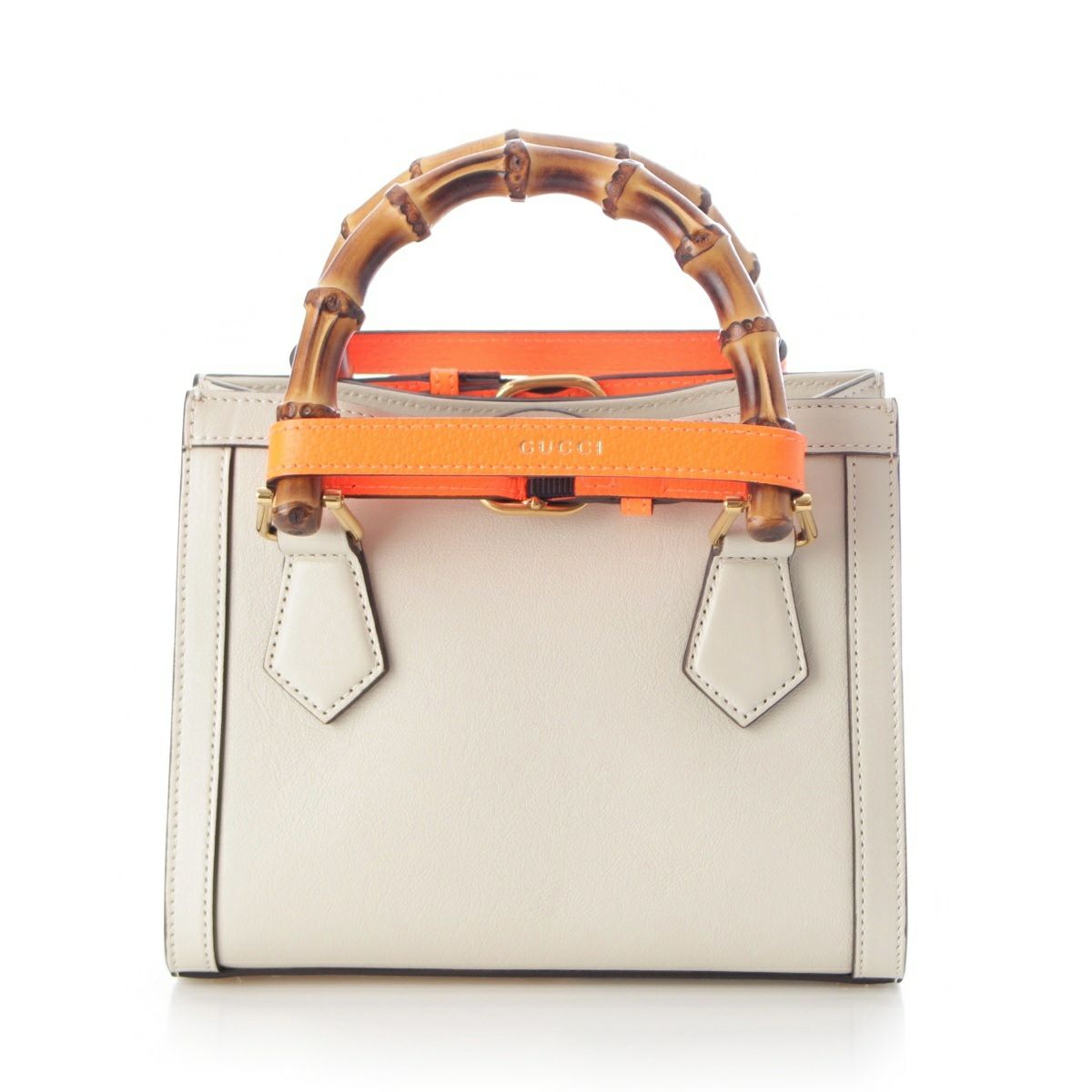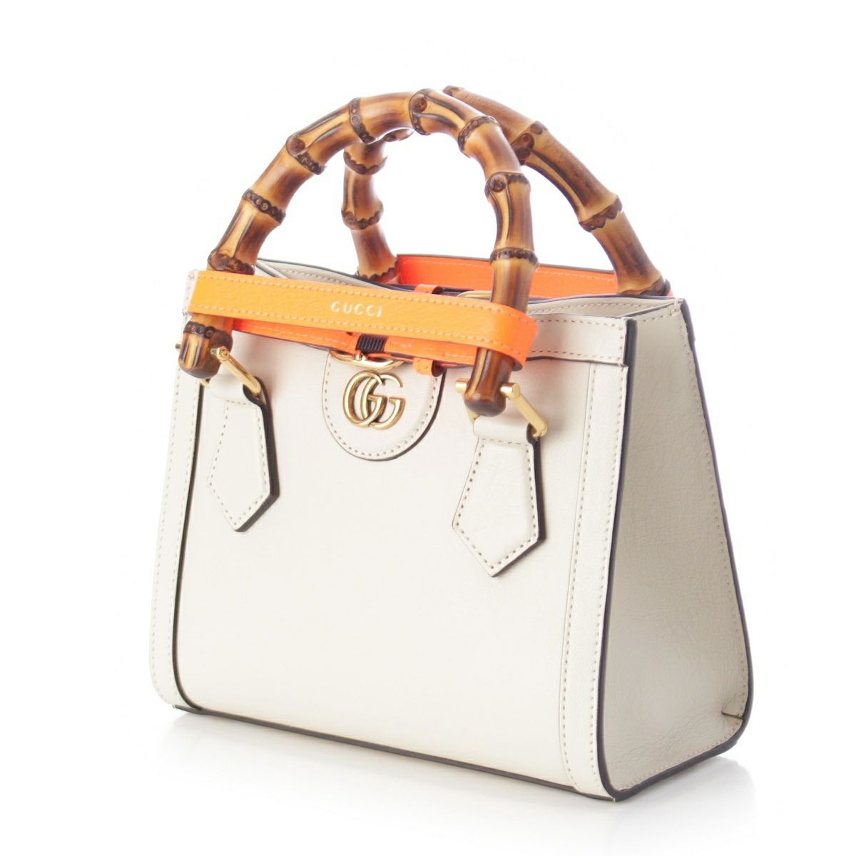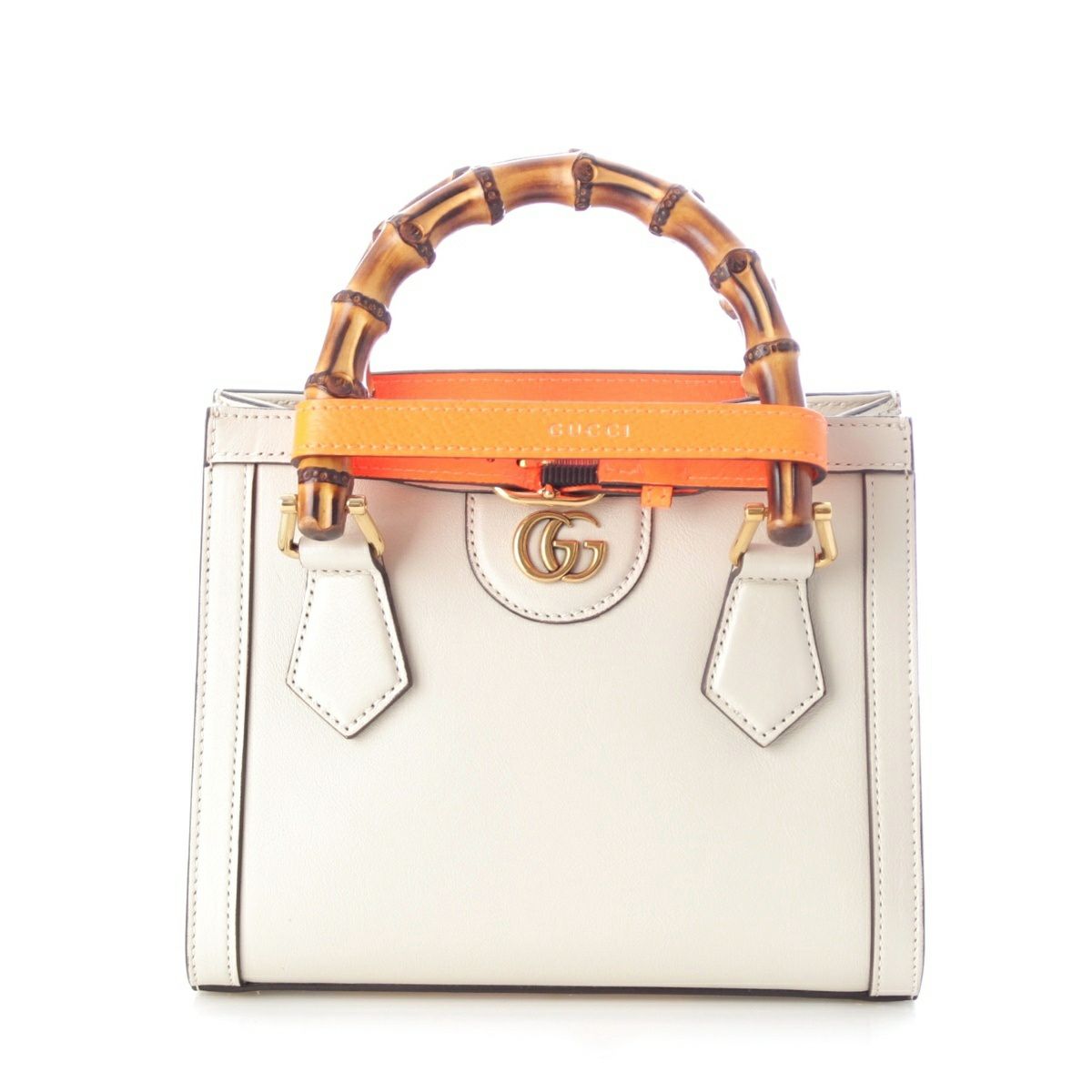 グッチ ダイアナ バンブー レザー 2way ショルダー ハンドバッグ 655661 ホワイト オレンジ