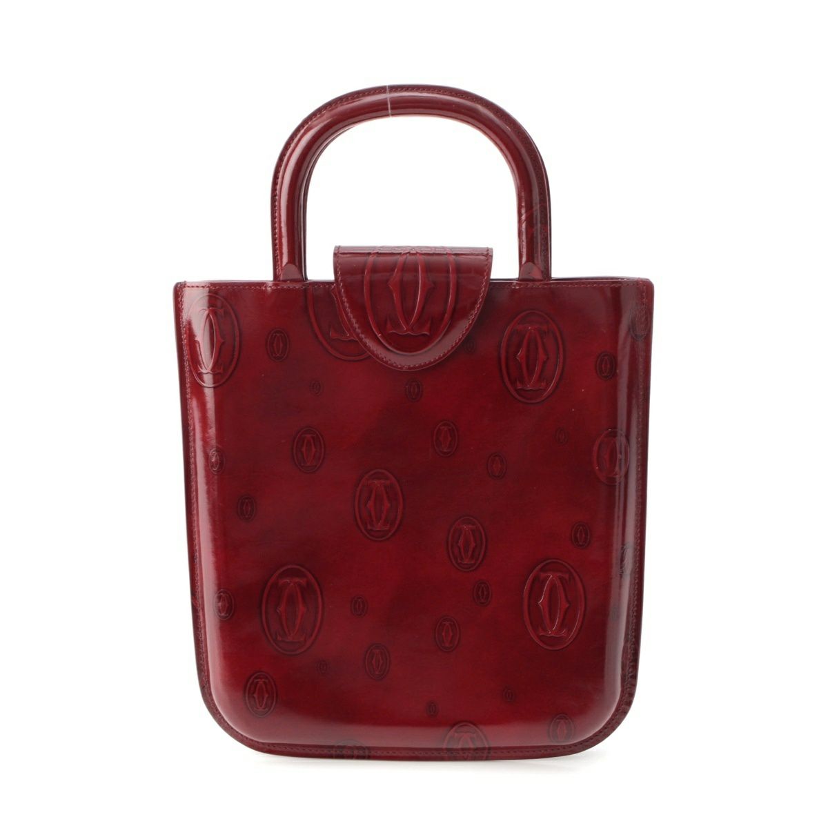 カルティエ ハッピーバースデー パテントレザー ハンドバッグ ボルドー