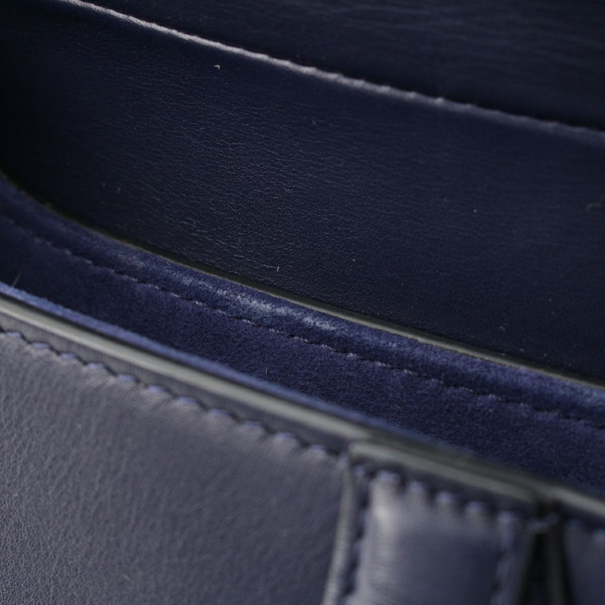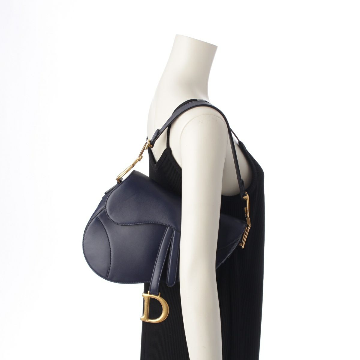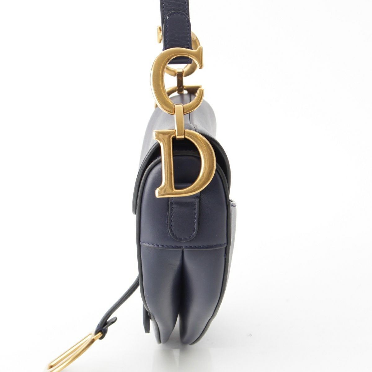 クリスチャンディオール スムースカーフ ゴールド金具 サドル ハンドバッグ ネイビー