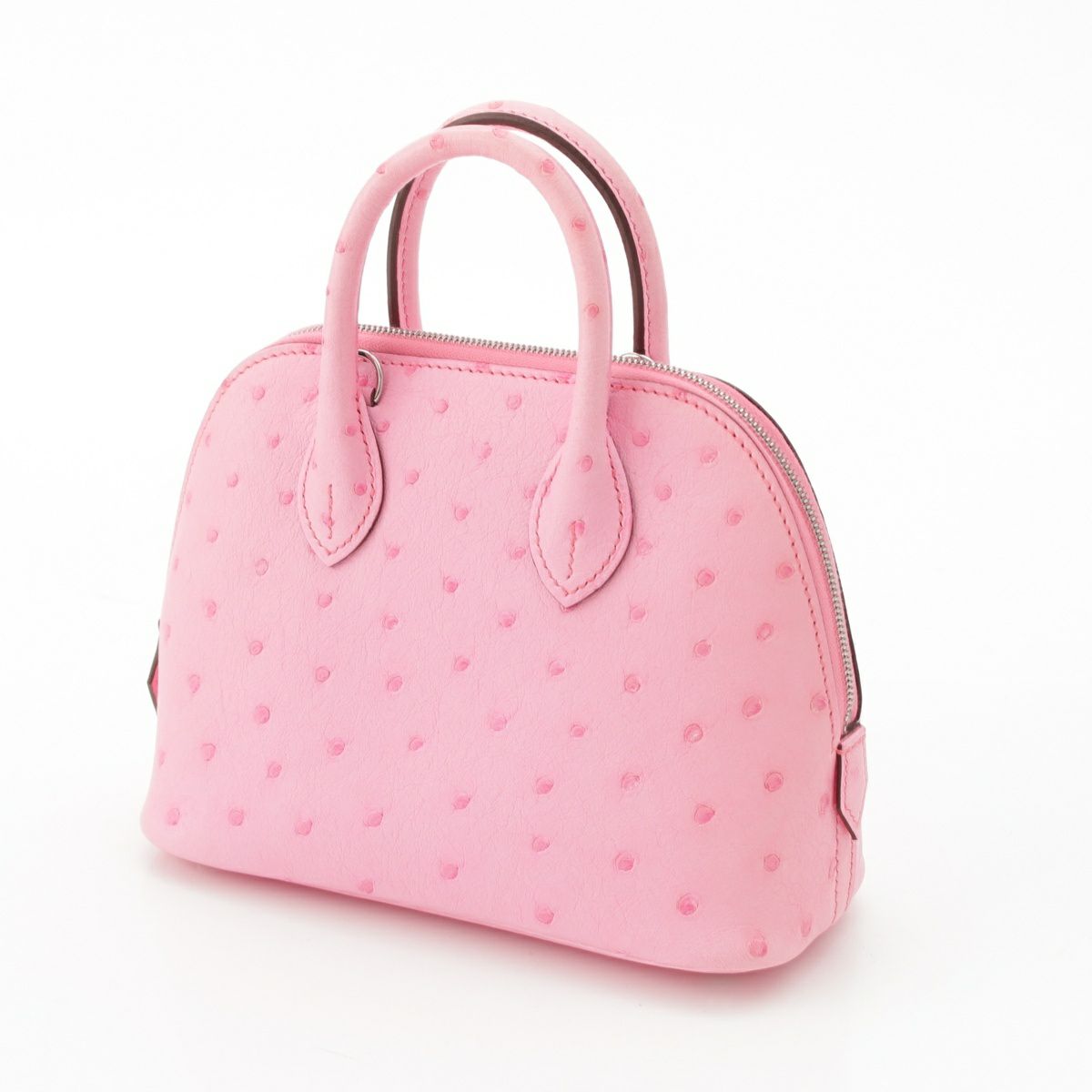 エルメス W刻印 ボリード オーストリッチ レザー シルバー金具 ハンドバッグ ローズバブルガム