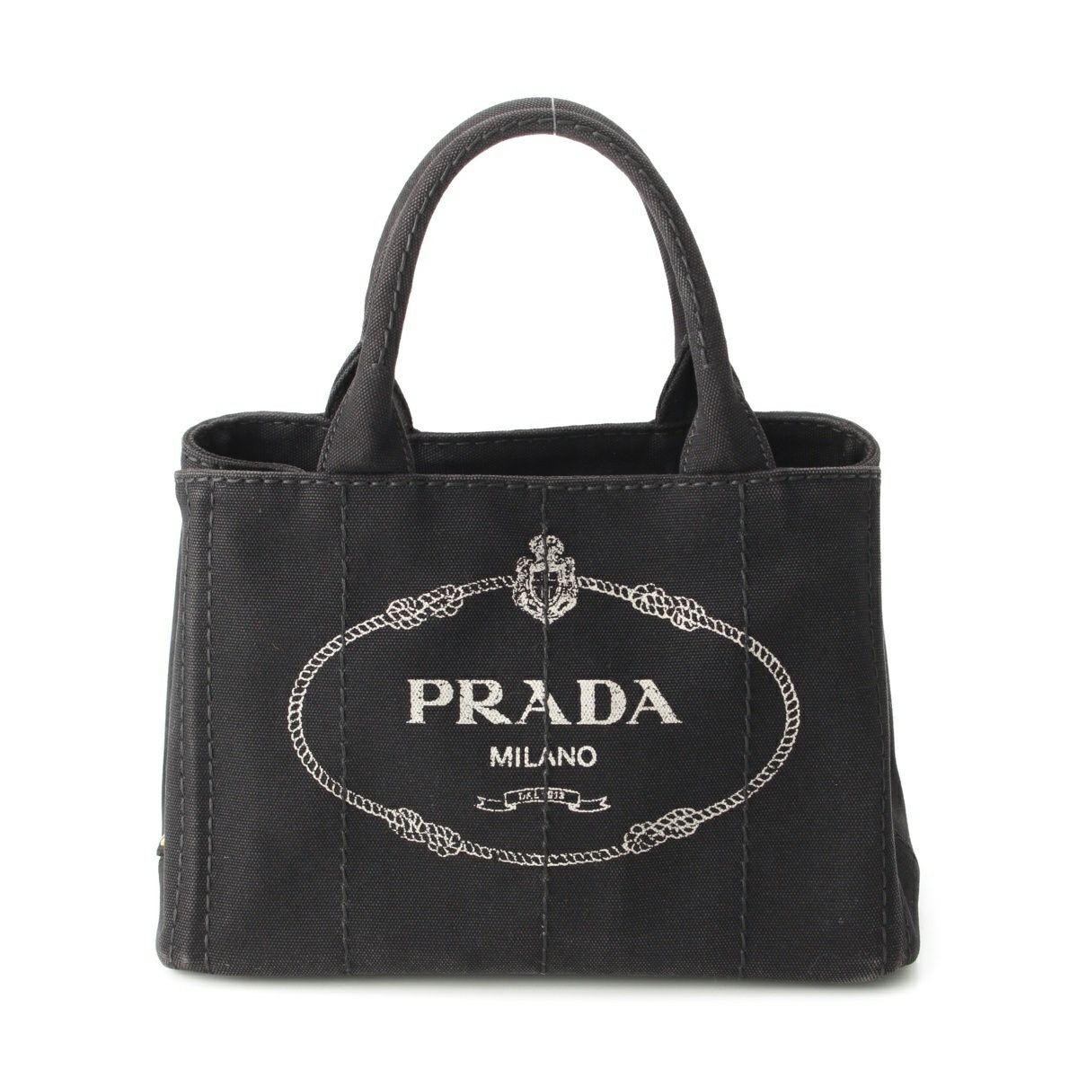 プラダ カナパ キャンバス ロゴ 2WAY ショルダー ハンドバッグ 1BG439 ブラック GPゴールド