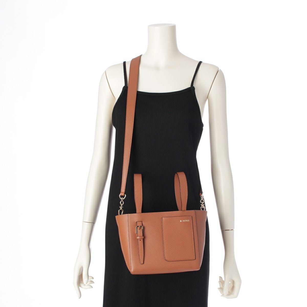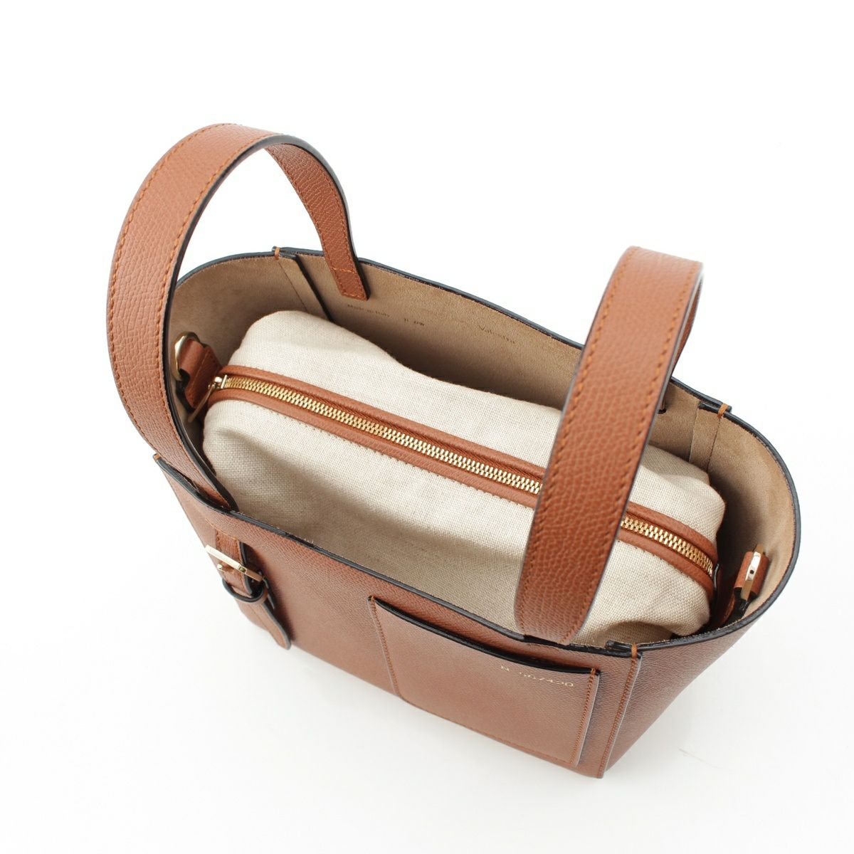 ヴァレクストラ レザー バケット マイクロ ポーチ付き 2way ハンドバッグ ゴールド ブラウン