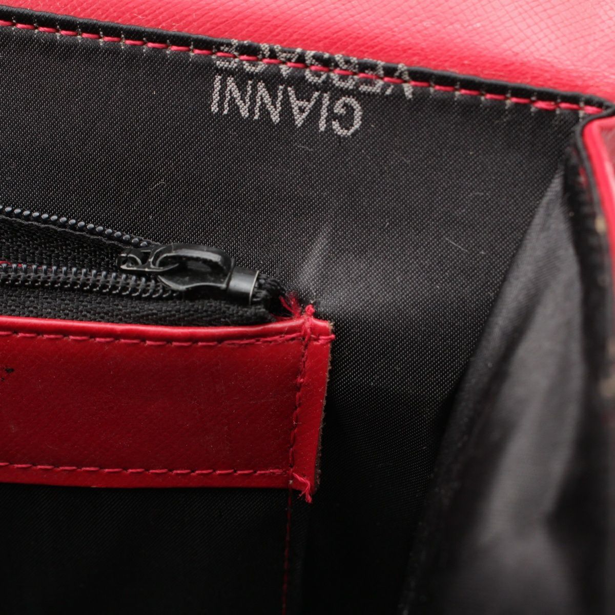 ジャンニ・ヴェルサーチェ レザー トップハンドル チャーム バニティバッグ レッド