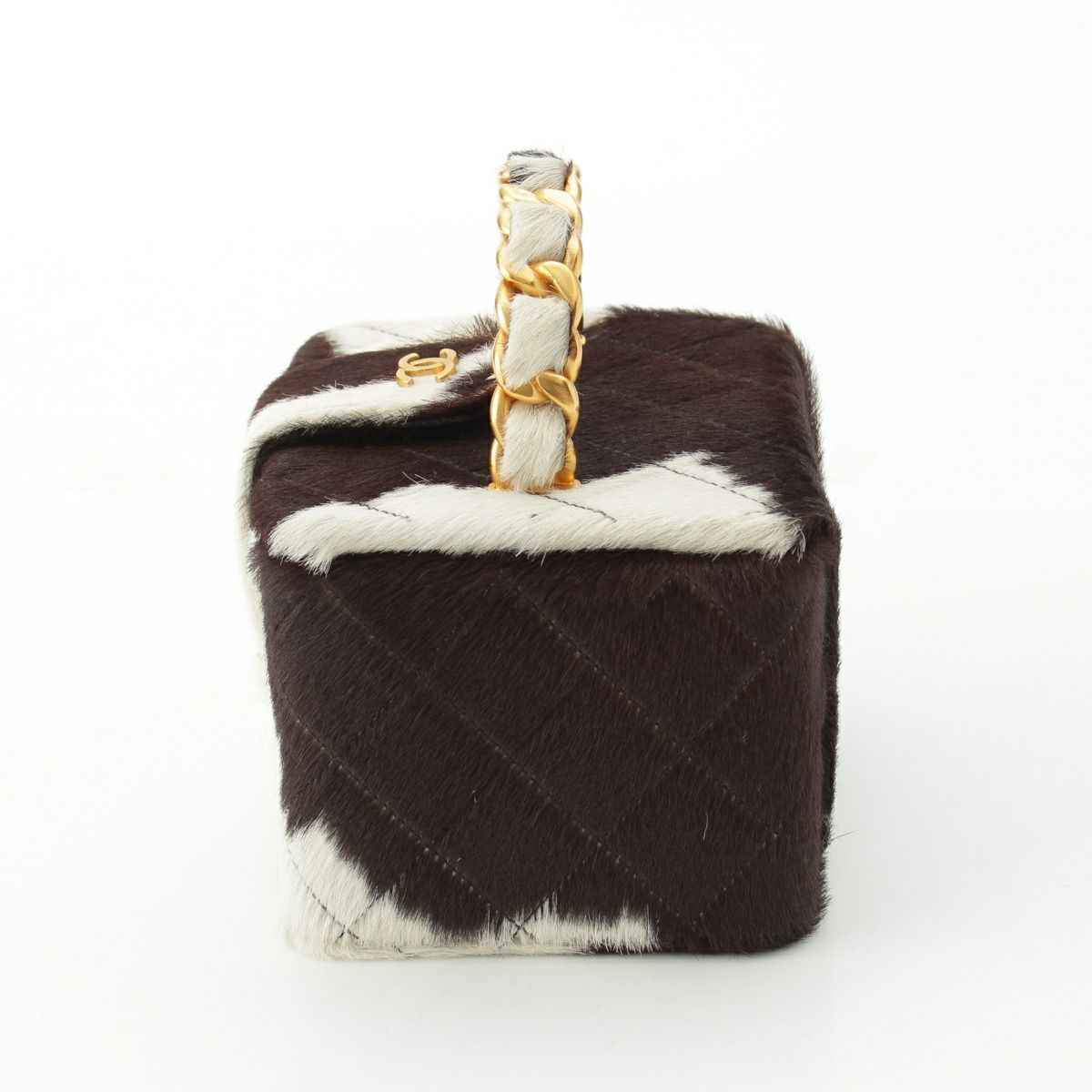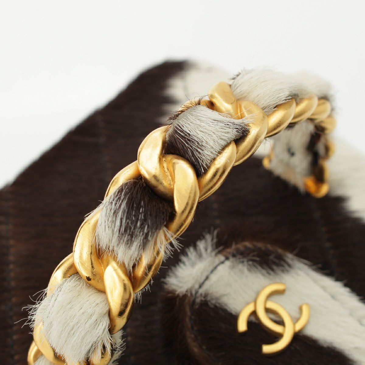 シャネル 95AW ハラコ ヴィンテージ ココマーク スクエア ミニ ハンドル バニティバッグ ブラウン ホワイト