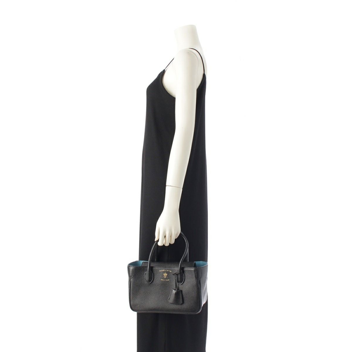 エーディーエムジェイ シュリンクレザー ロゴ ミニ ハンドバッグ ブラック