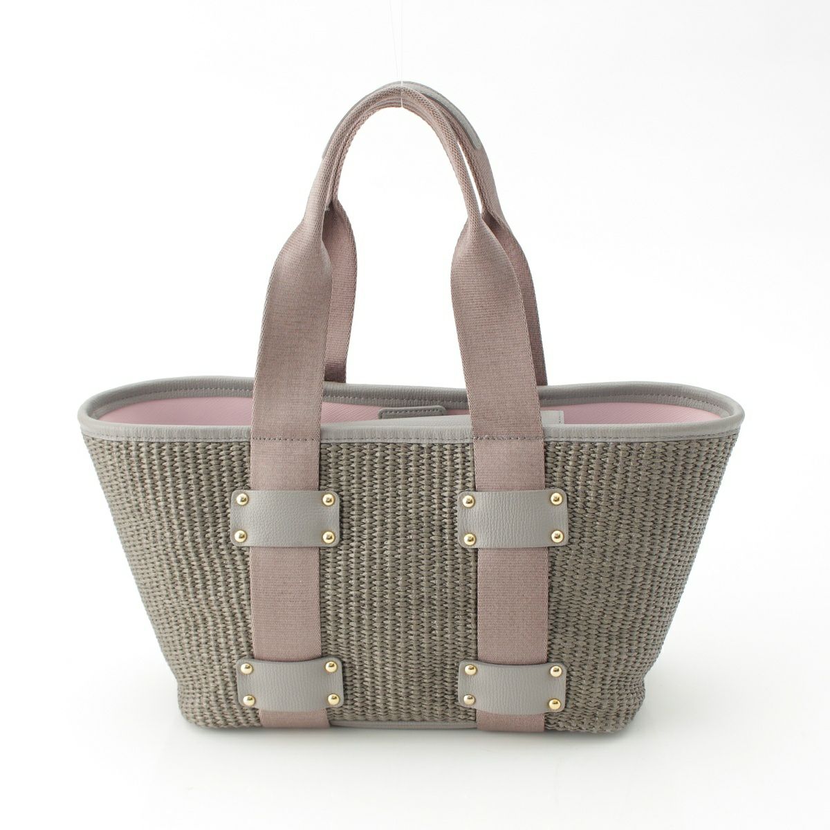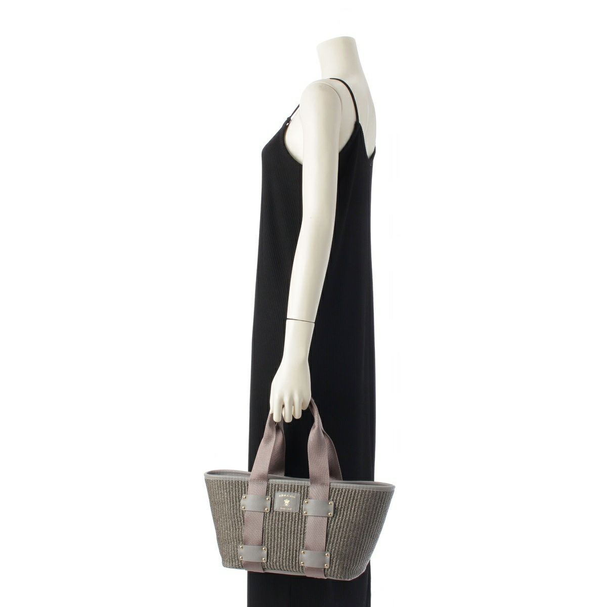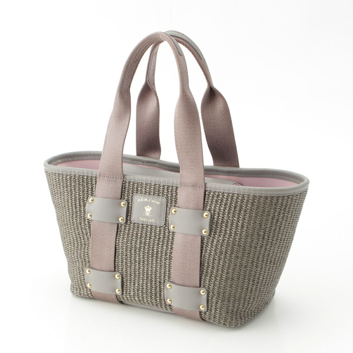 エーディーエムジェイ ラフィア かご ハンドバッグ グレー