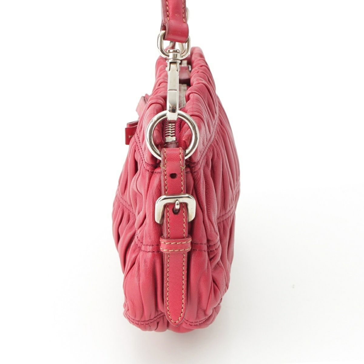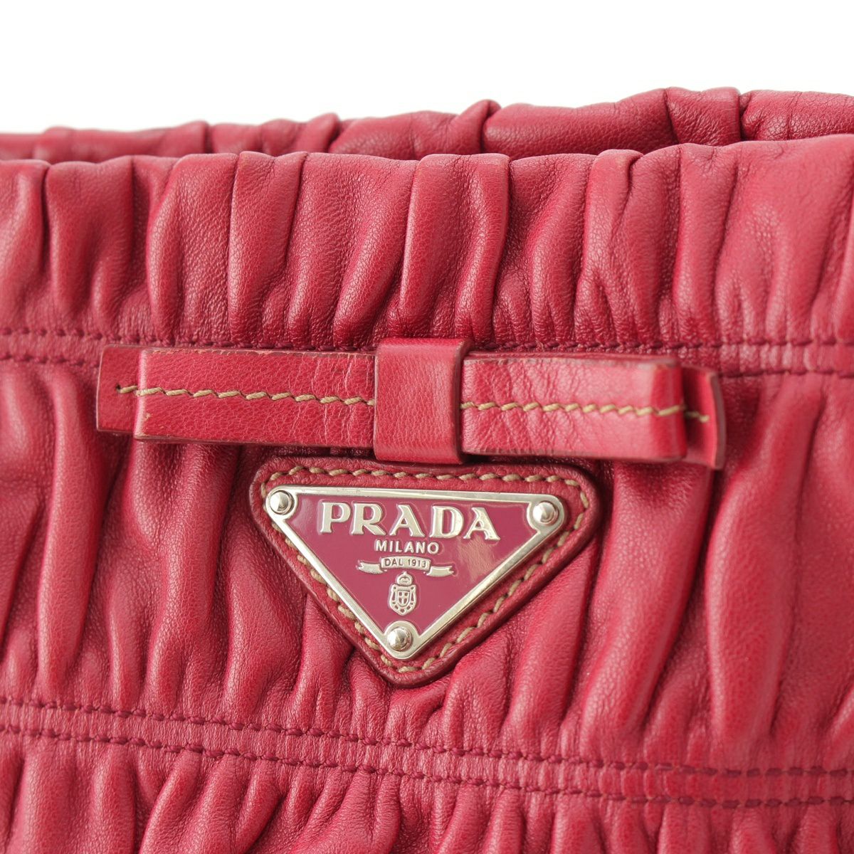 プラダ ナッパレザー ギャザー トライアングルロゴ ワンショルダー ハンドバッグ アクセサリーポーチ BN1676 ボルドー