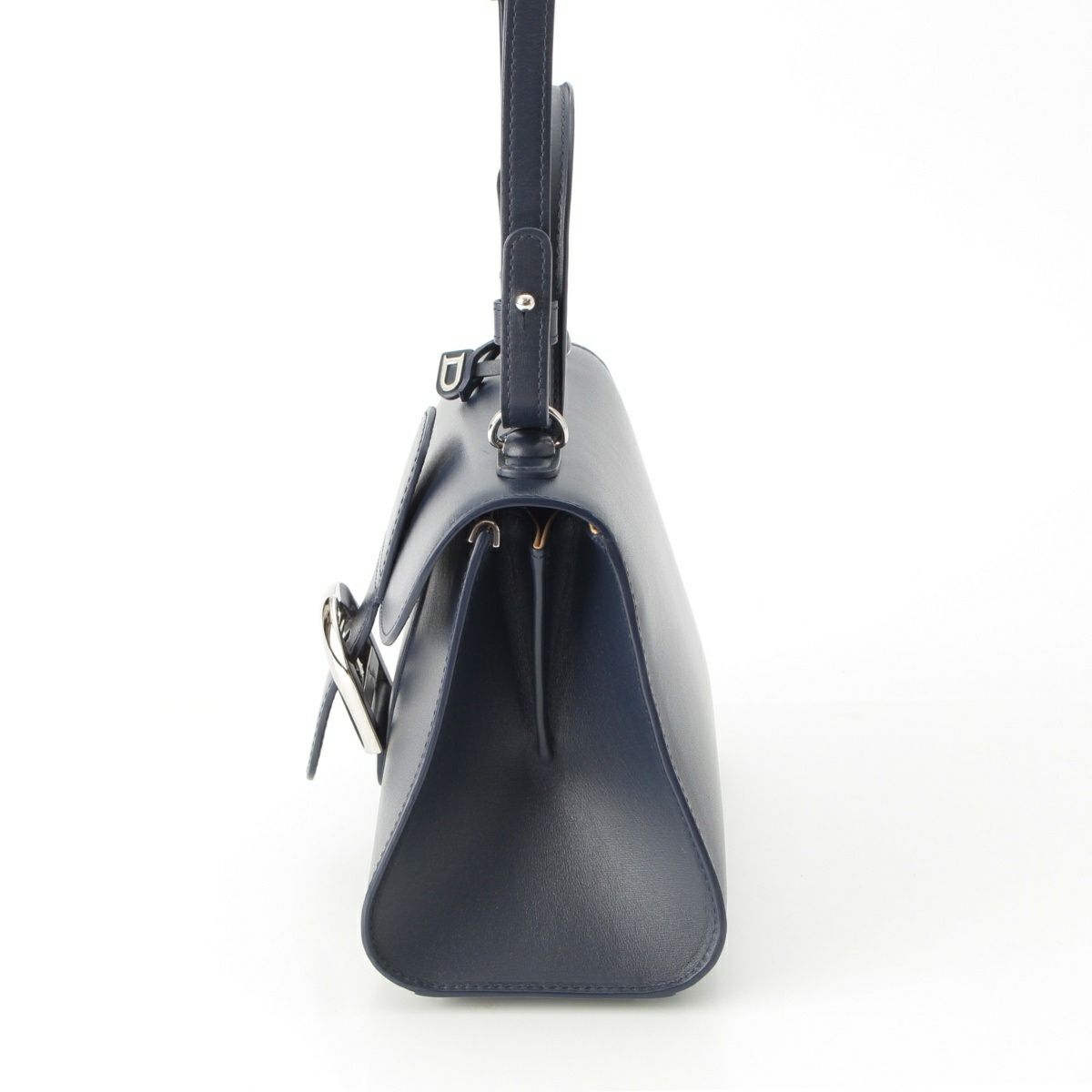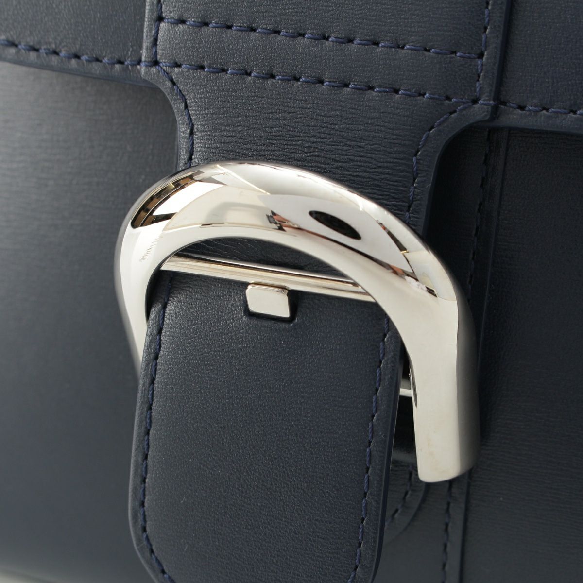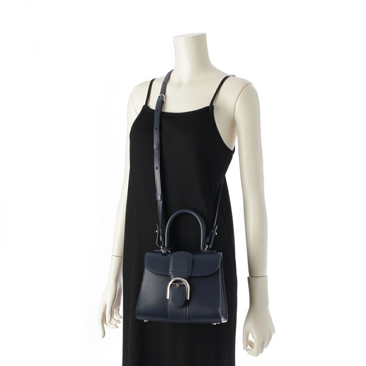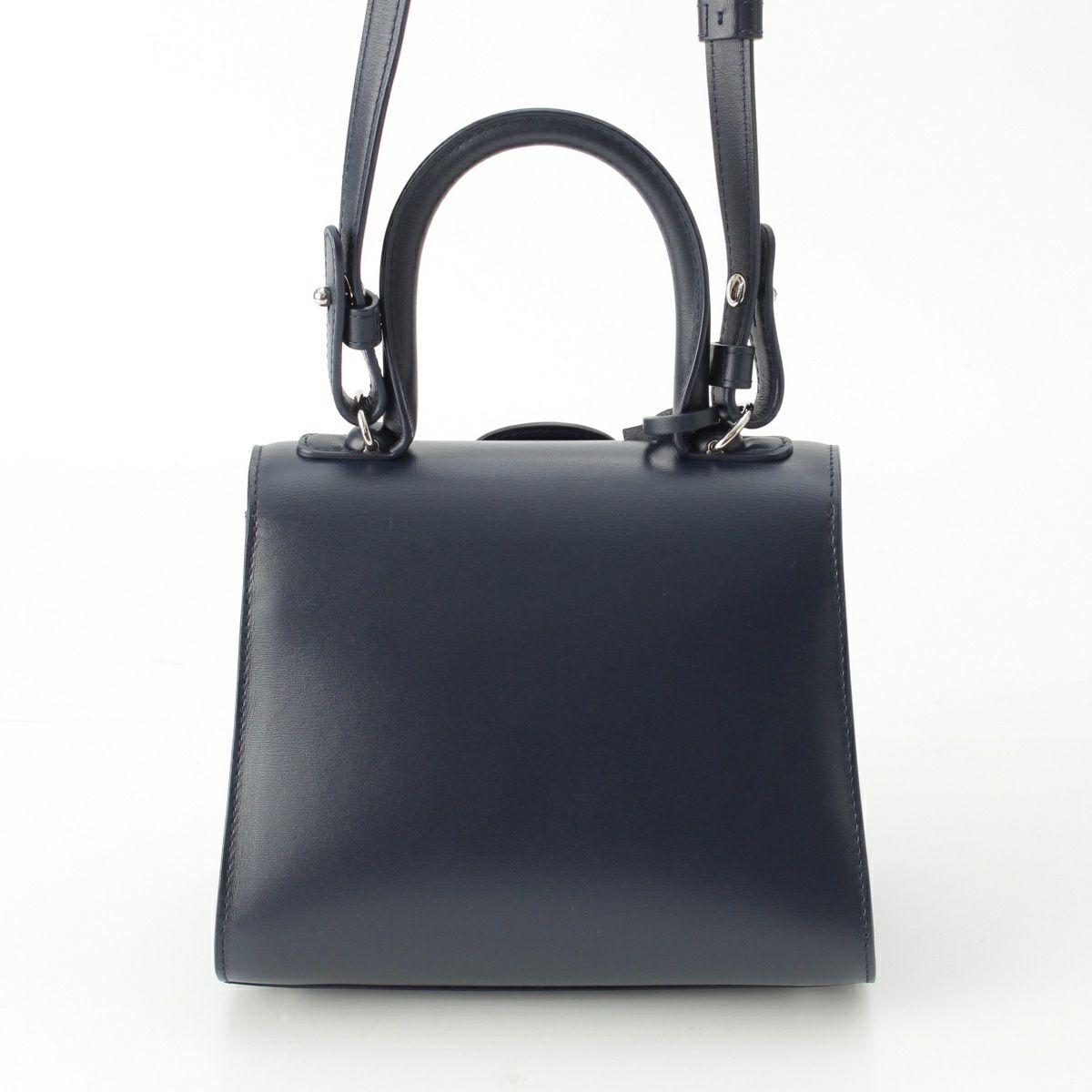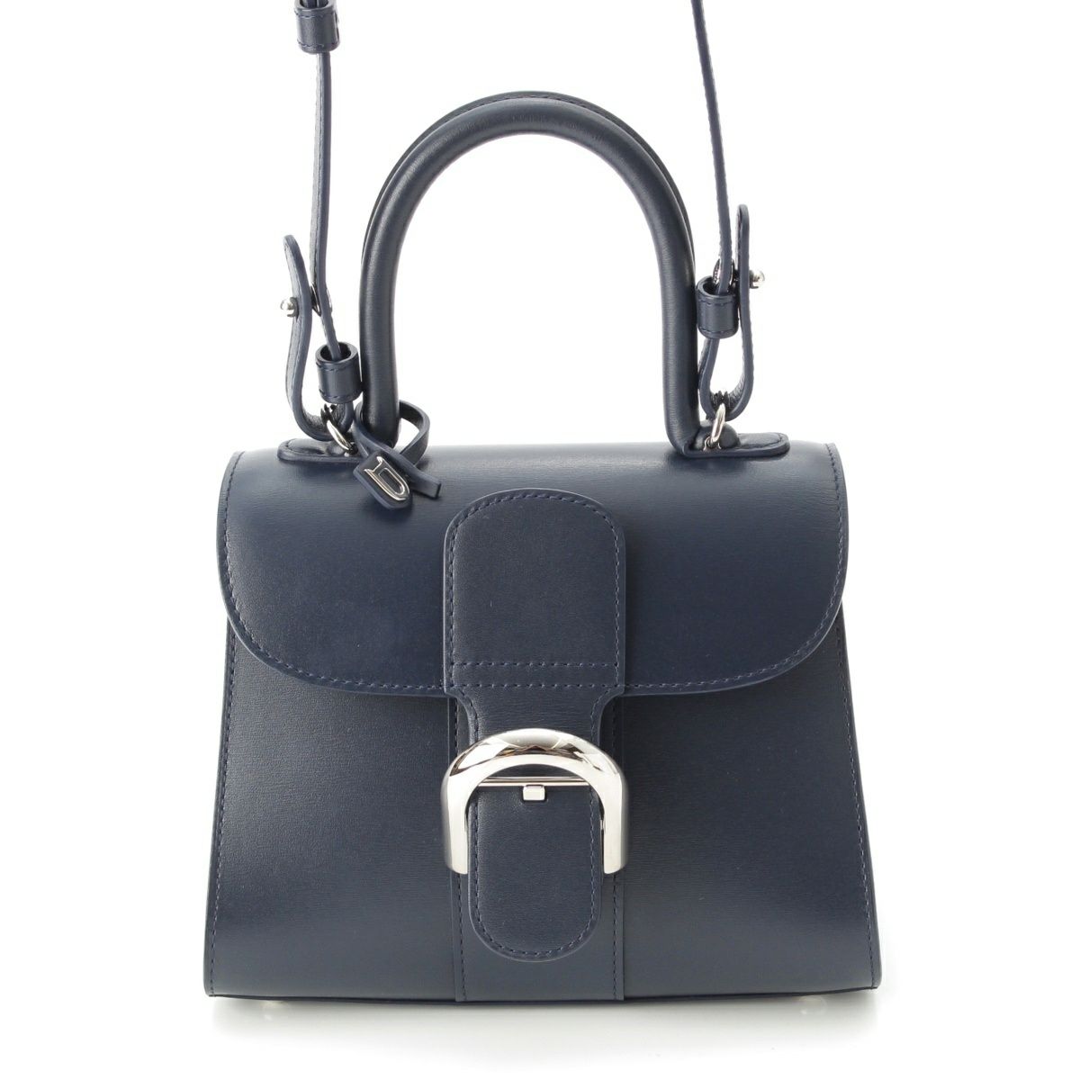 デルヴォー ブリヨン ミニ ボックスカーフ 2way ショルダー ハンドバッグ ネイビー