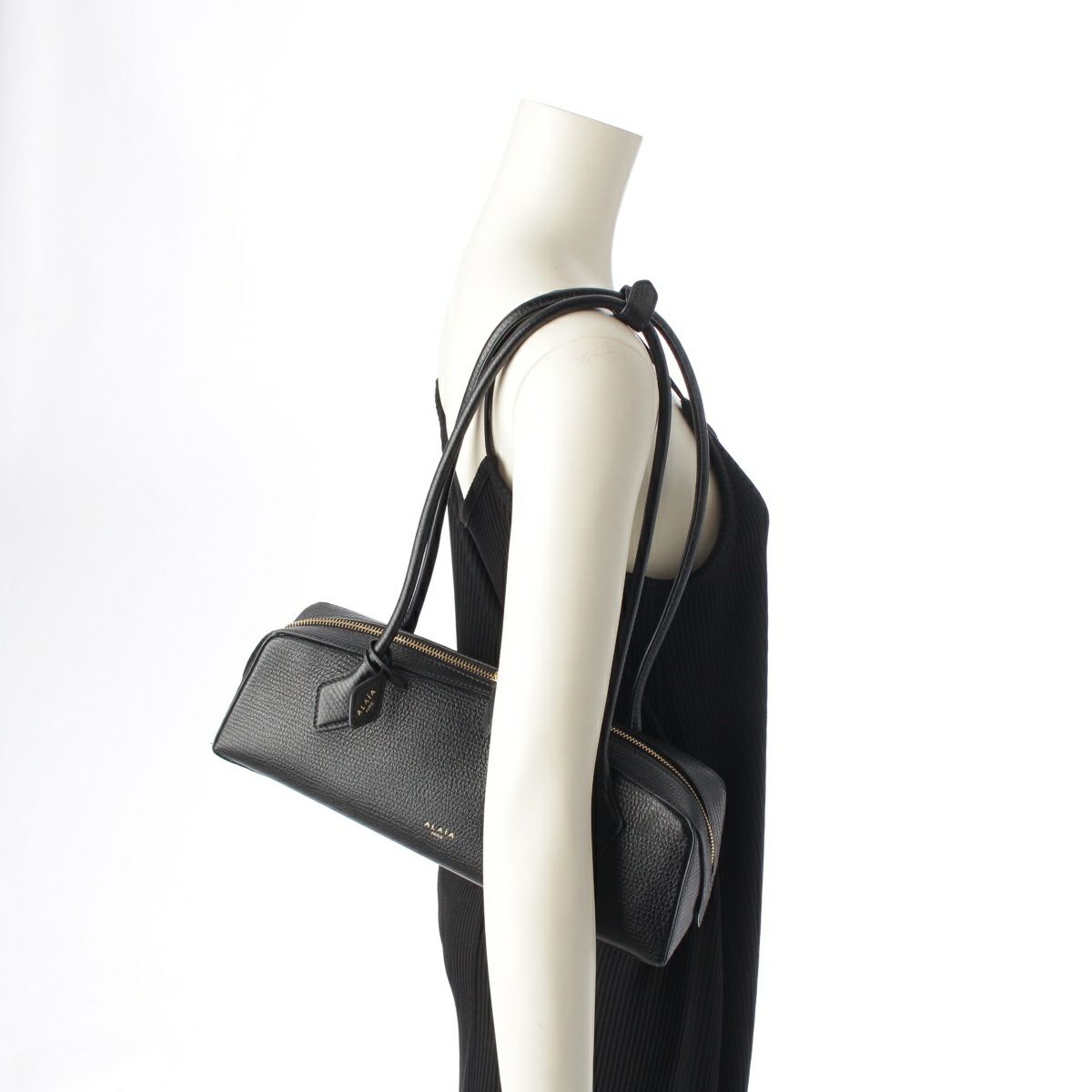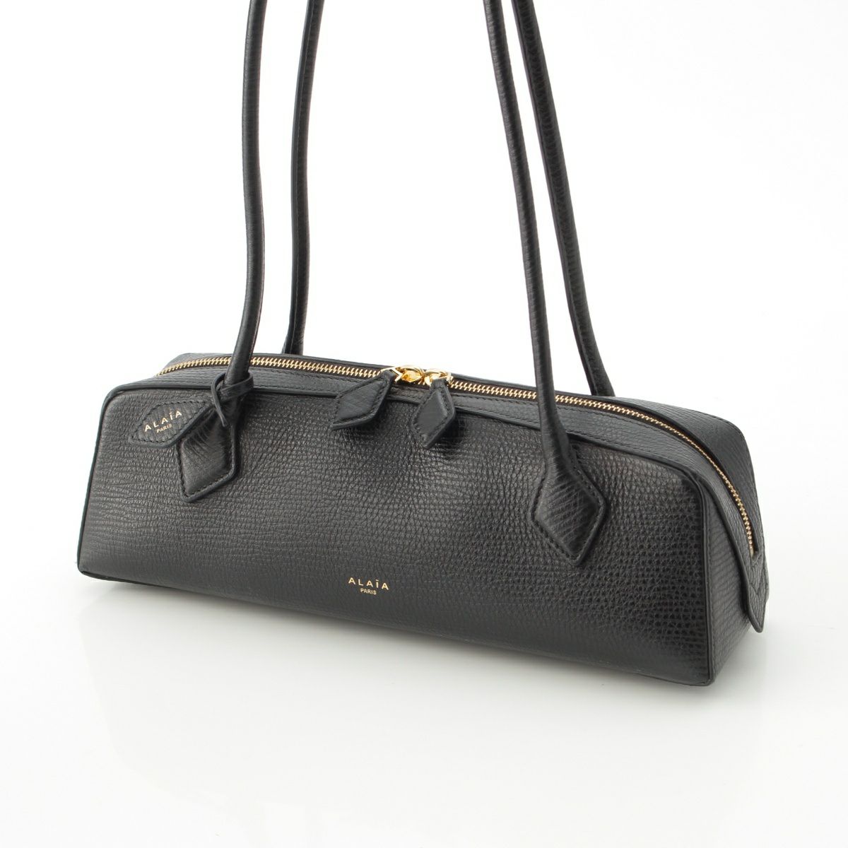 アライア LE TECKEL SMALL テクスチャードレザー GPゴールド ゴールド金具 ハンドバッグ ブラック
