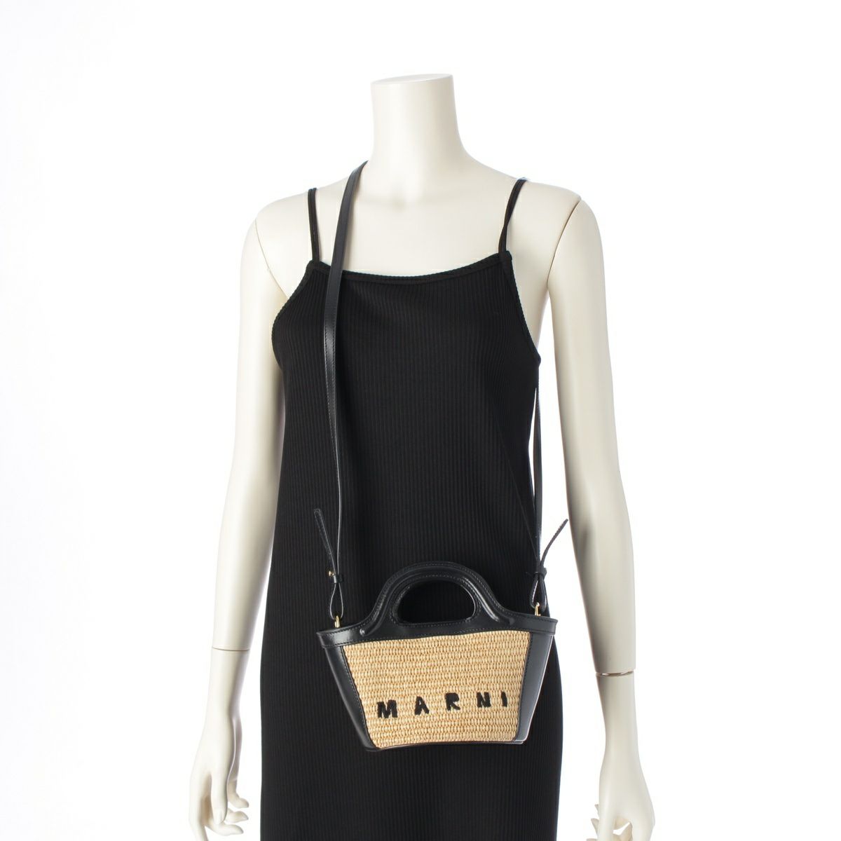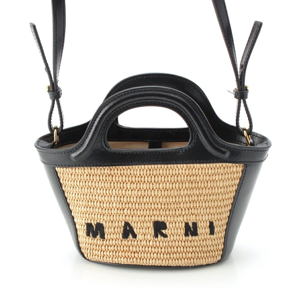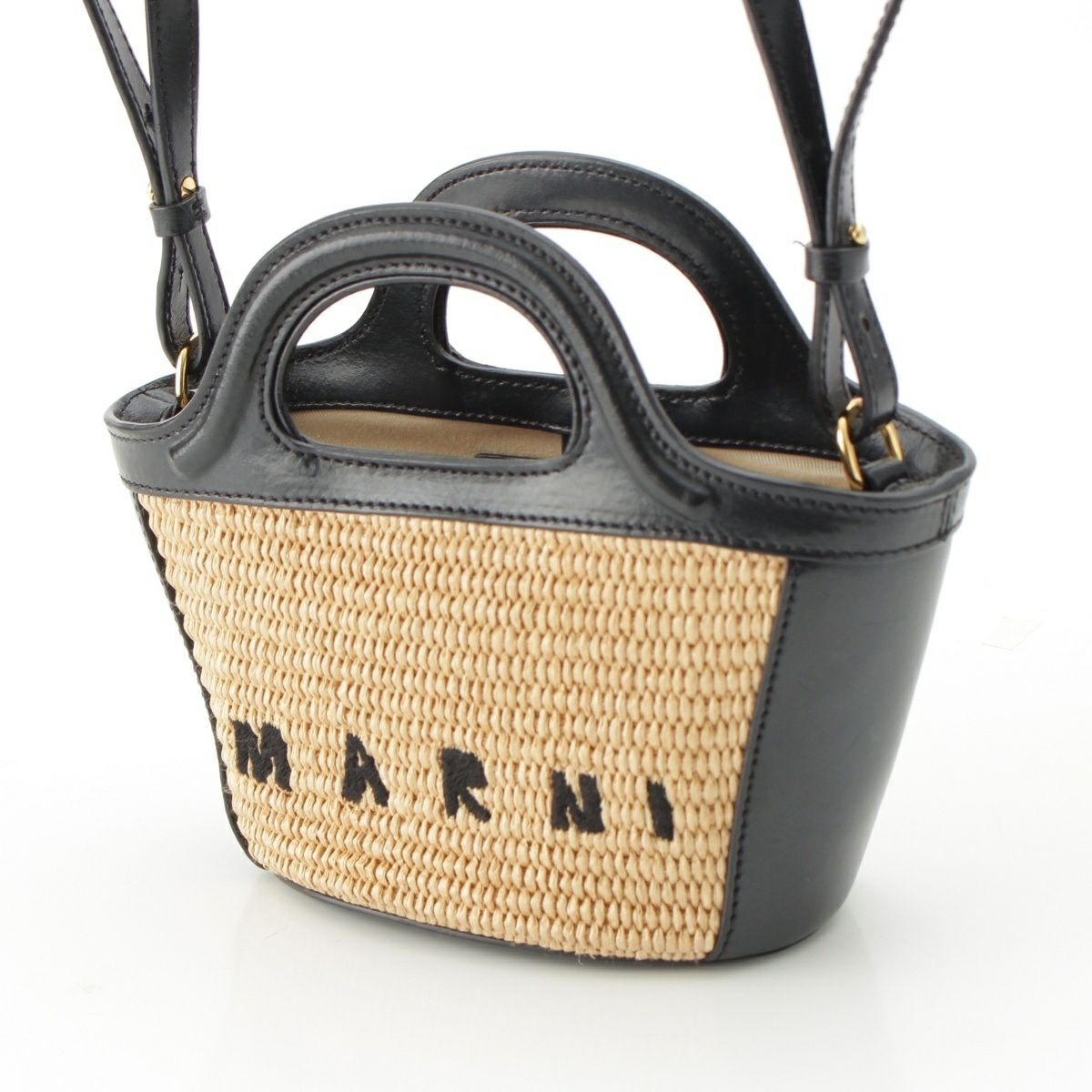 マルニ トロピカリア マイクロ ストロー レザー ロゴ 2WAY ショルダー ハンドバッグ ベージュ ブラック