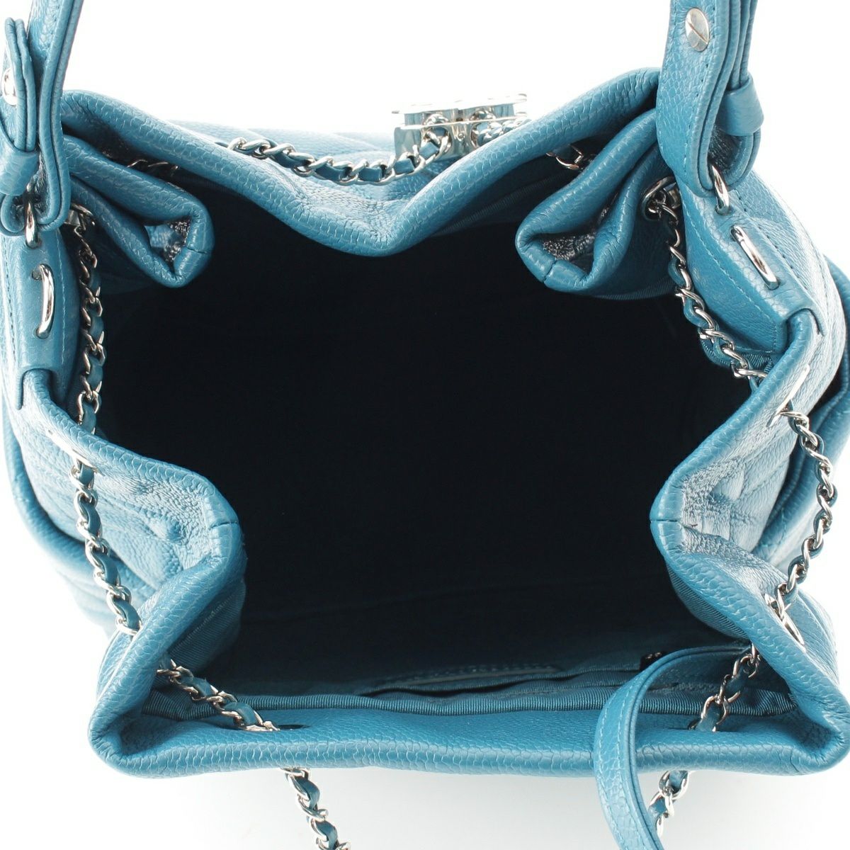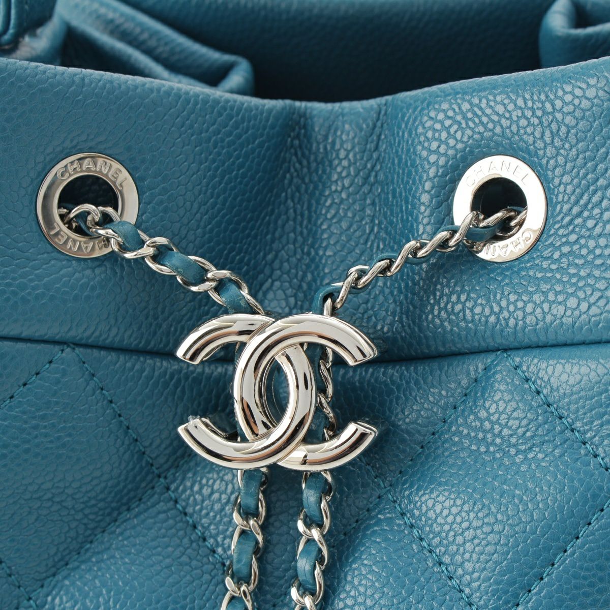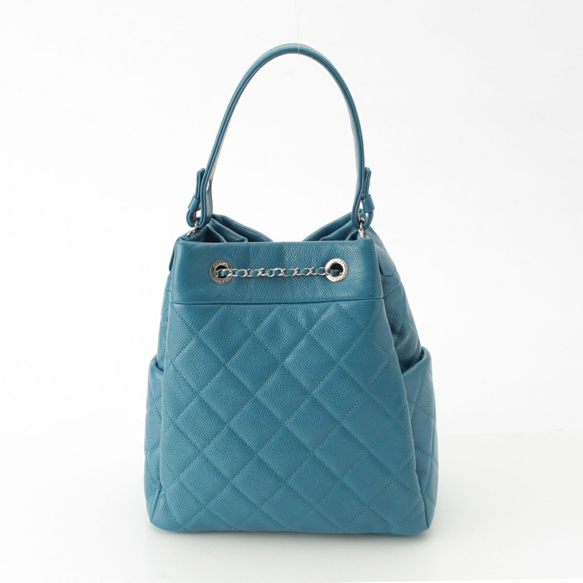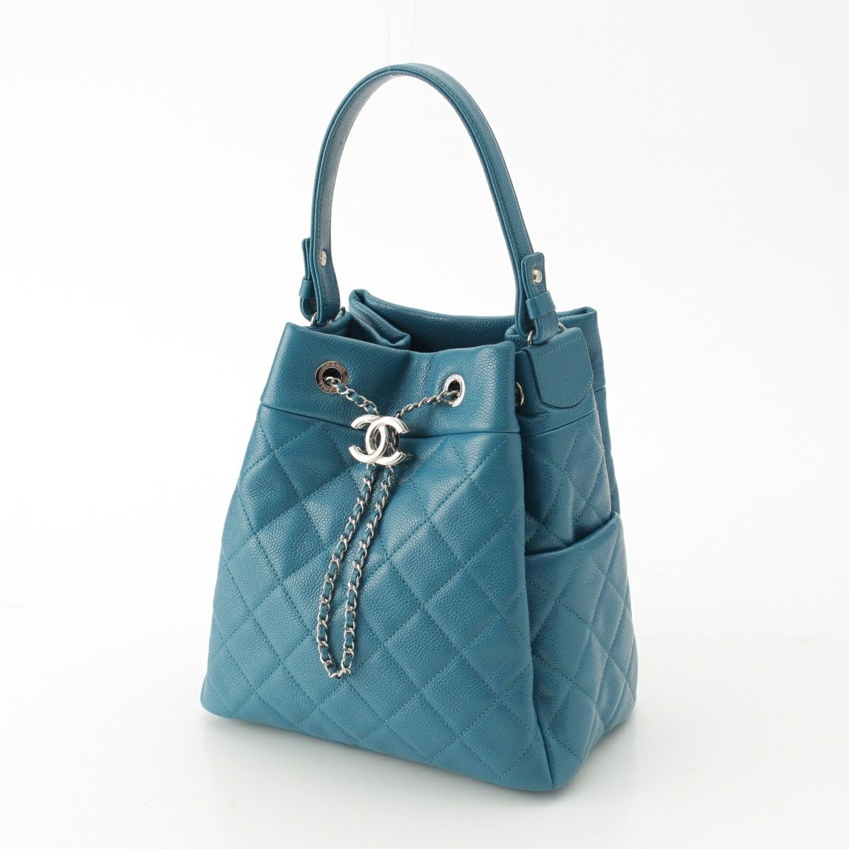 シャネル キャビアスキン マトラッセ ドローストリング 巾着 ハンドバッグ A91277 ブルー