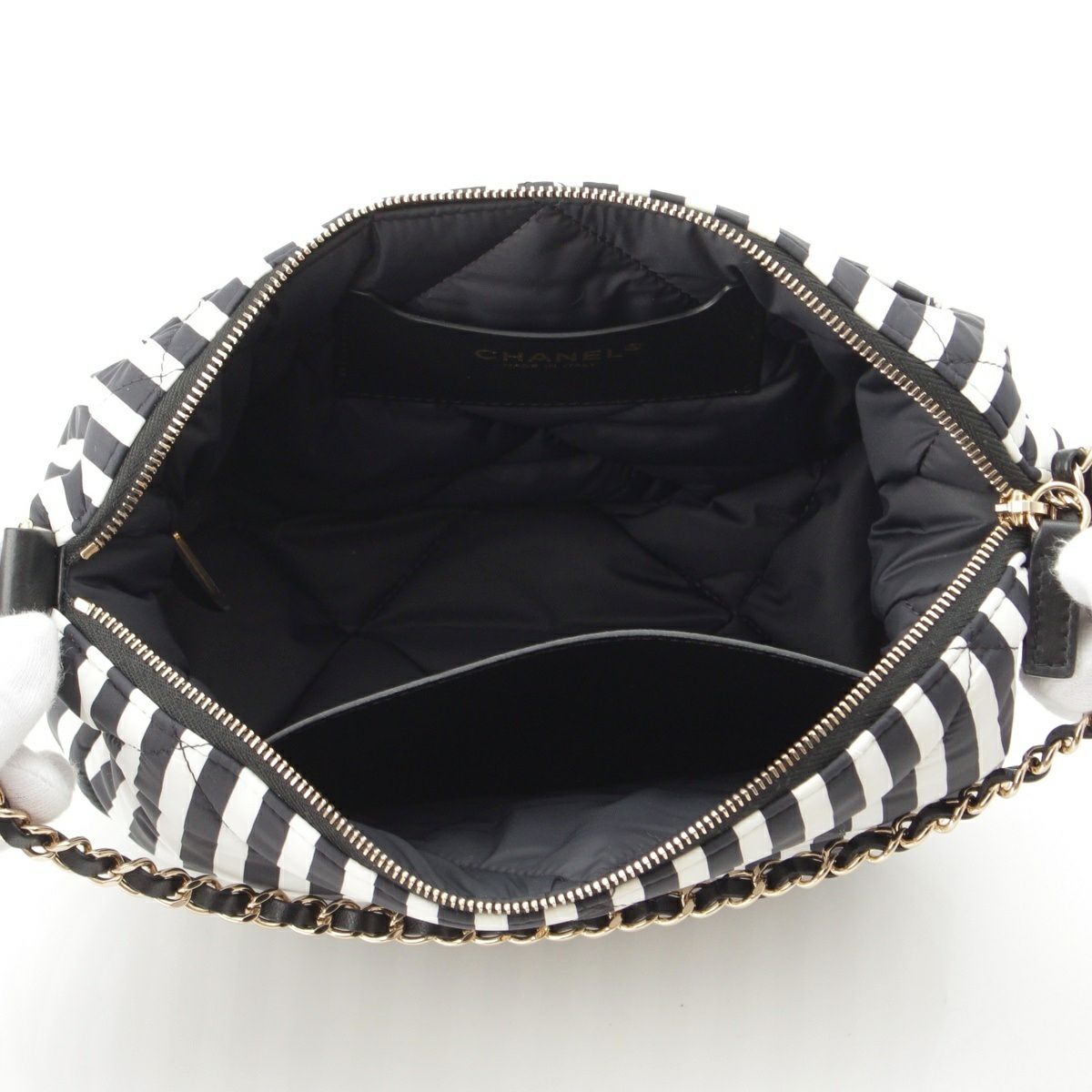 シャネル ココビーチ ラージ ホーボー ストライプ ワンショルダー ハンドバッグ アクセサリーポーチ AS4698 ブラック ホワイト