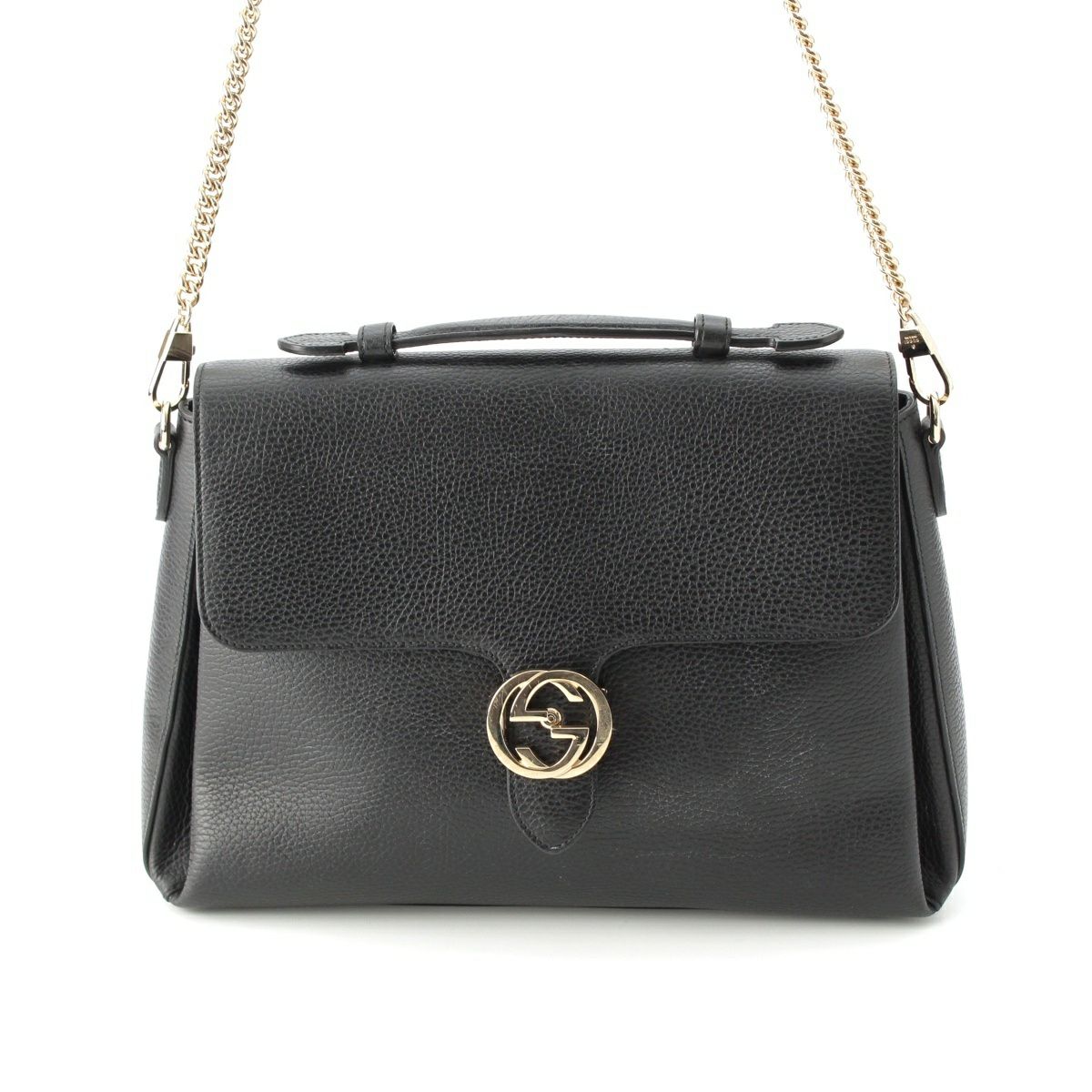 グッチ インターロッキングG レザー 2way ハンドバッグ チェーンショルダー 510306 ブラック