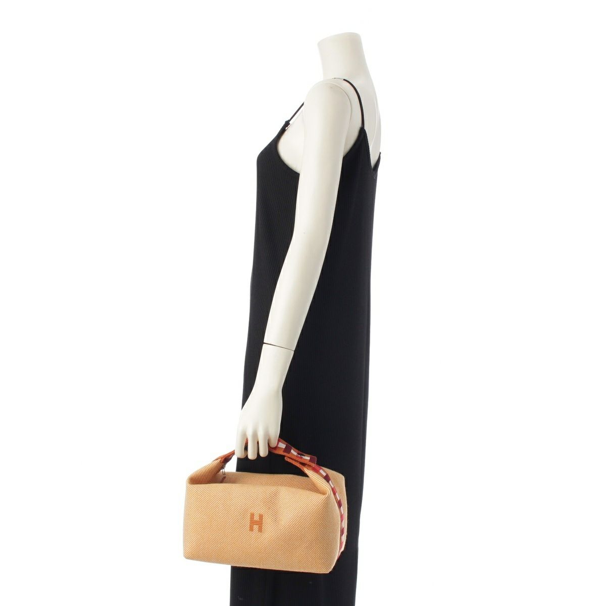 エルメス ブリッド ア ブラック GM ウール 刺繍 ロゴ ハンドバッグ オレンジ