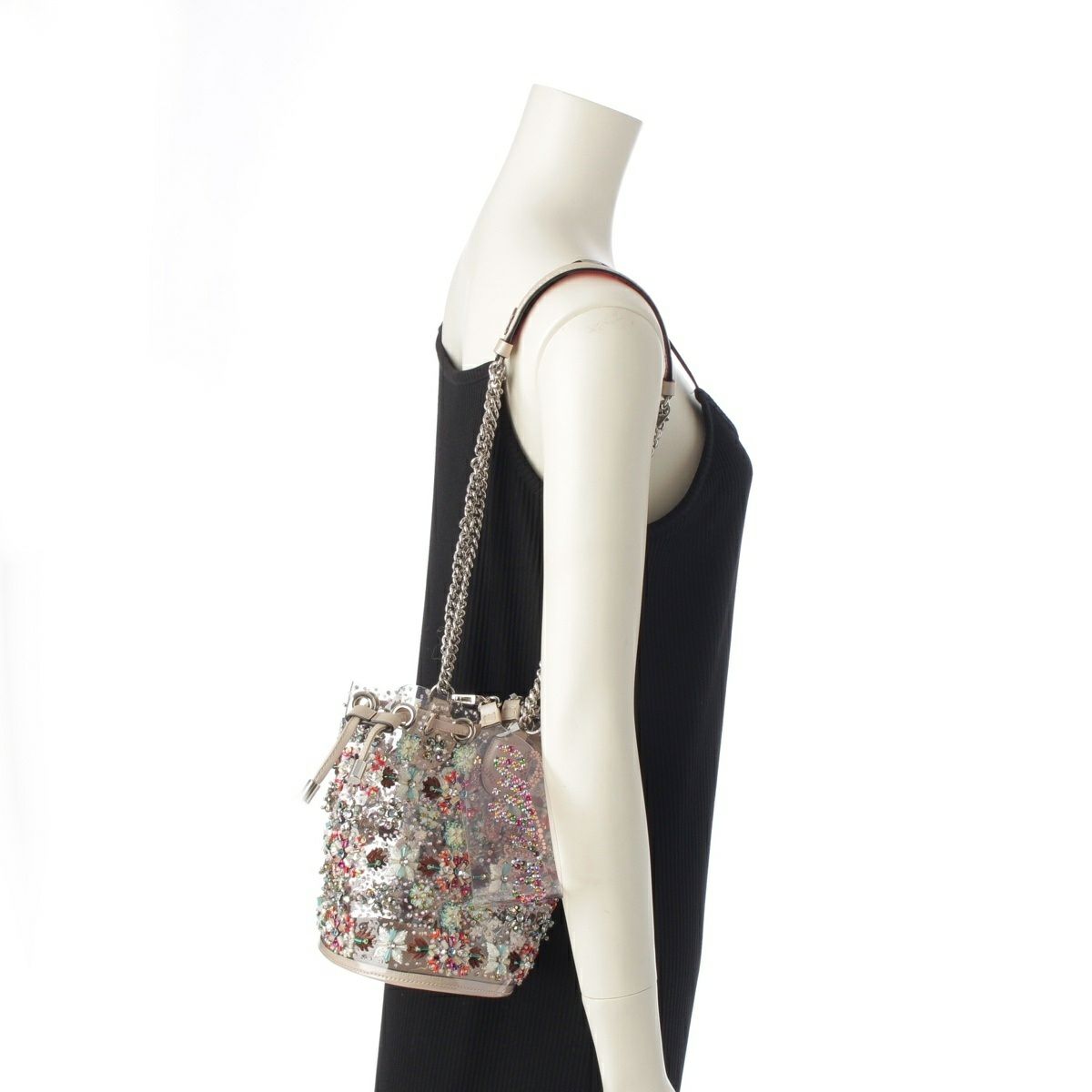 クリスチャンルブタン marie jane ビニール クリア ビーズ フラワー ロゴバケットバッグ 巾着 ハンドバッグ マルチカラー