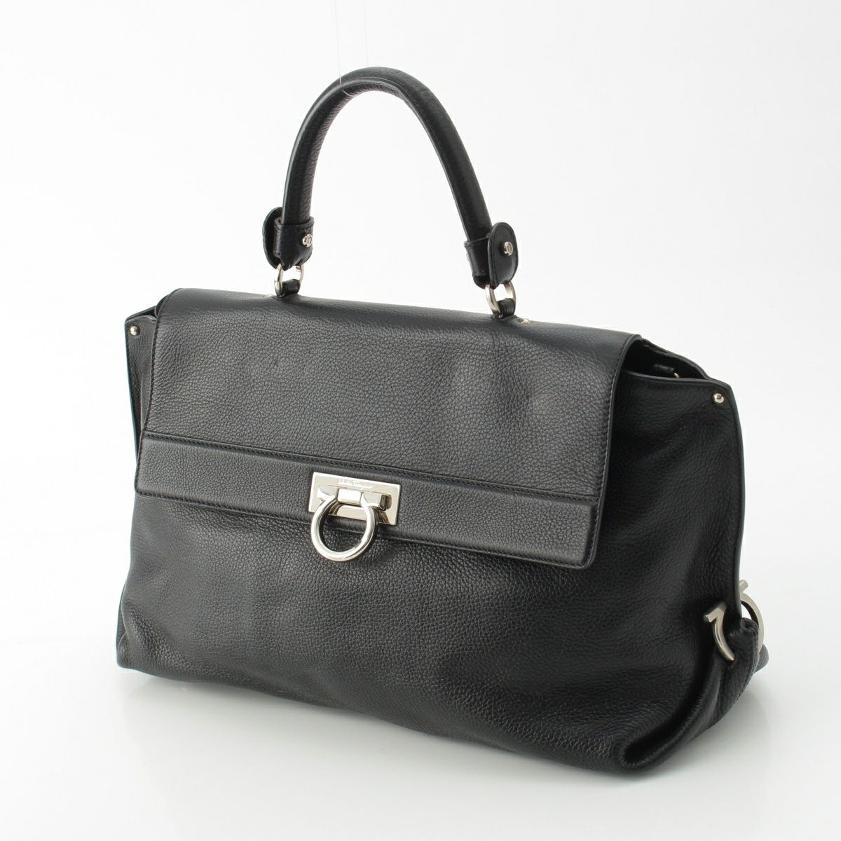 サルヴァトーレフェラガモ レザー ガンチーニ 2WAY ハンドバッグ FZ-21 ブラック