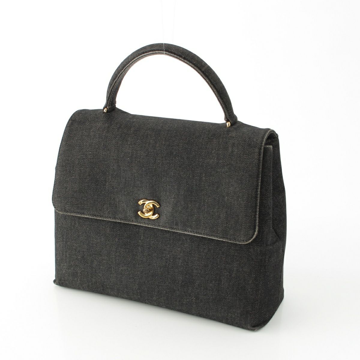 シャネル 5番台 ケリー型 ココマーク ターンロック デニム ハンドバッグ ブラック系