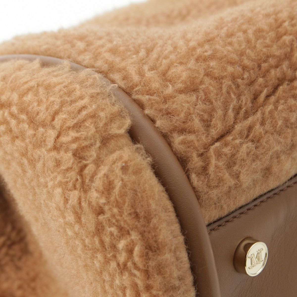マックスマーラ TMARINS キャメル シルク マリン テディベア ファー 2WAY ショルダー ハンドバッグ キャメル