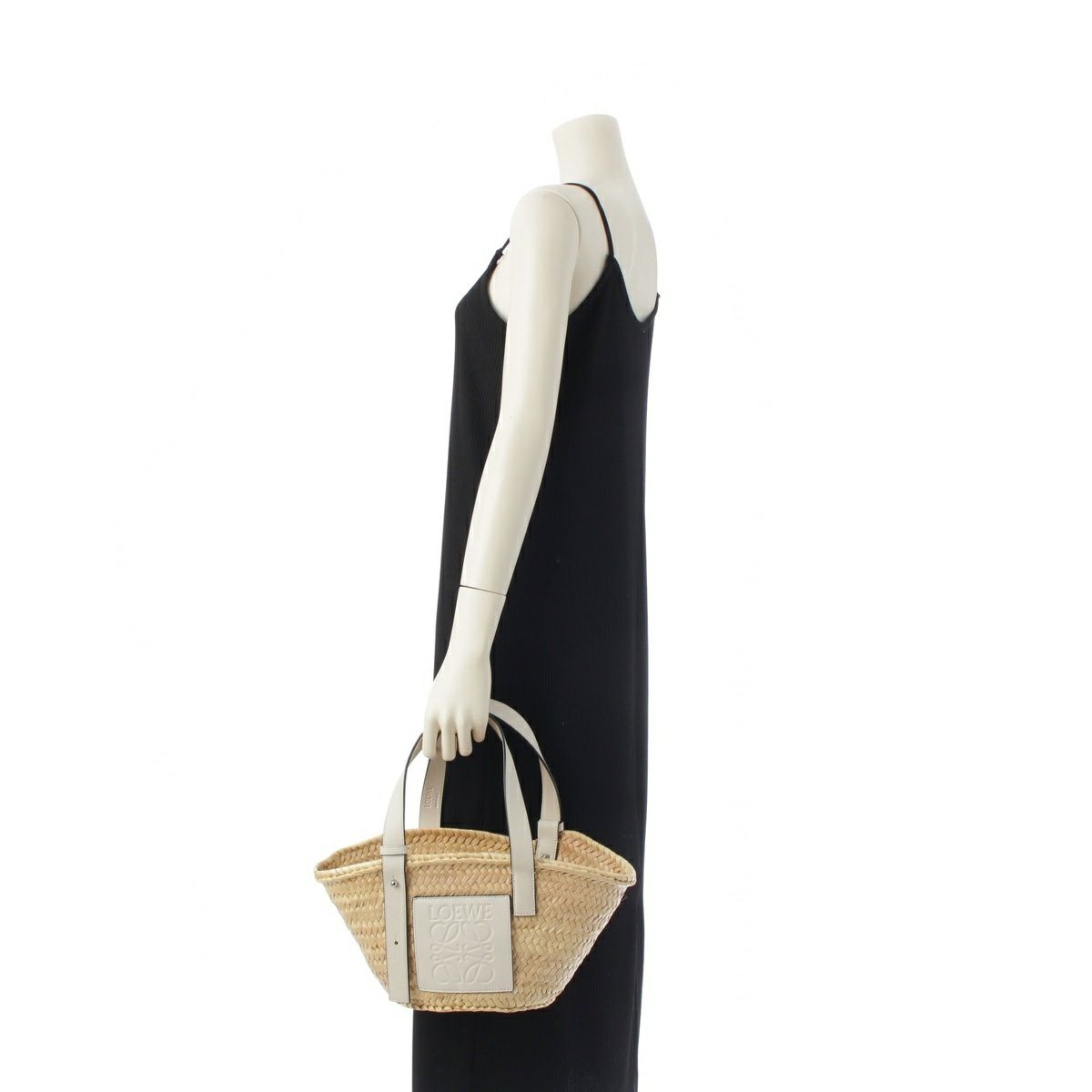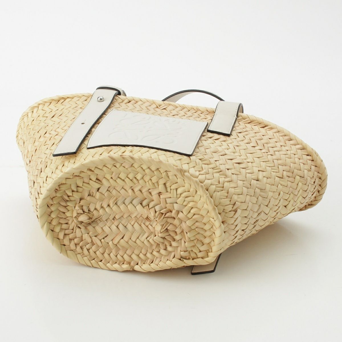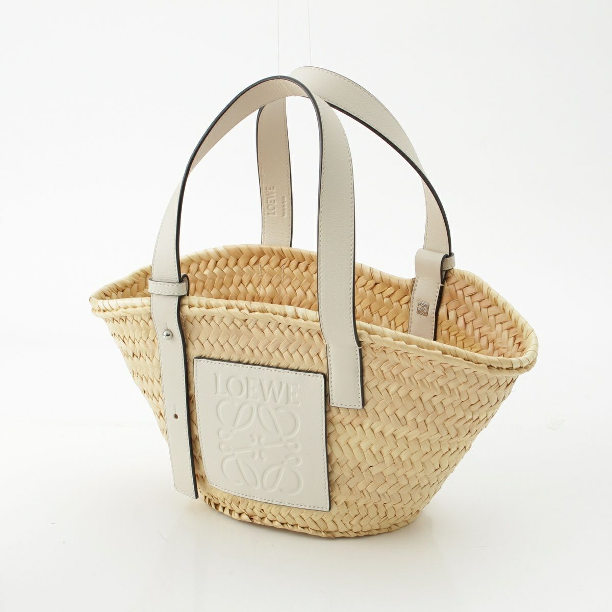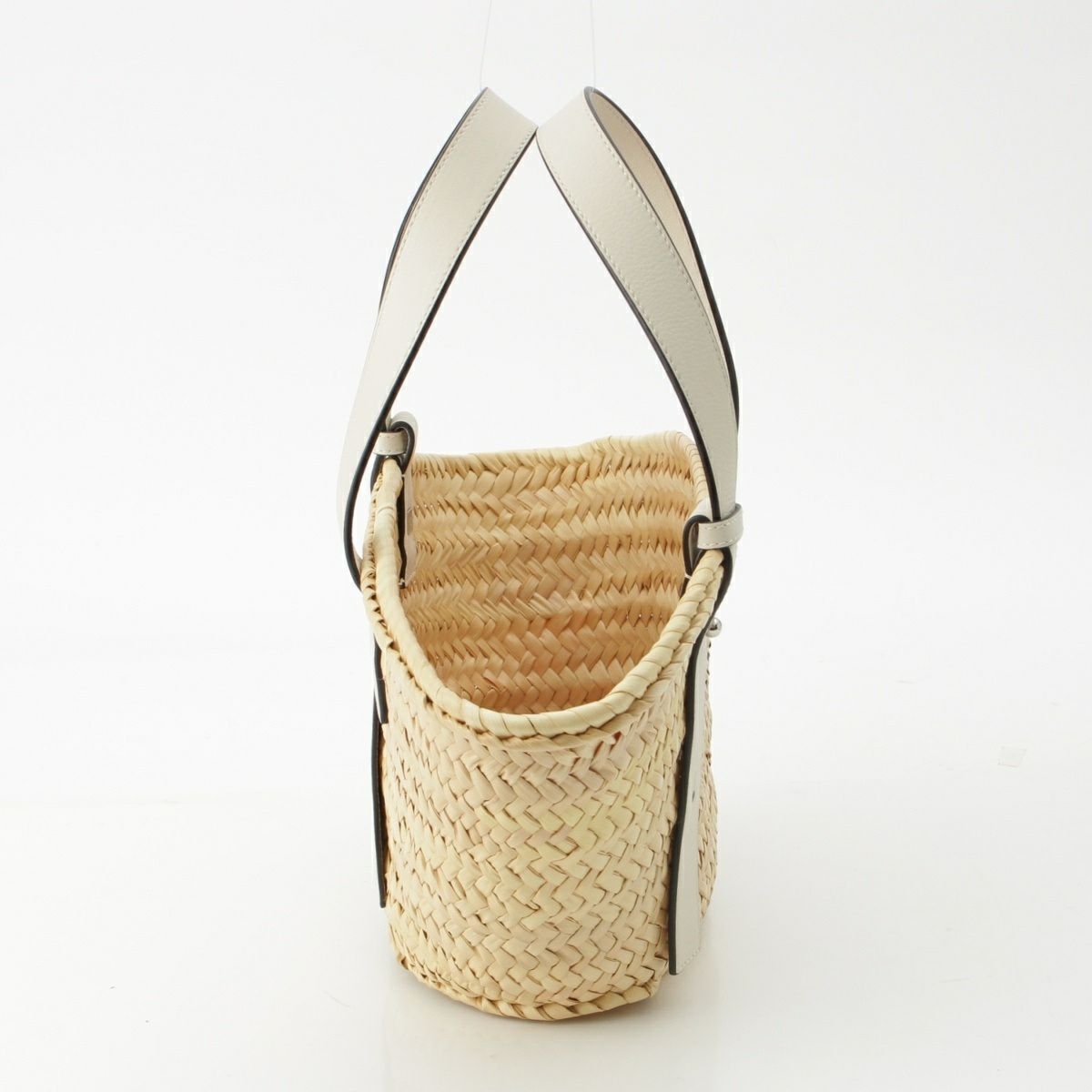 ロエベ バスケットスモール ラフィア×レザー ハンドバッグ かごバッグ ベージュ ホワイト