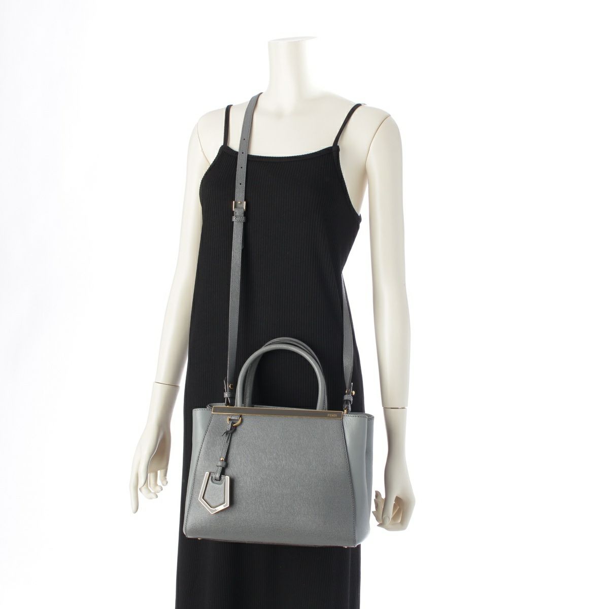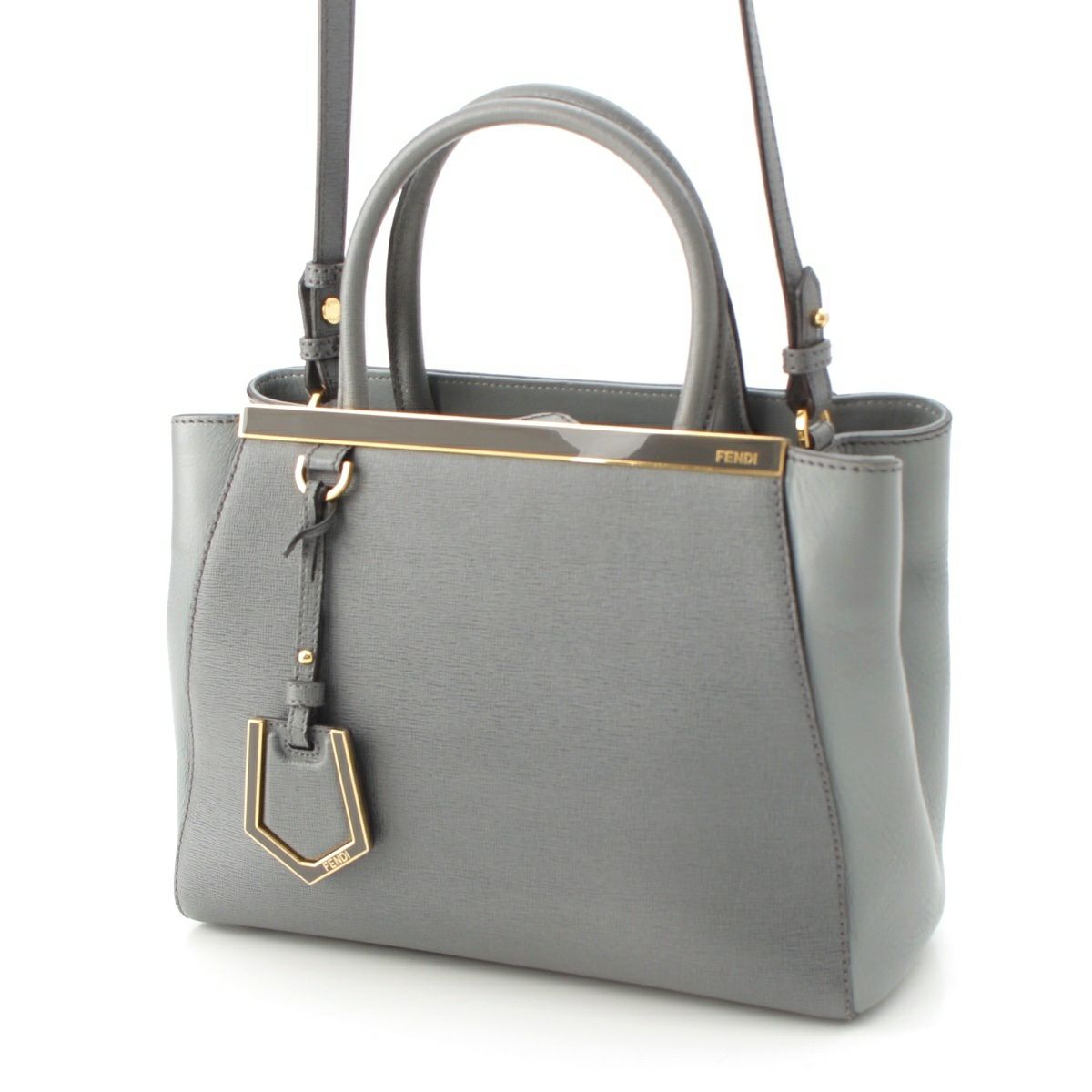 フェンディ プチトゥージュール レザー 2WAY ショルダー ハンドバッグ 8BH258 グレー