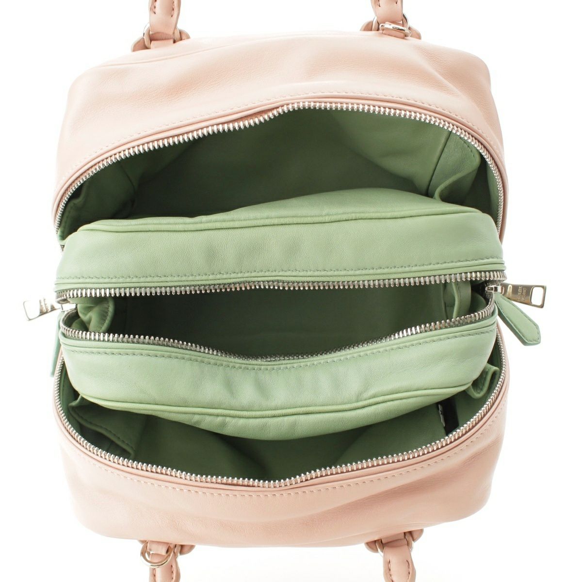 プラダ レザー ロゴ インサイドバッグ 2WAY ハンドバッグ 1BB010 ピンク×グリーン