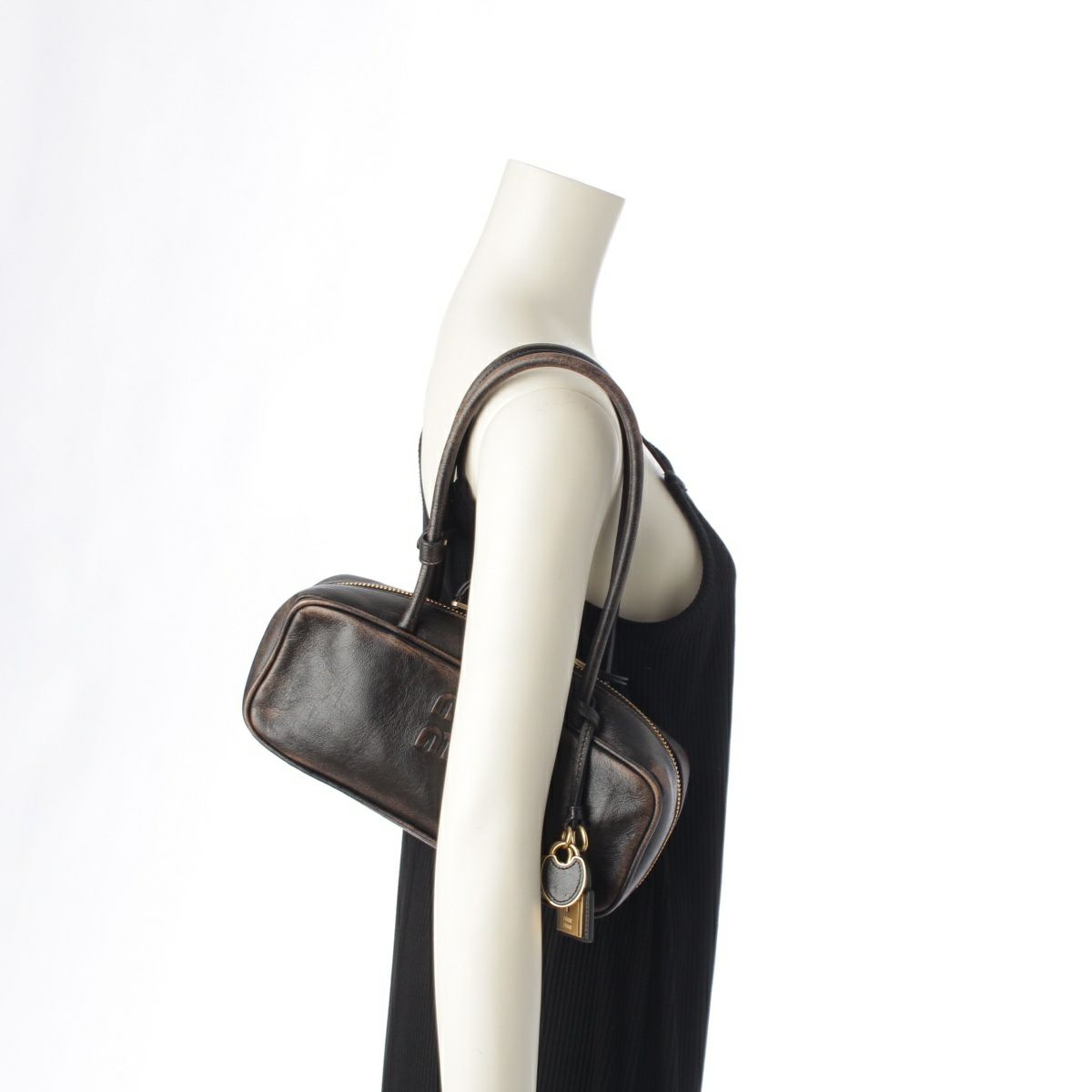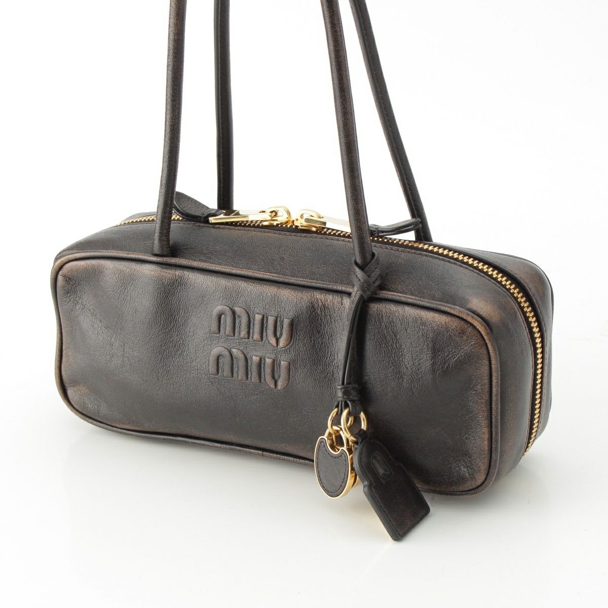 ミュウミュウ 2025 ナッパレザー ヴィンテージ加工 ボー スモール ハンドバッグ 5BB173 ダークブラウン