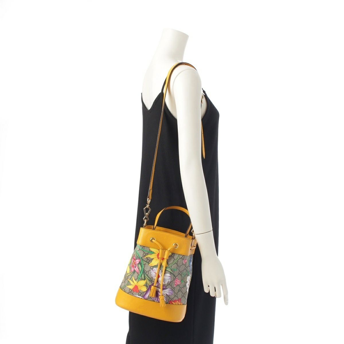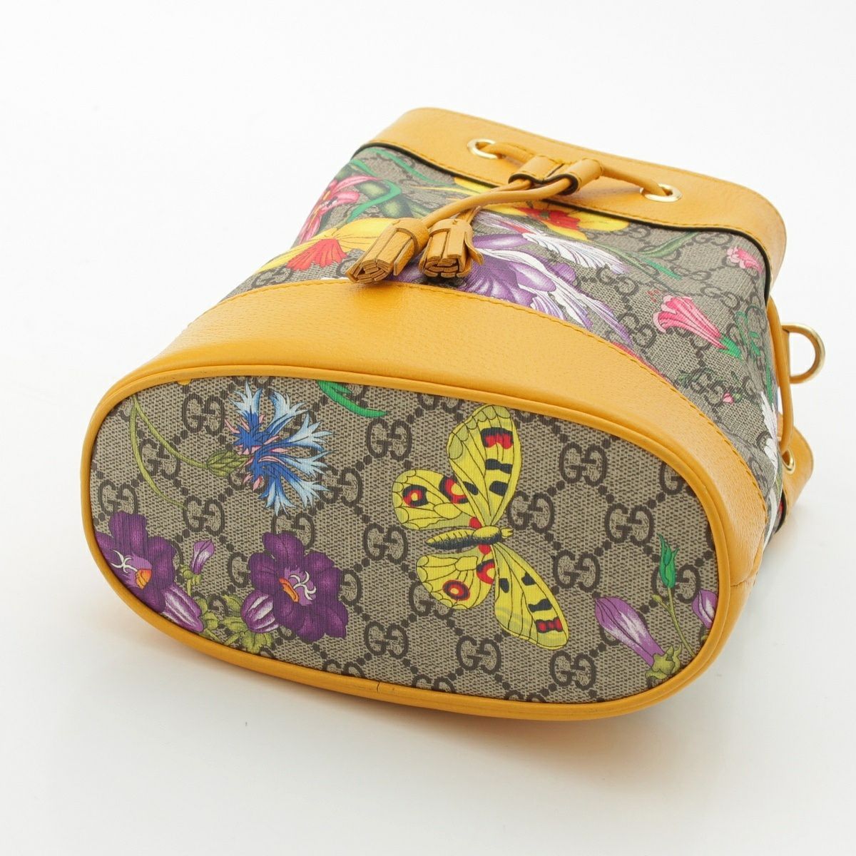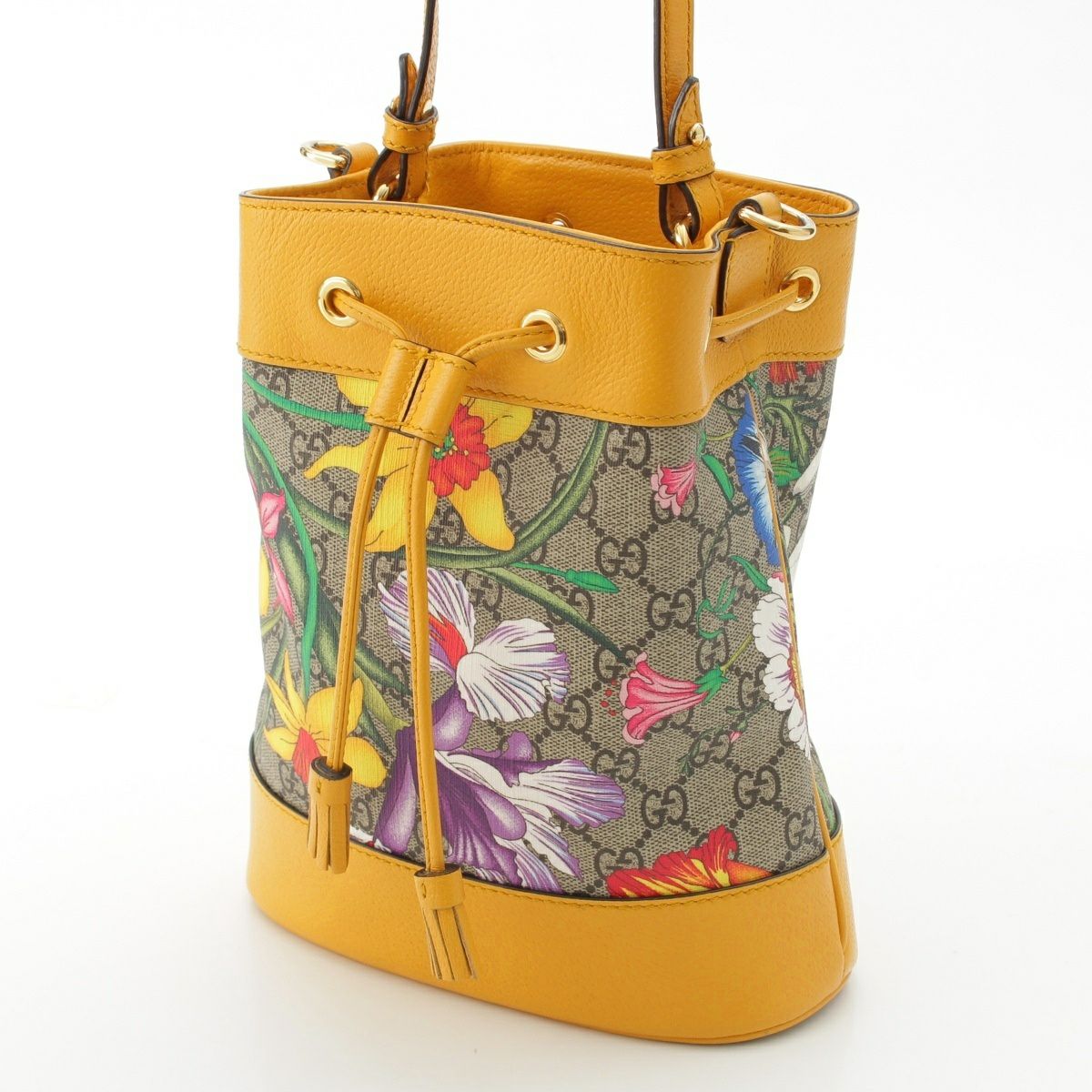 グッチ レザー GGスプリーム フローラ ショルダー 巾着 ハンドバッグ 550621 イエロー