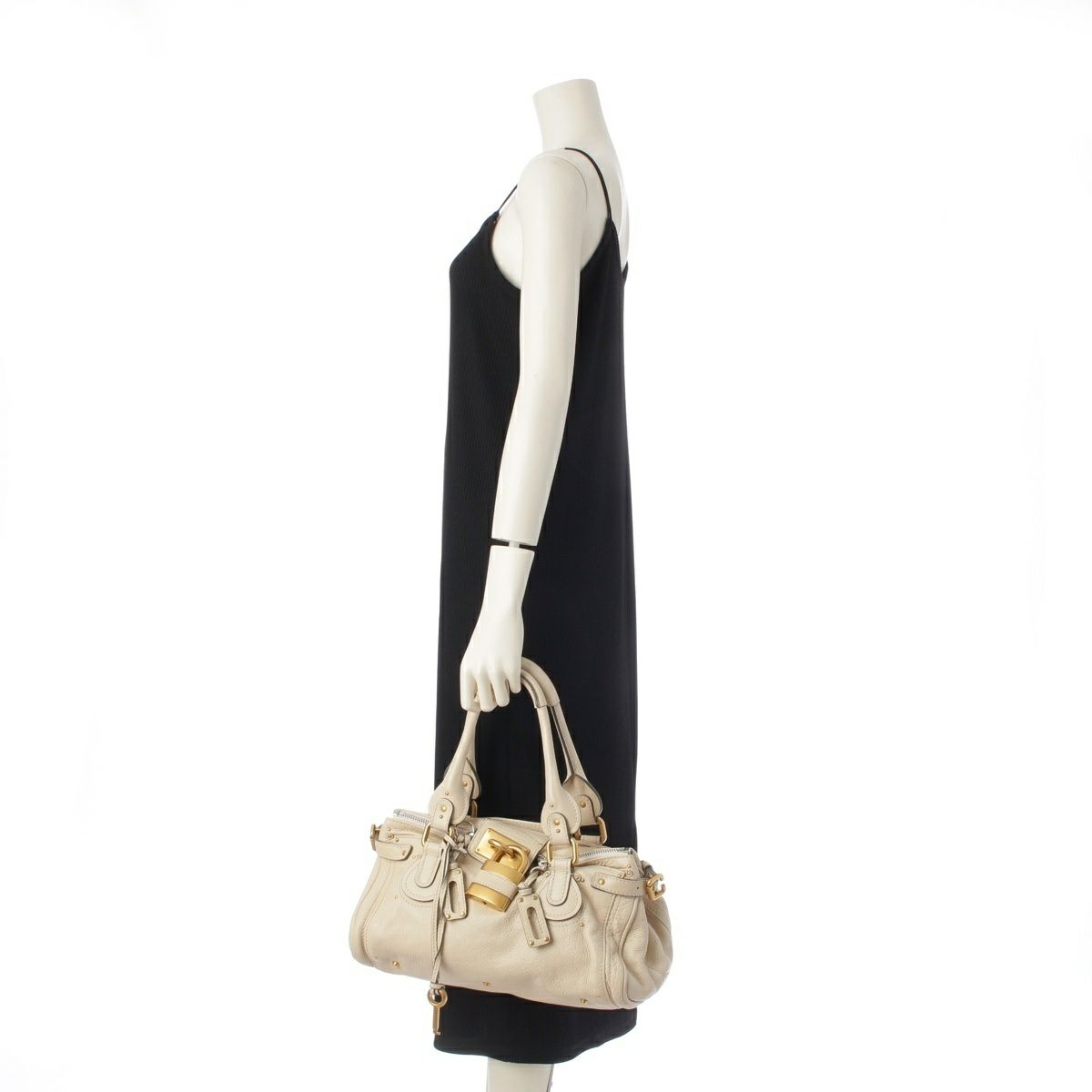 クロエ パディントン レザー ミディアムサイズ マットゴールド金具 ハンドバッグ アイボリー