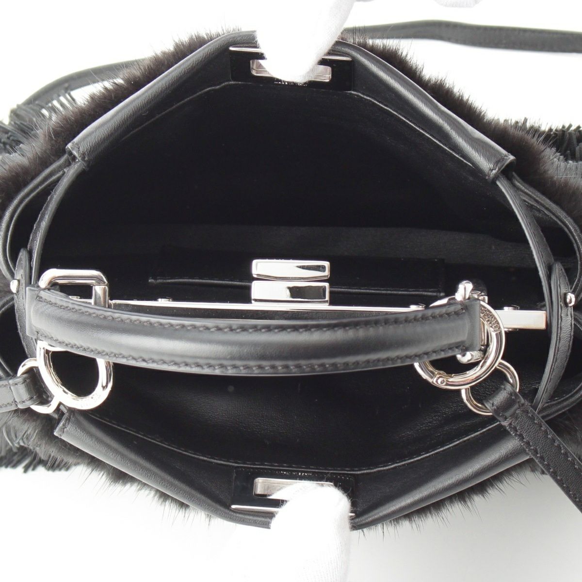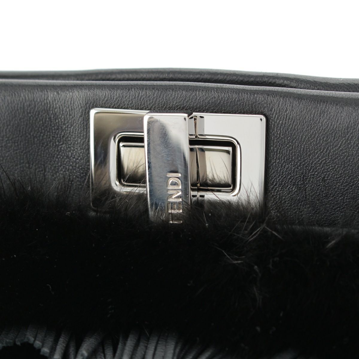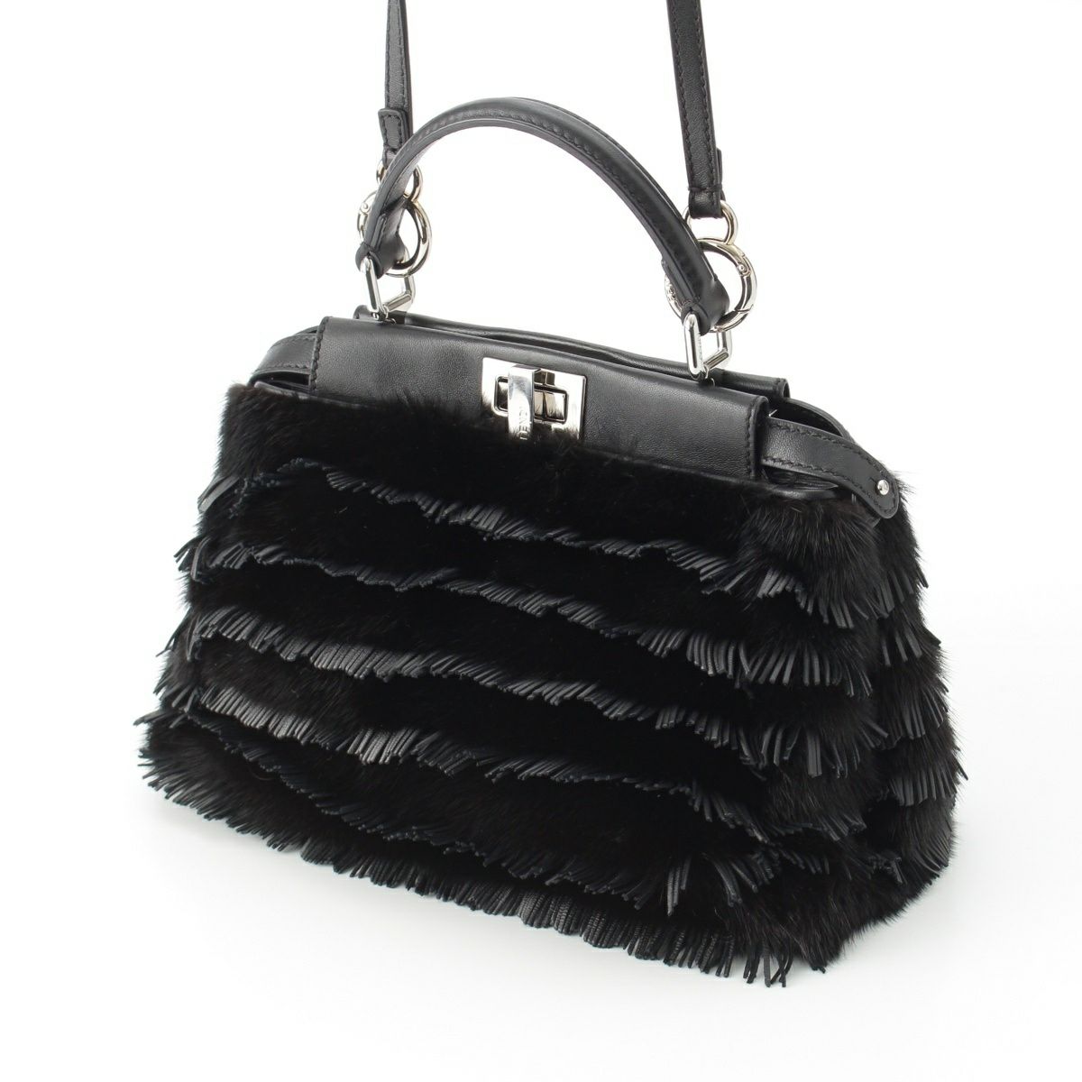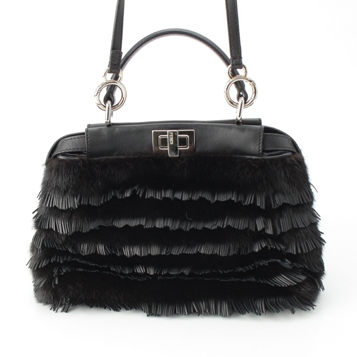 フェンディ ピーカブー ミニ ミンク ファー レザー フリンジ ストラップユー 別売りストラップ付き ハンドバッグ 2way ショルダー 8BN244 ブラック