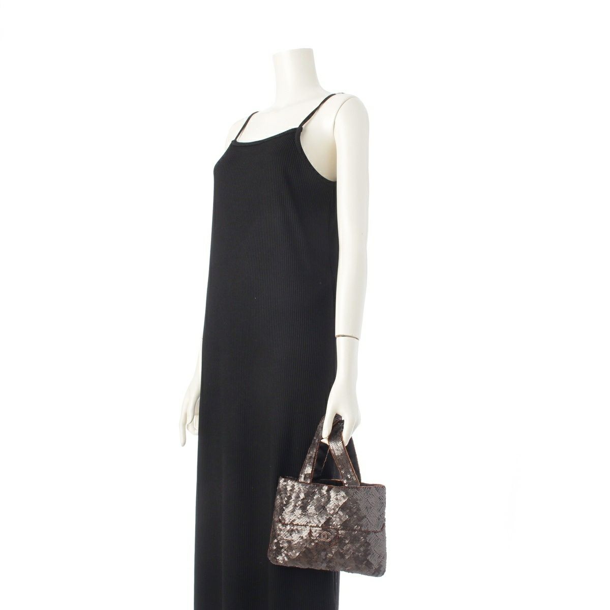 シャネル 98A スパンコール 5番台 ココマーク ビジュー ミニ ハンドバッグ ブロンズ ブラウン