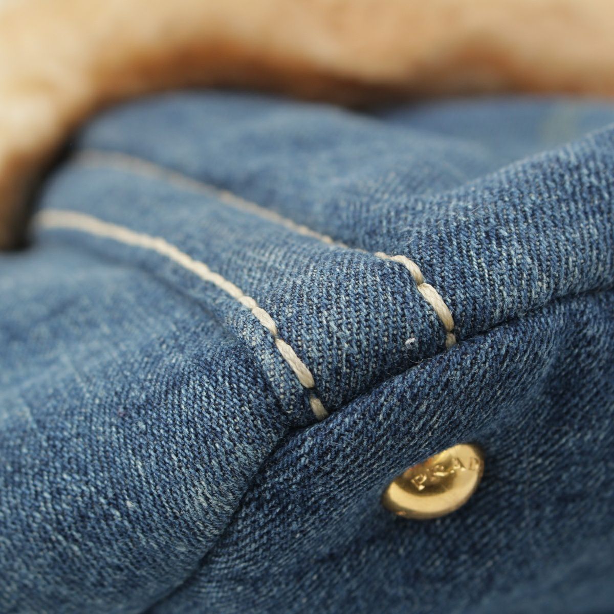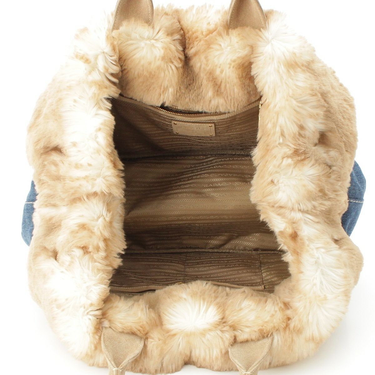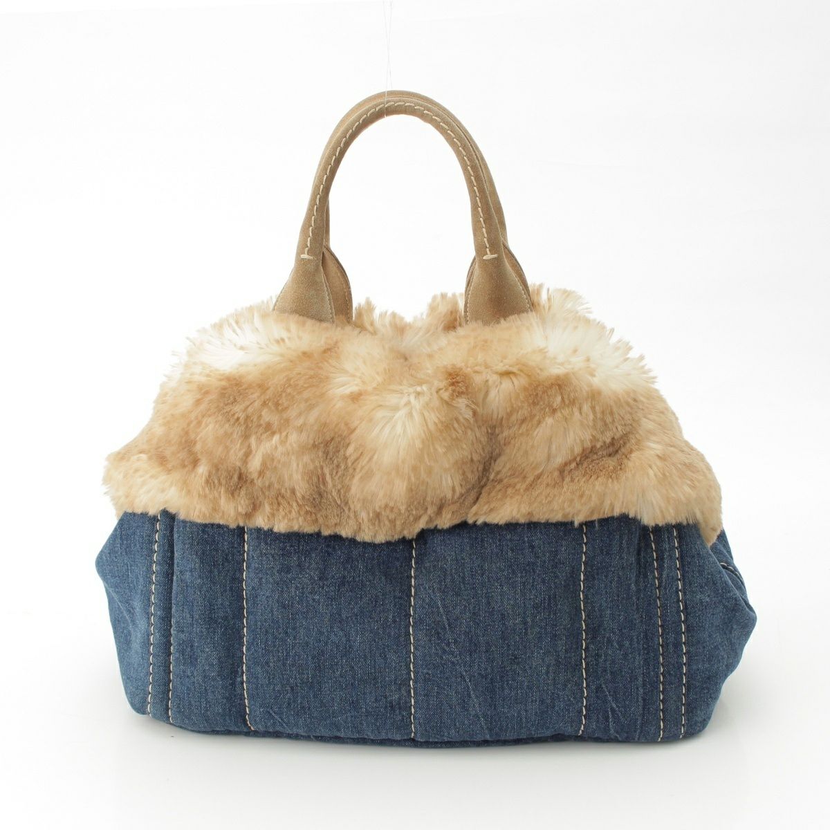 プラダ カナパ ファー デニム ハンドバッグ BN2182 ブルー ベージュ