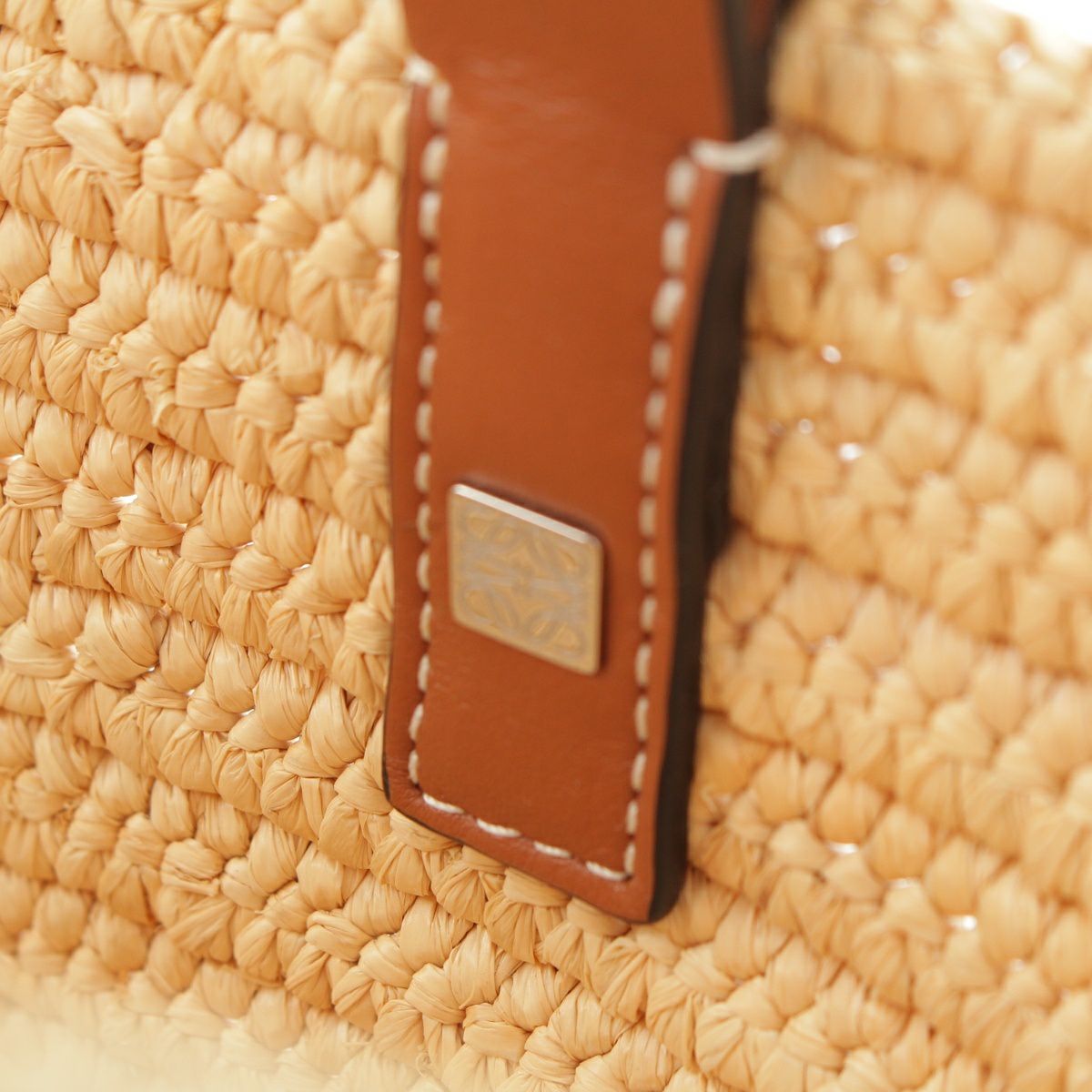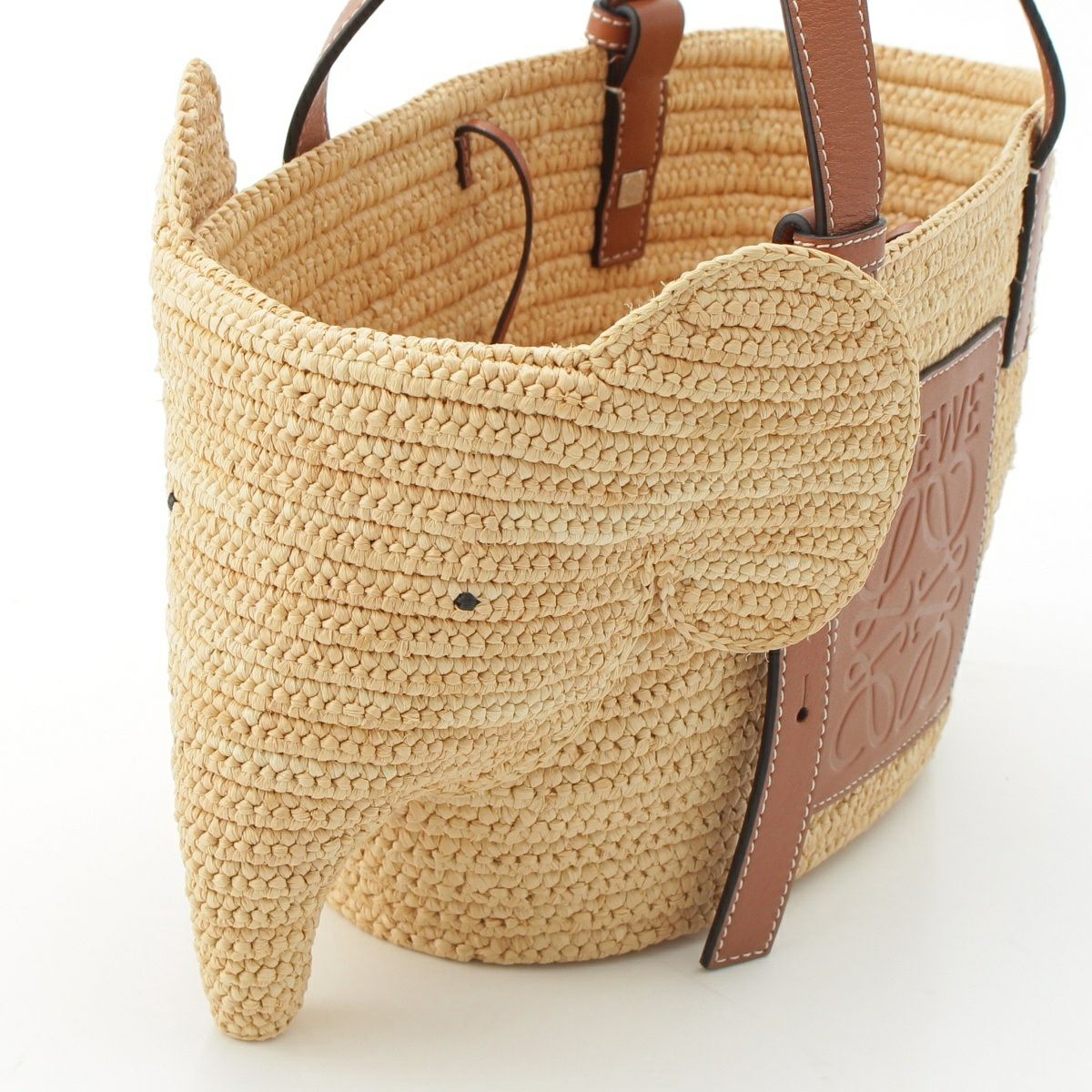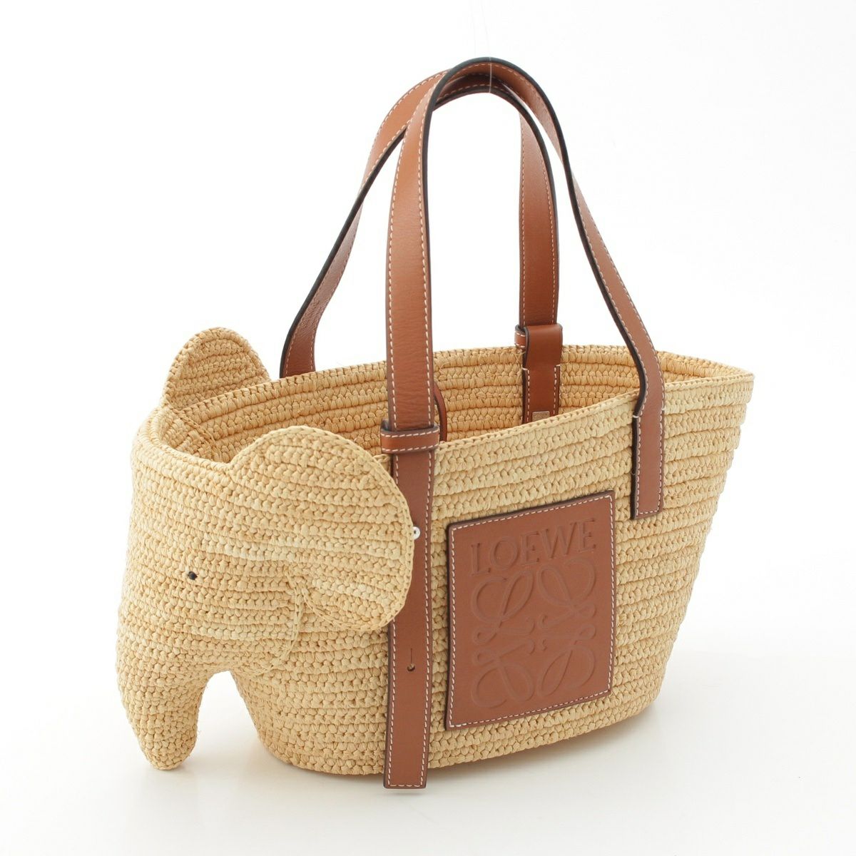 ロエベ エレファント ラフィア×レザー アナグラム かごバッグ ハンドバッグ ベージュ
