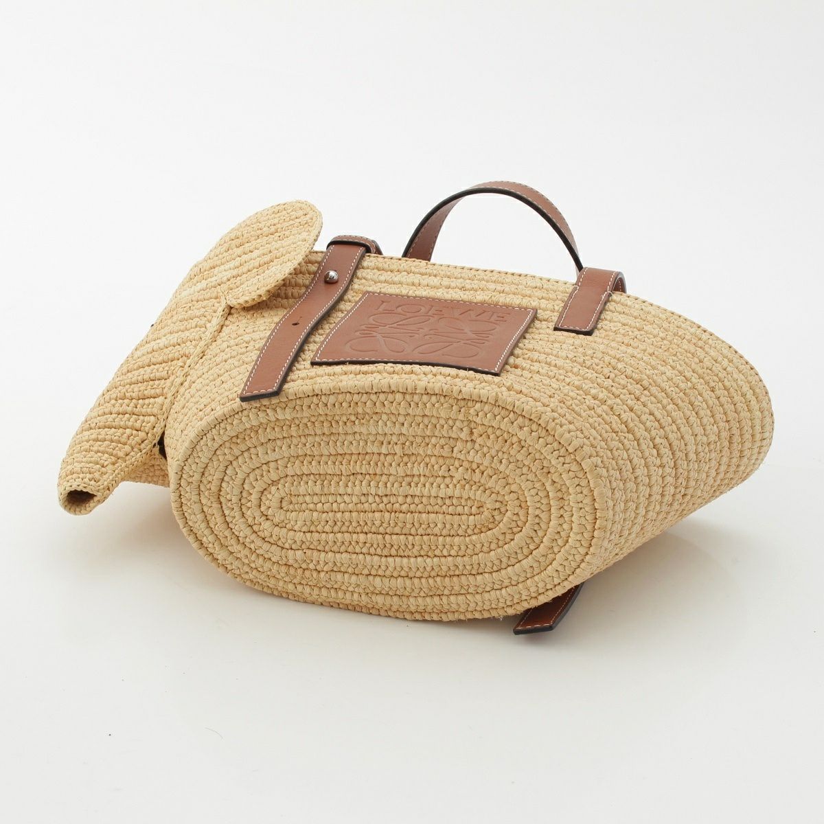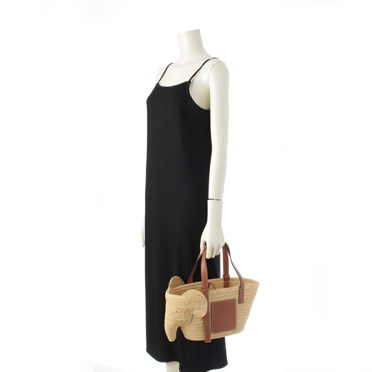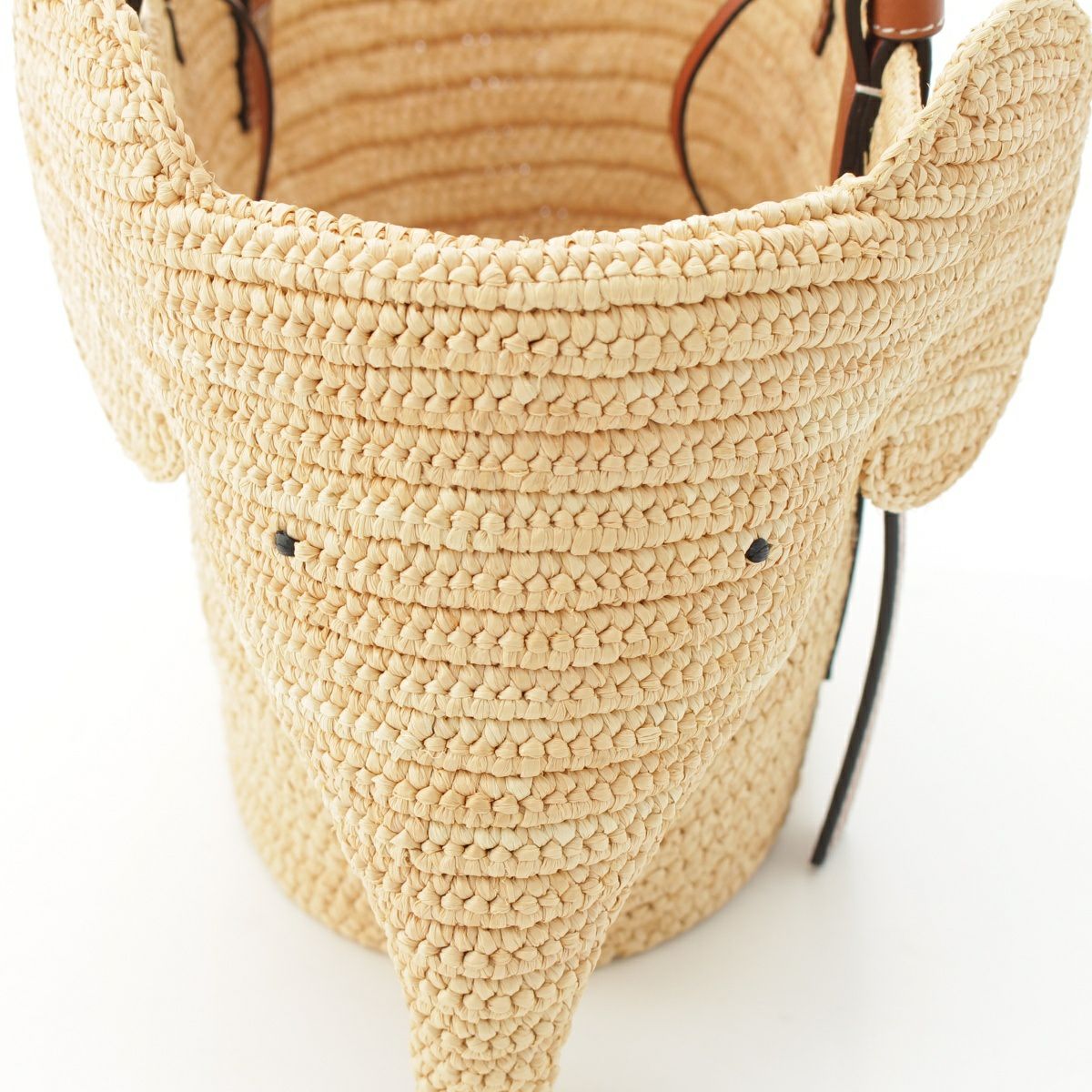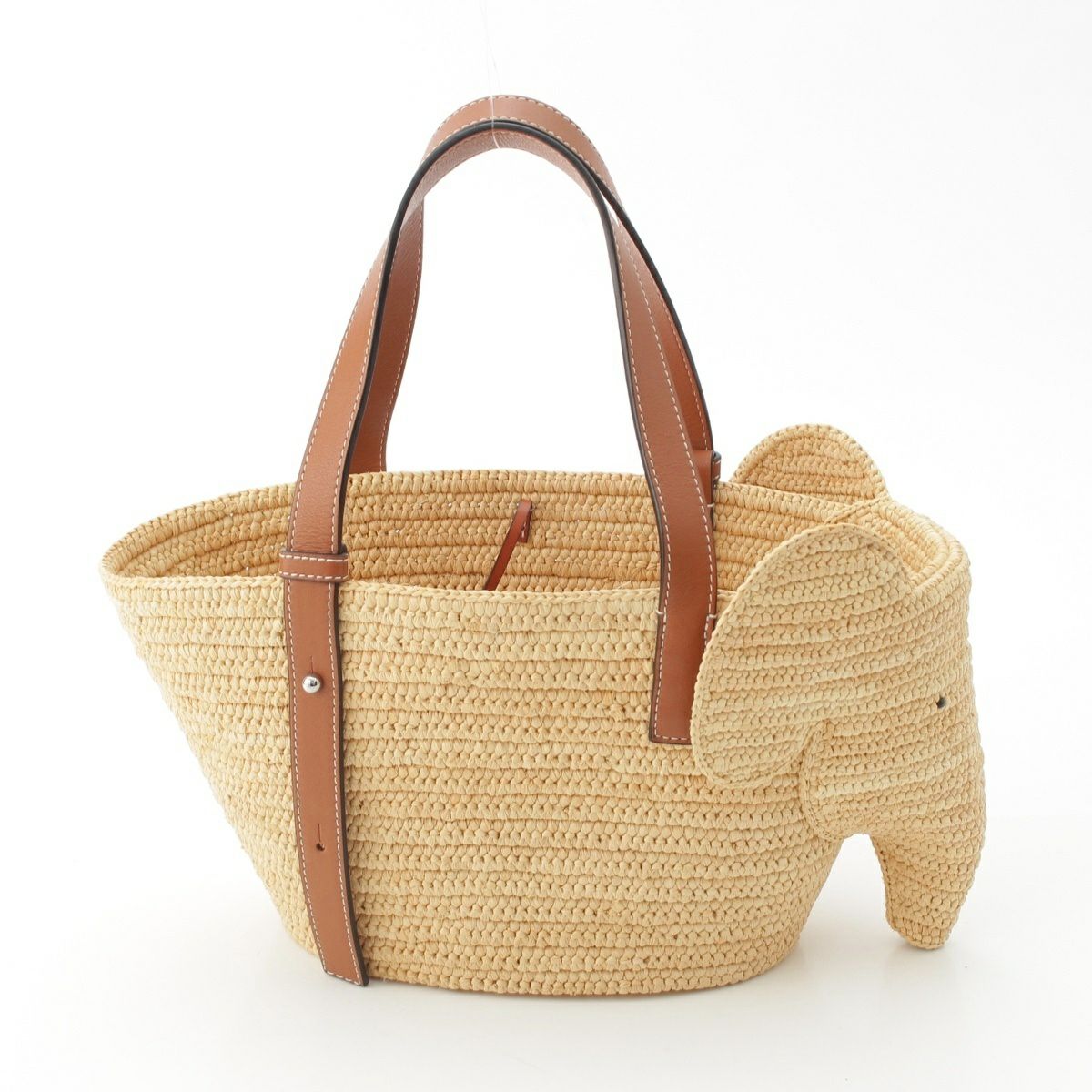 ロエベ エレファント ラフィア×レザー アナグラム かごバッグ ハンドバッグ ベージュ