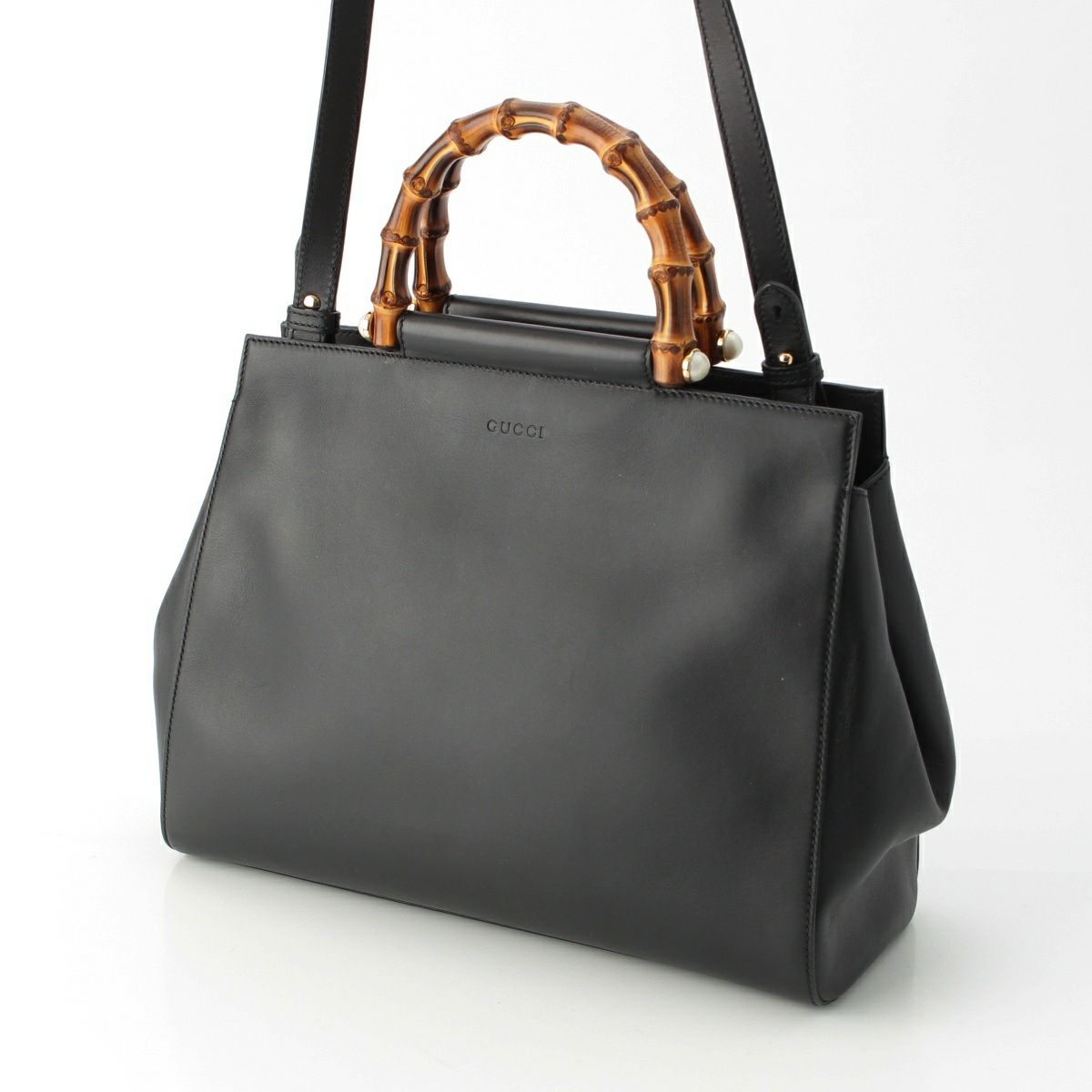 グッチ バンブー ニムフェア レザー ゴールド金具 パール ハンドバッグ 2WAY ショルダー 453766 ブラック