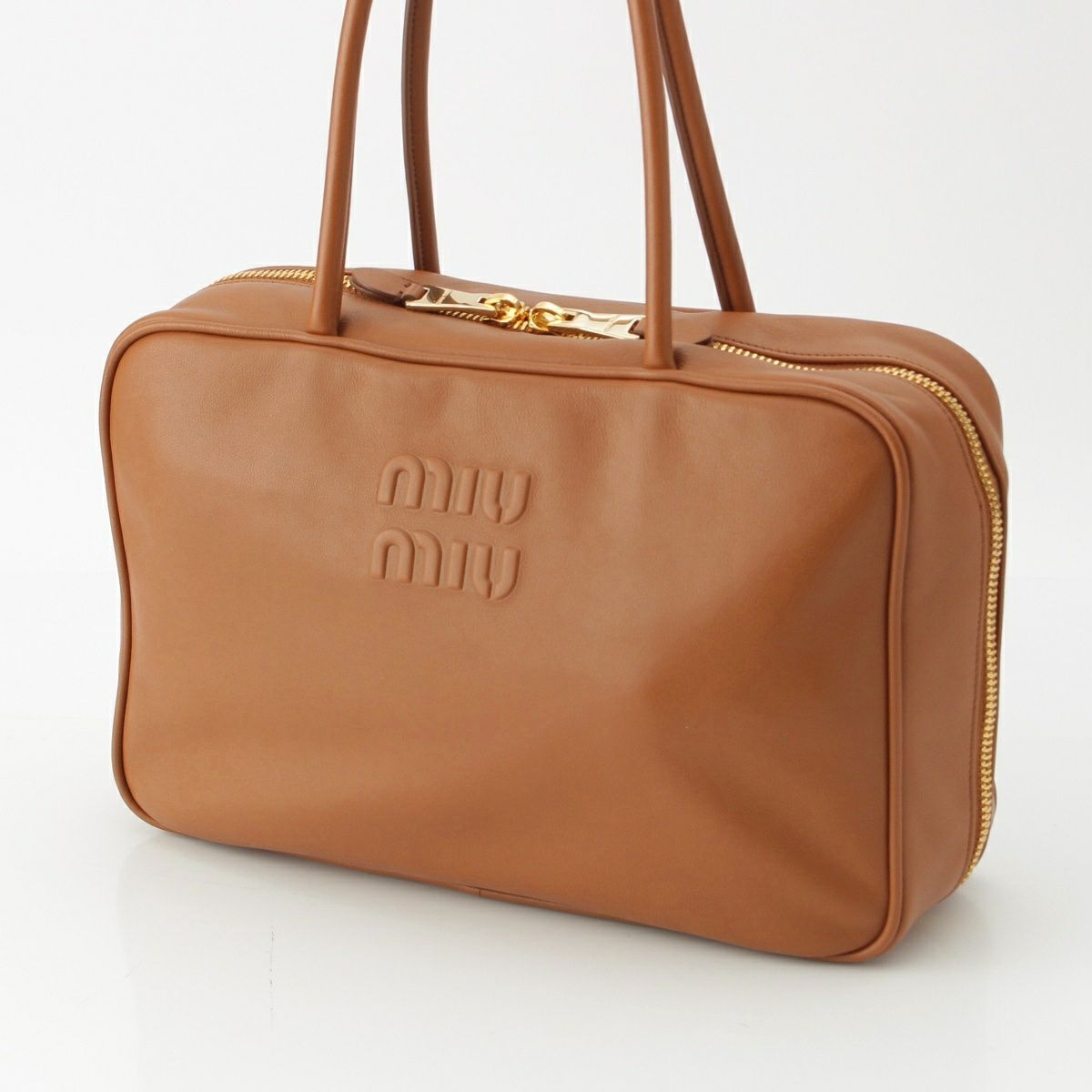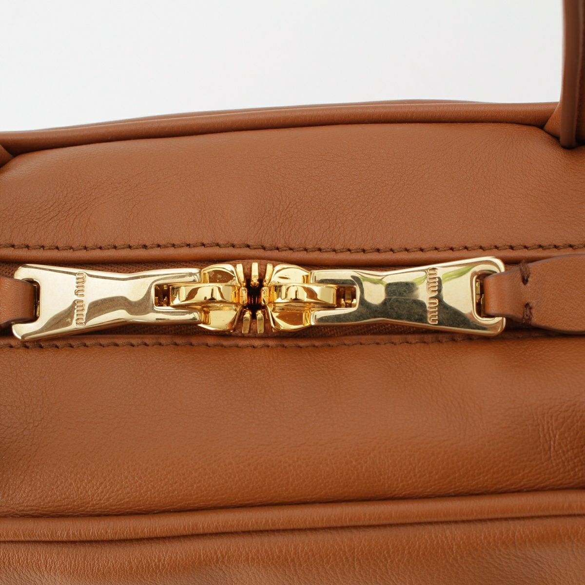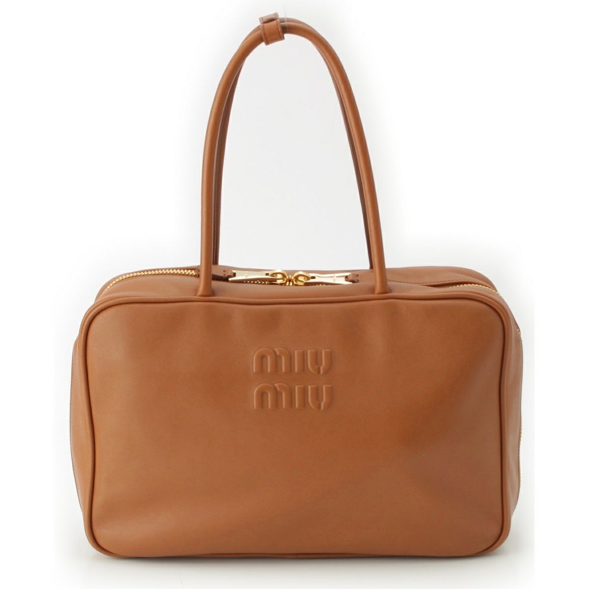 ミュウミュウ レザー ボー ラージサイズ ロゴ ハンドバッグ 5BB117 コニャック